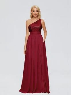 Madeline Alluring Chiffon/Lace Split Long Bridesmaid Dresses