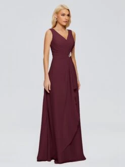 Lyla Beautiful Chiffon A-line V-neck Long Bridesmaid Dresses