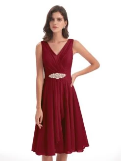 Sophie Affordable Chiffon V-neck Knee-Length Bridesmaid Dresses