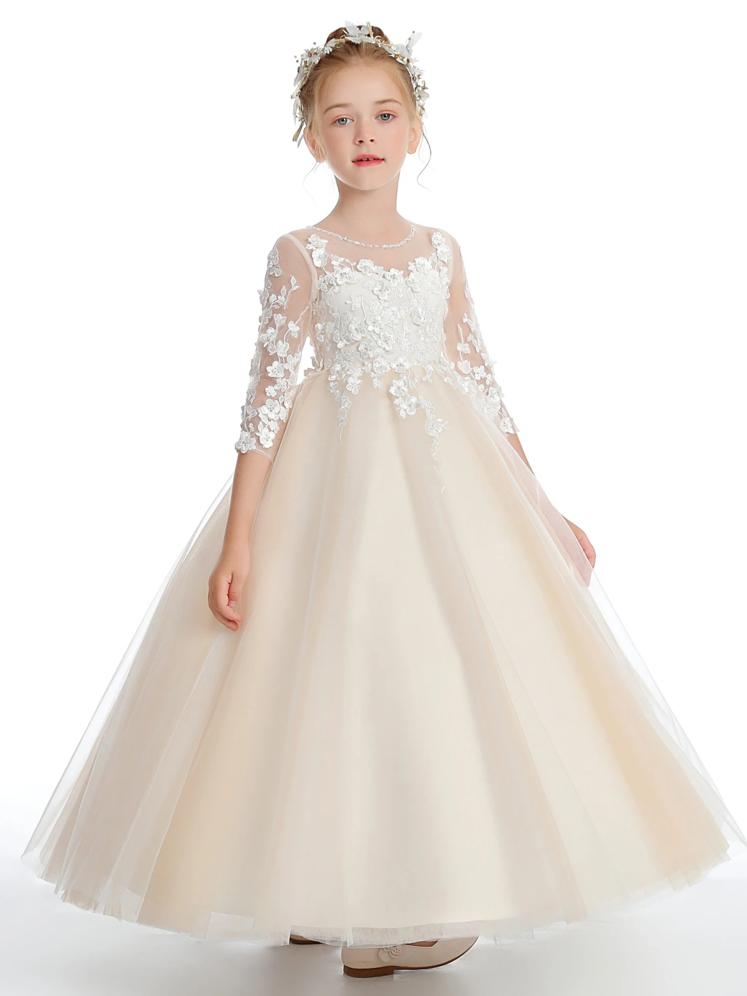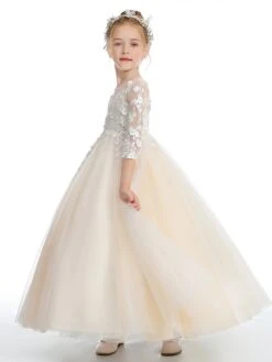 A-line Half Sleeves Lace Flower Girl Dress