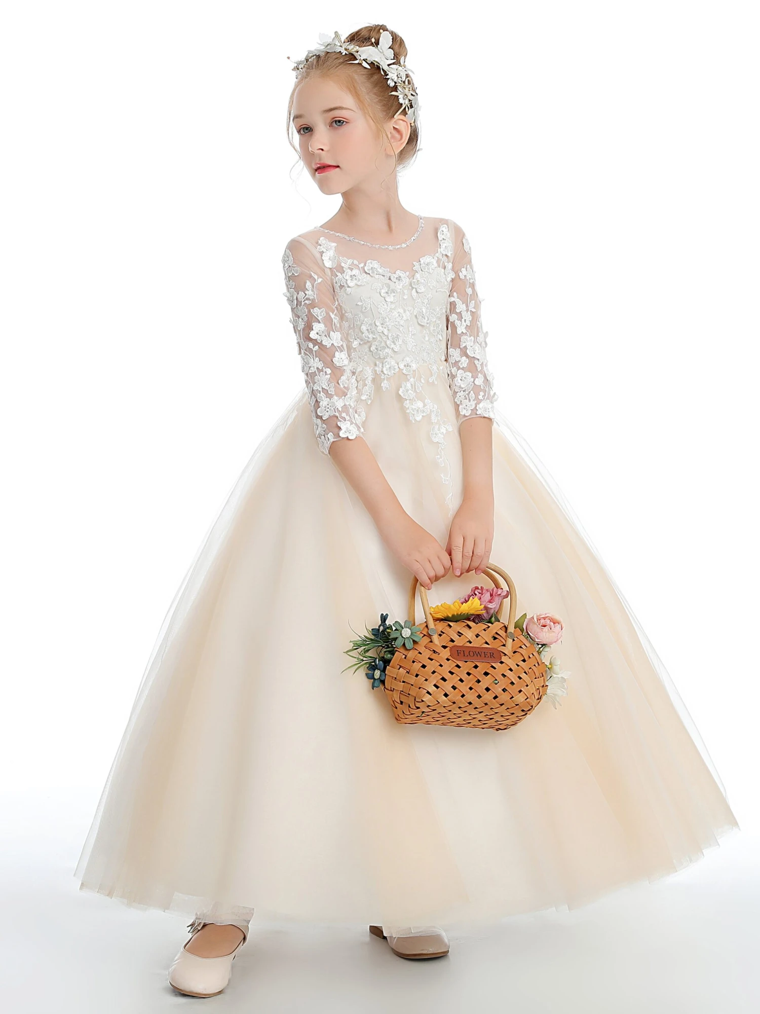 - Embellishment: Lace Appliques, Bow-Knot