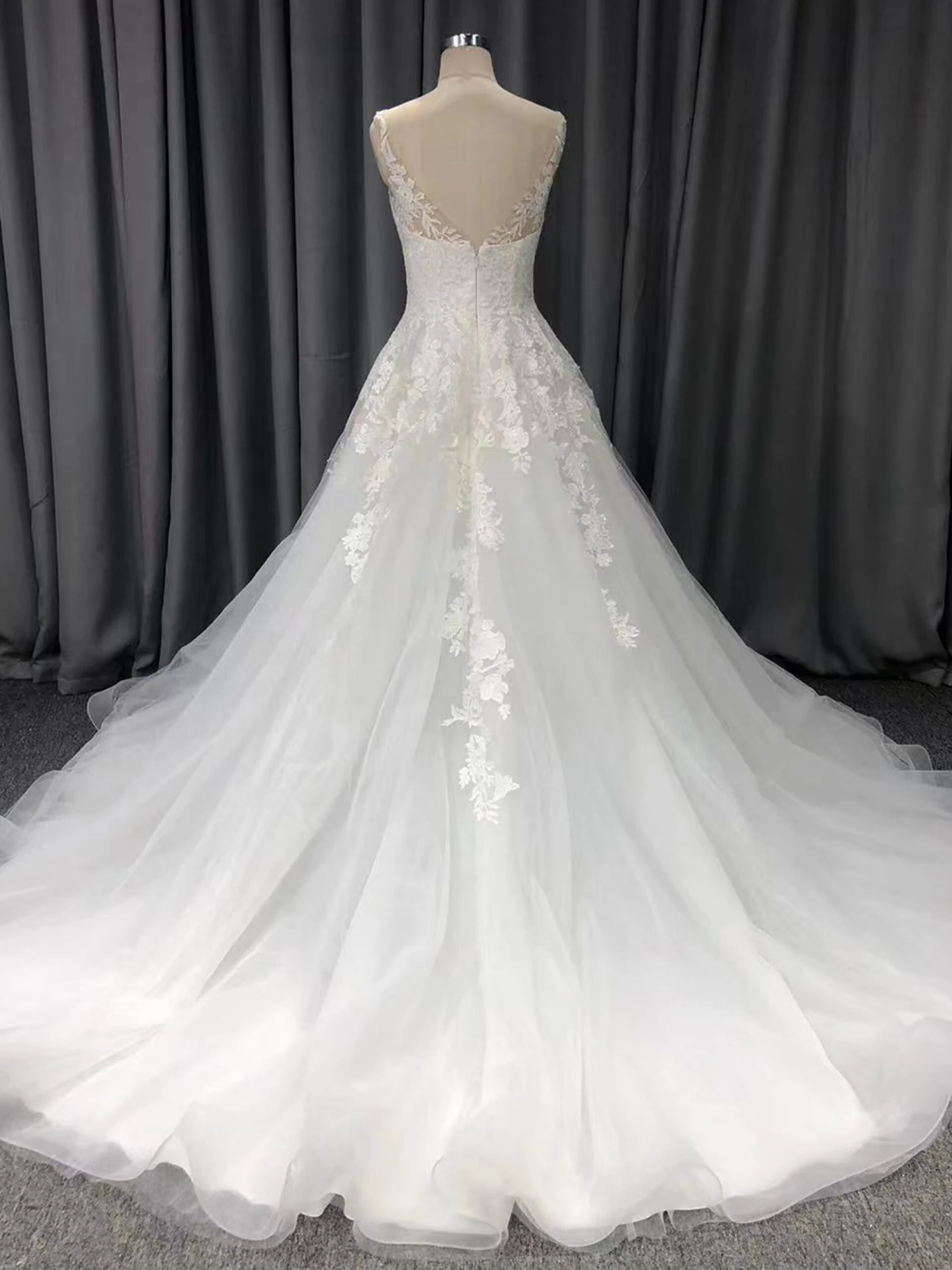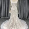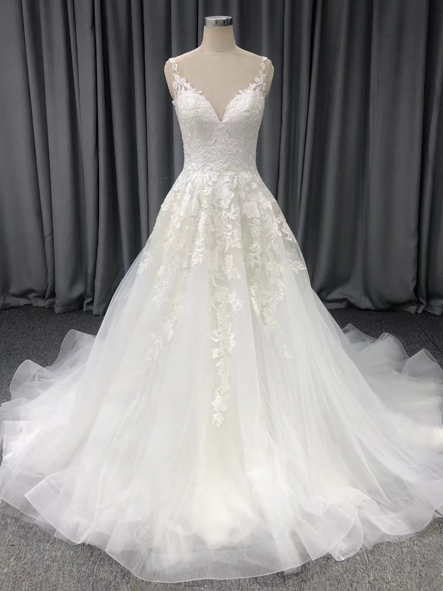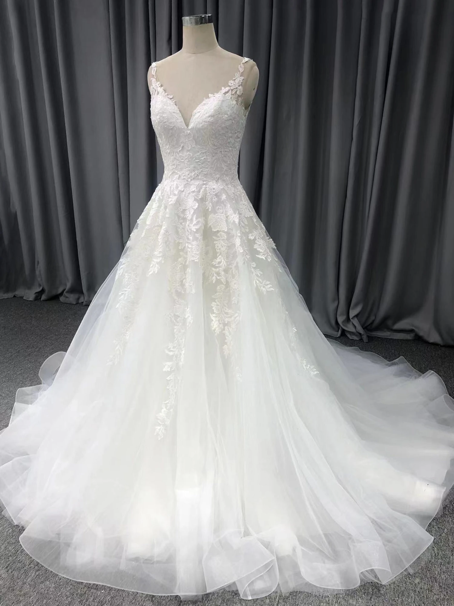 Trumpet/Mermaid V-neck Sweep Train Lace Wedding Dresses With Sequin