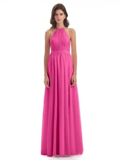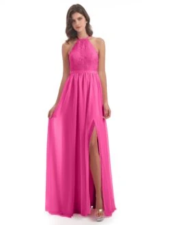 Arabella Fashion Halter Split Long Bridesmaid Dresses