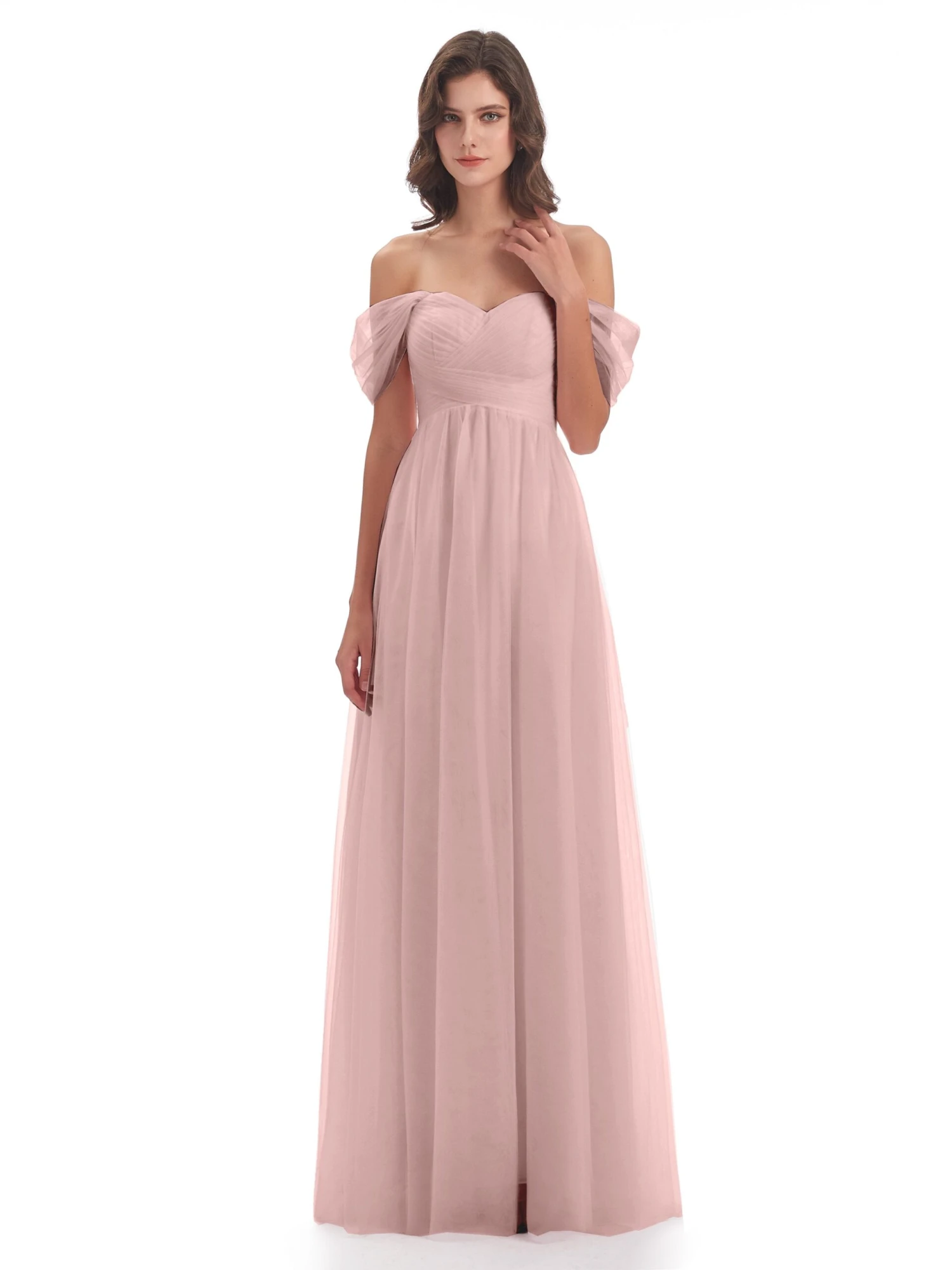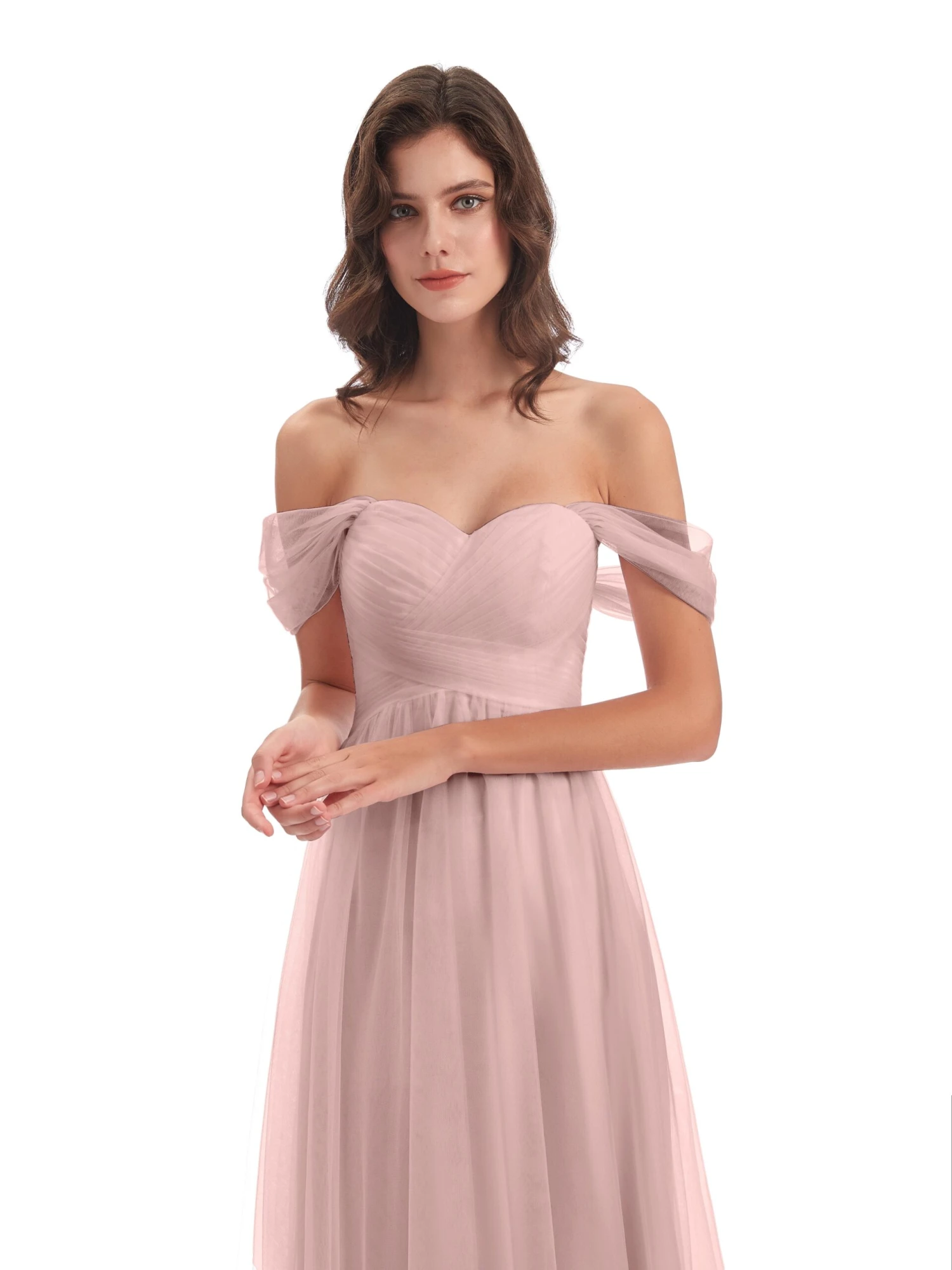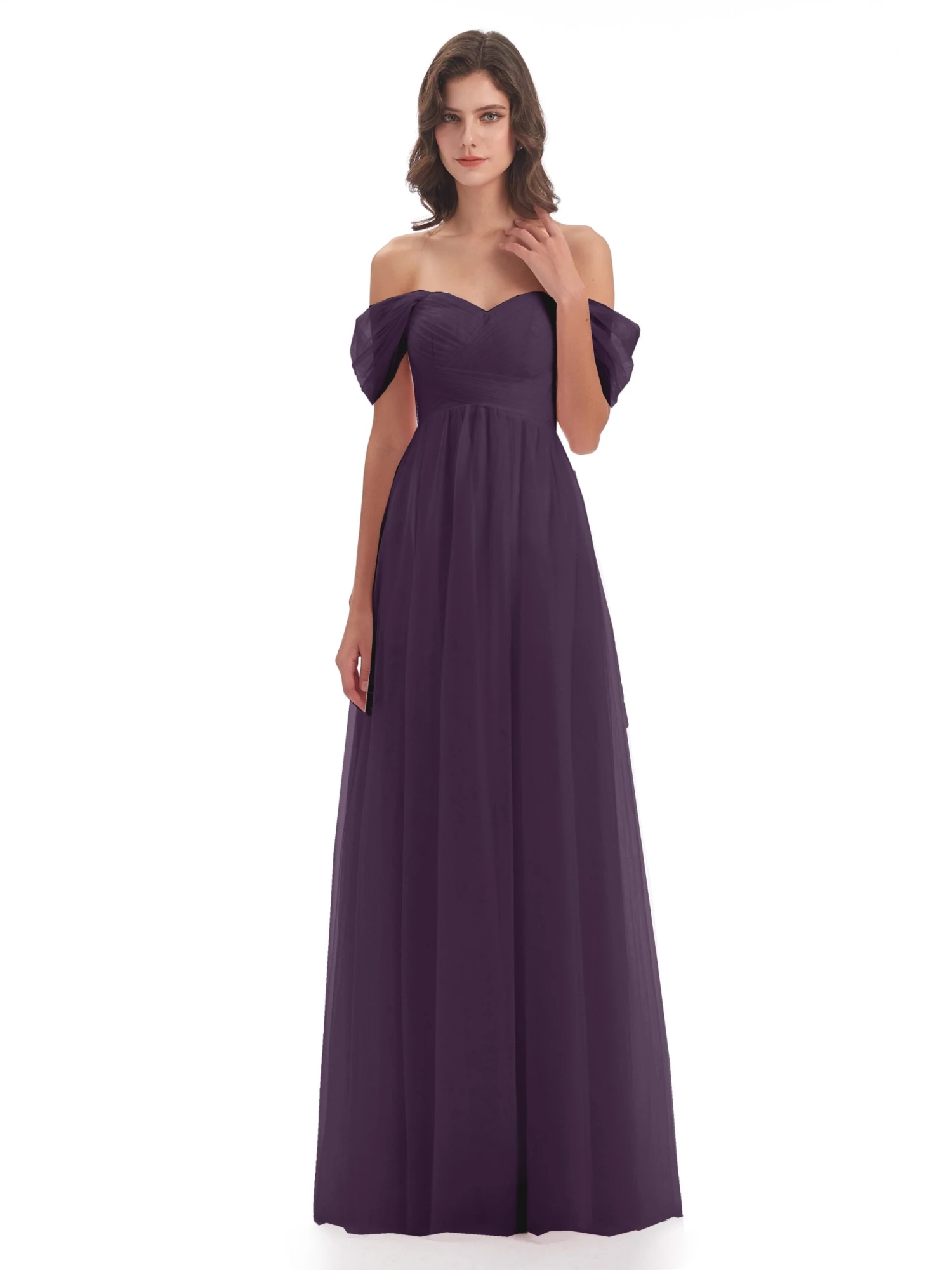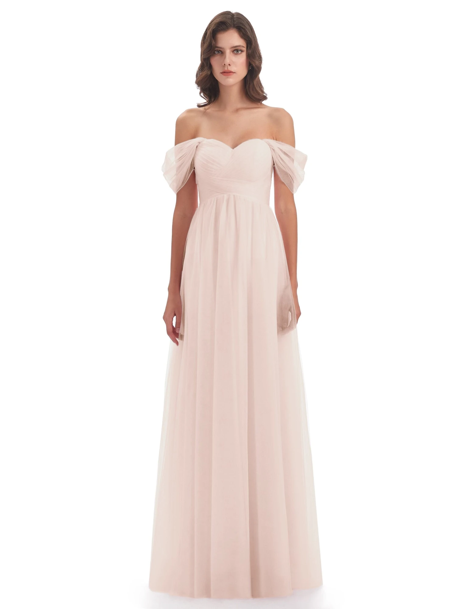 Aria Elegant Tulle Off The Shoulder Long Bridesmaid Dresses