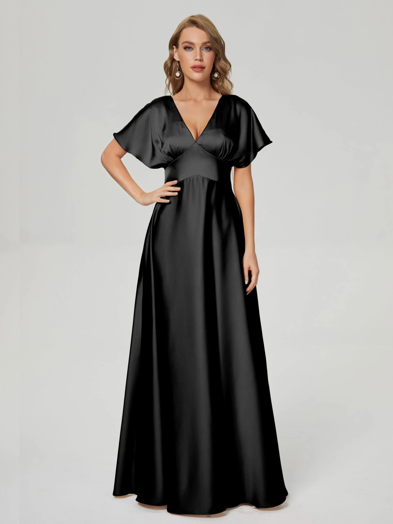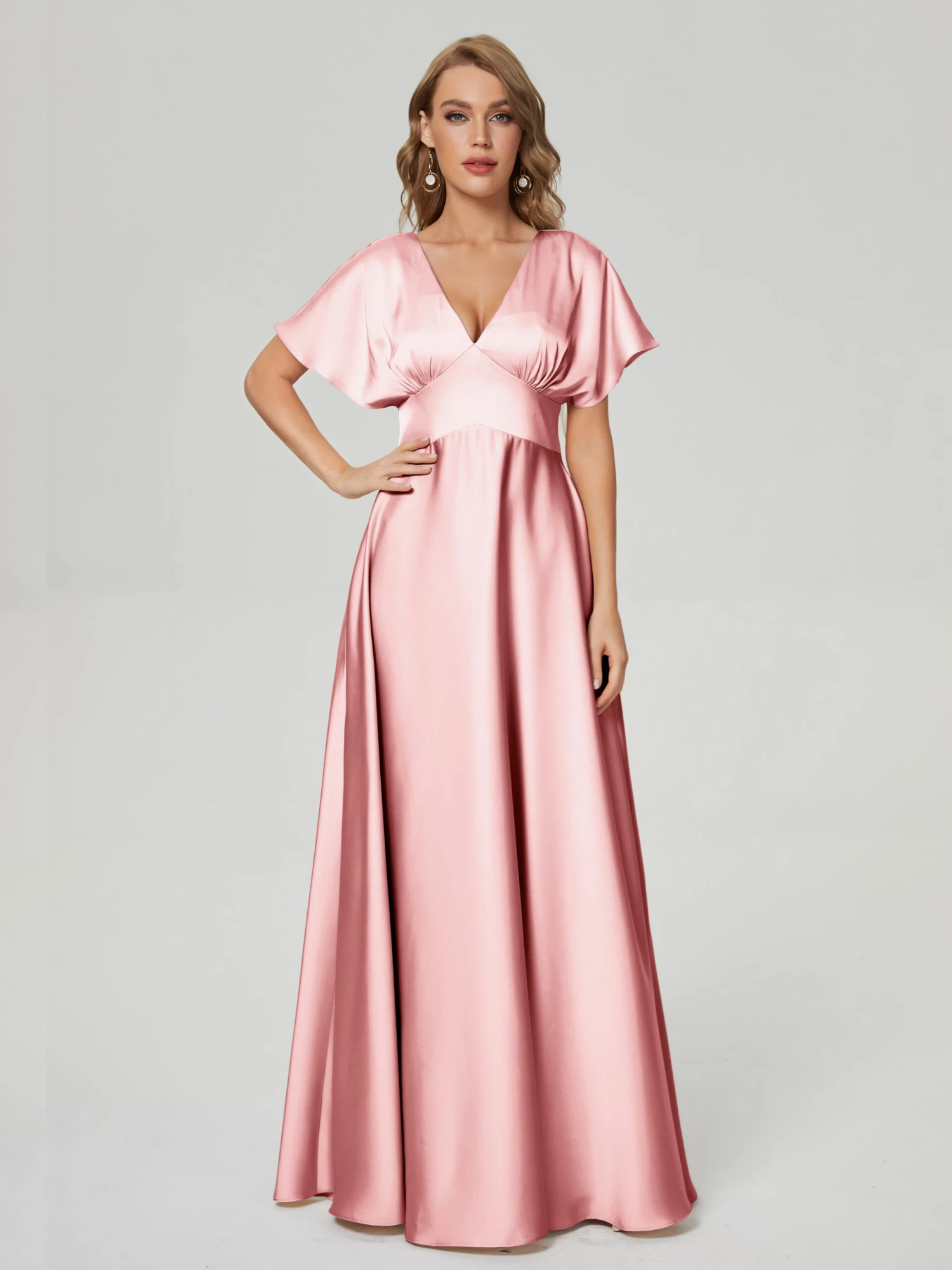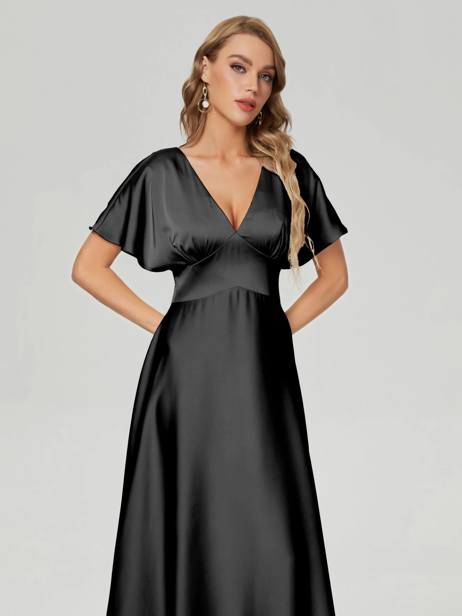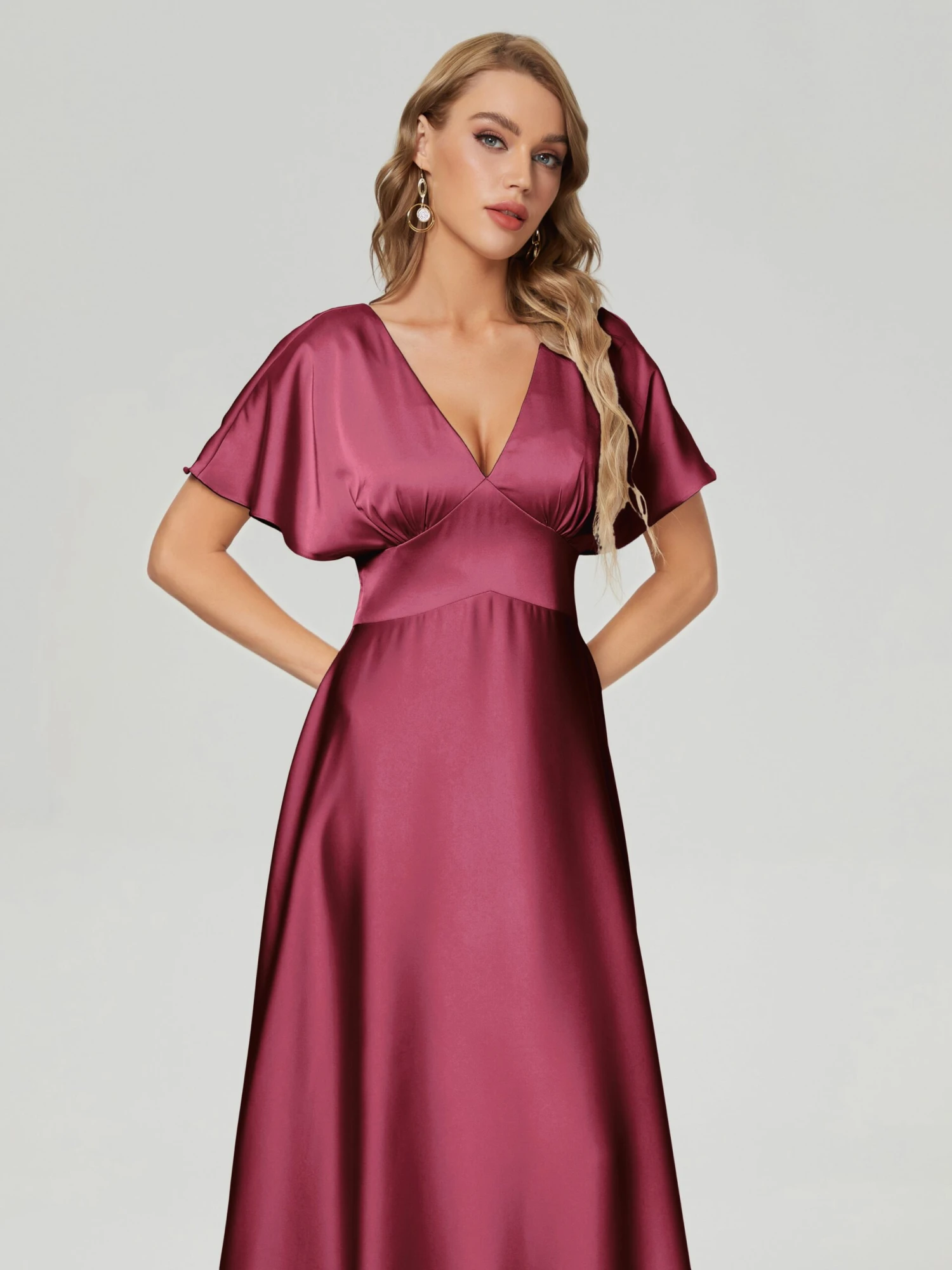 Ariah Modest Cap Sleeves Soft Satin Dresses