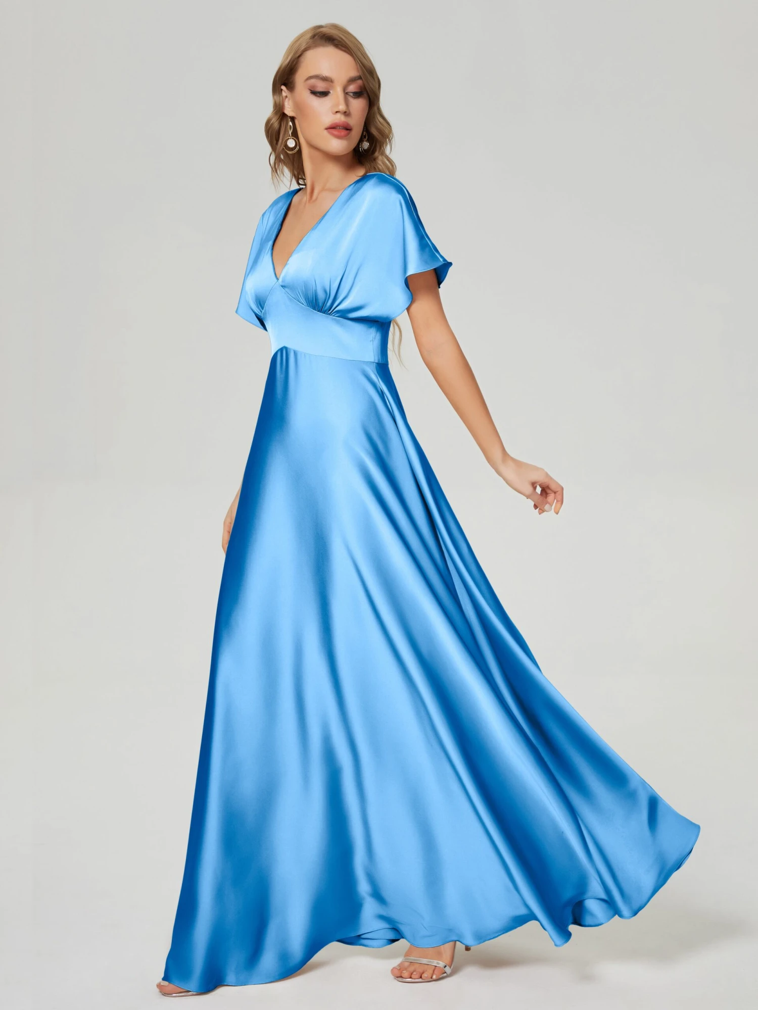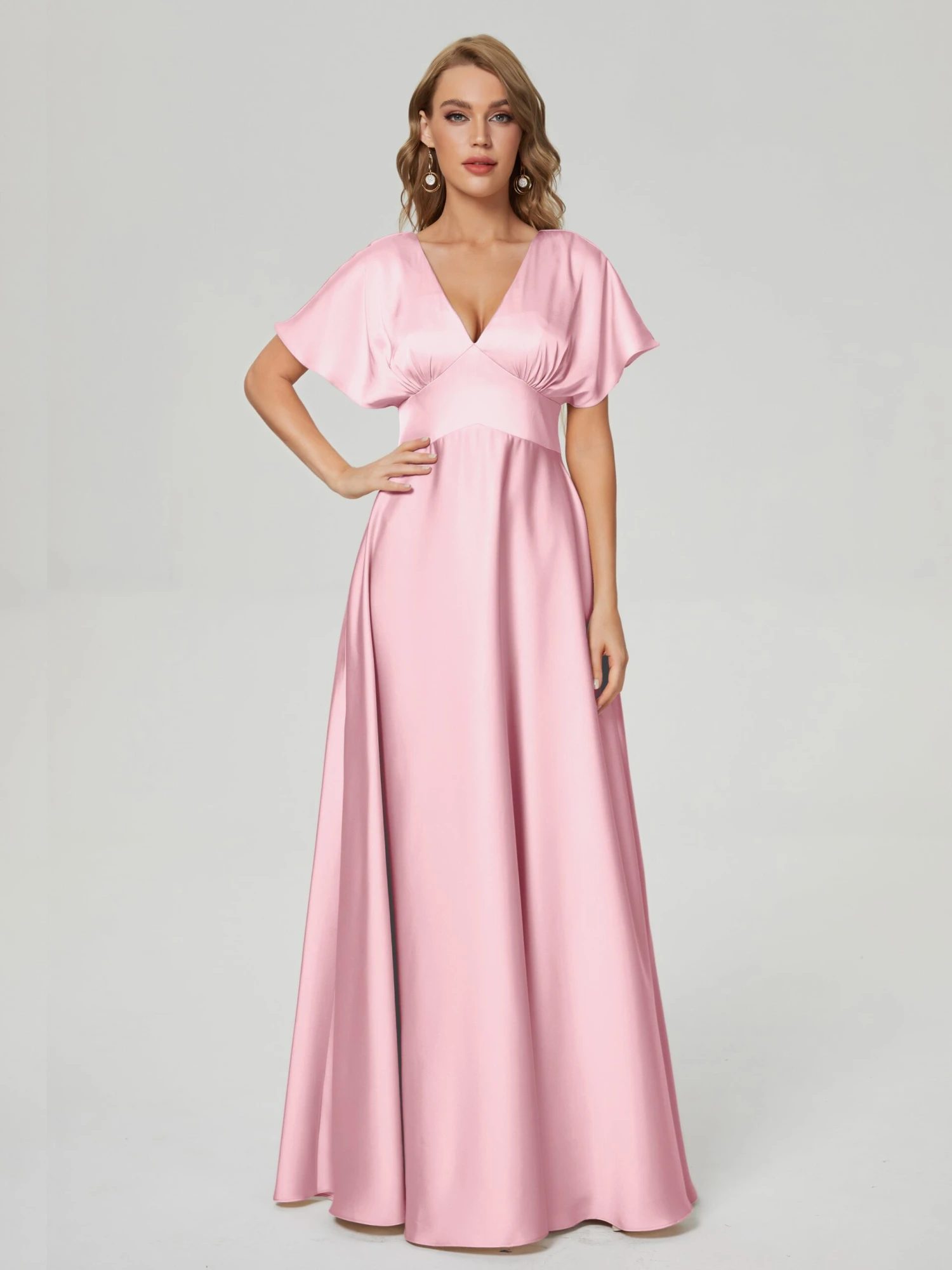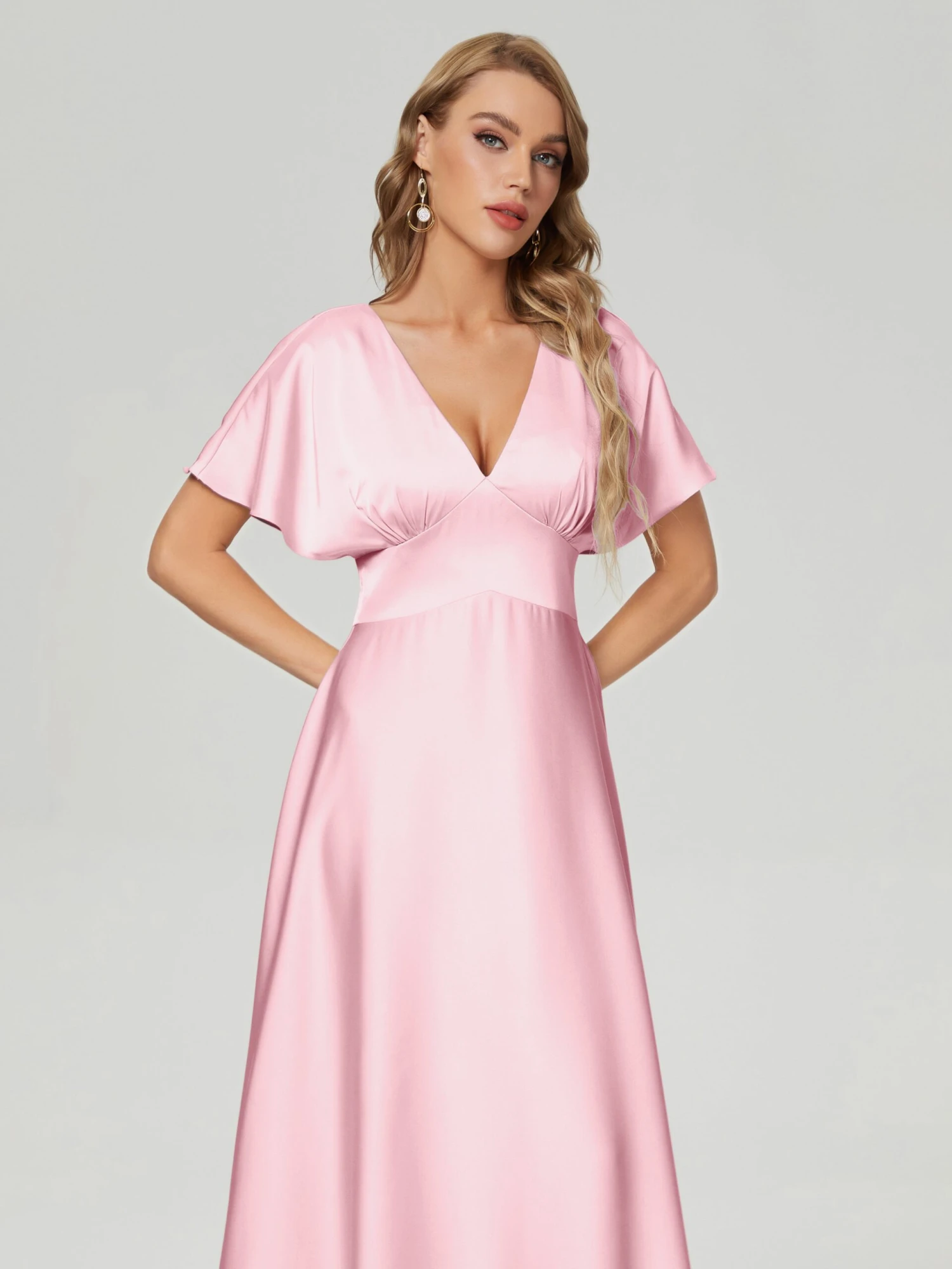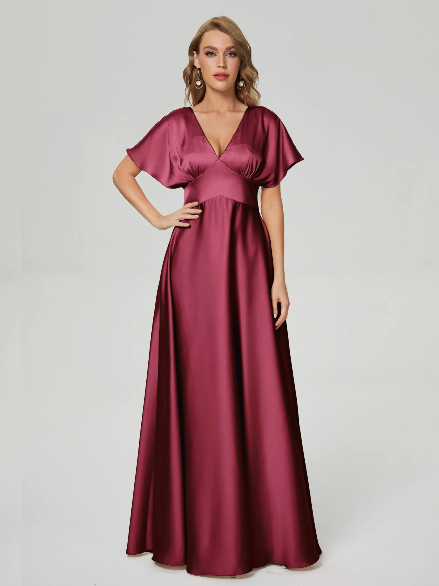 Ariah Modest Cap Sleeves Soft Satin Dresses