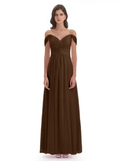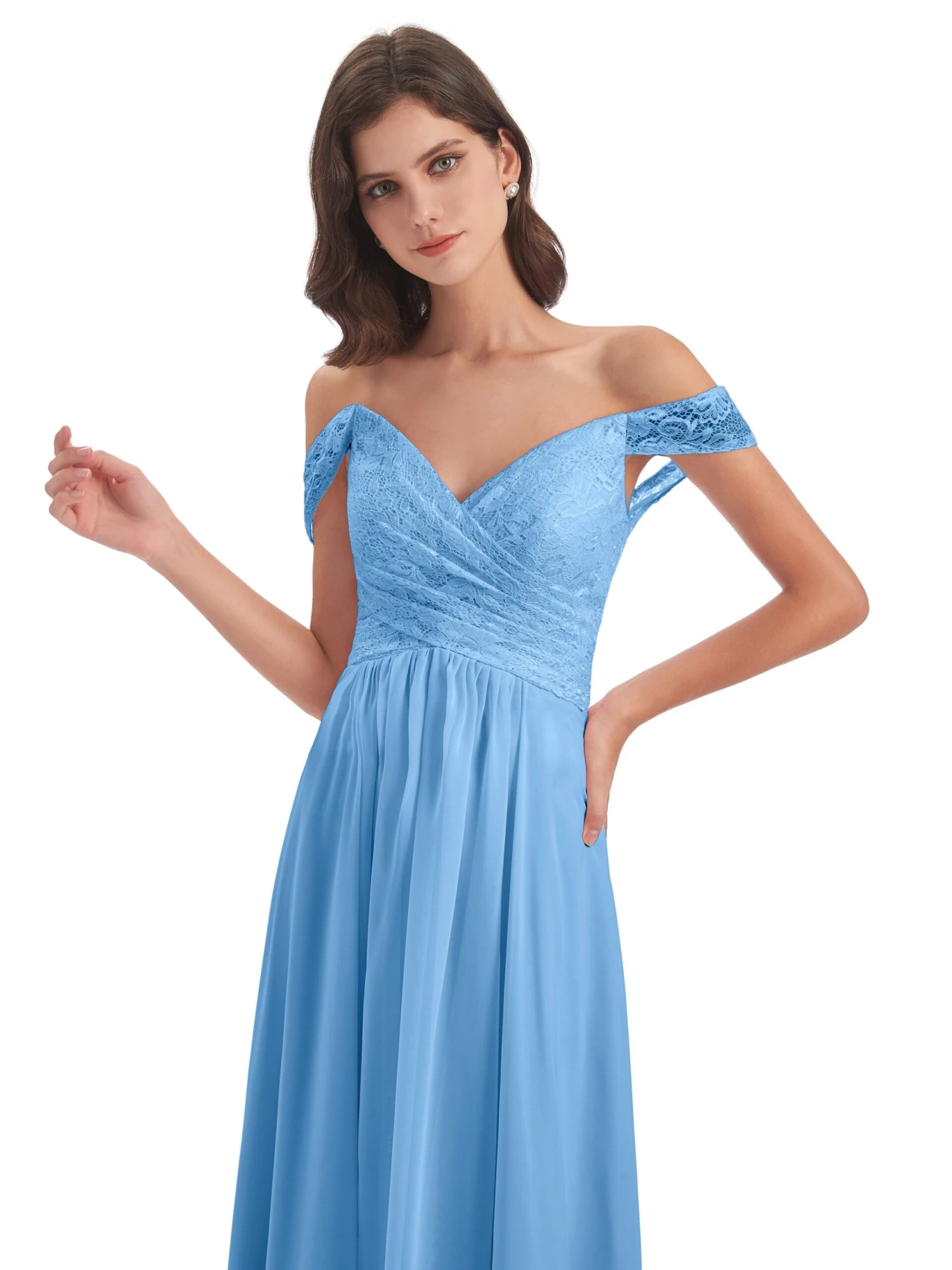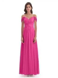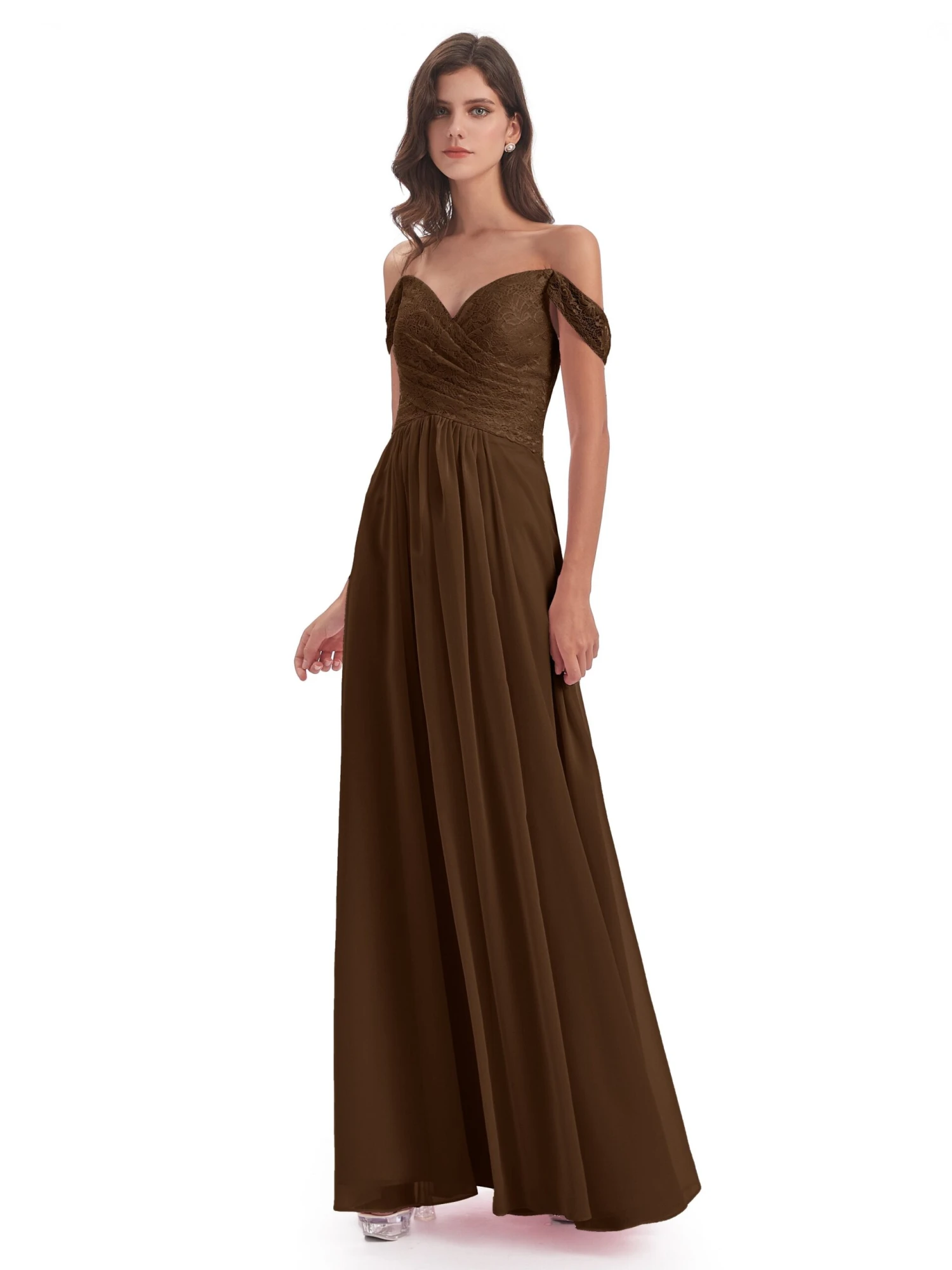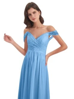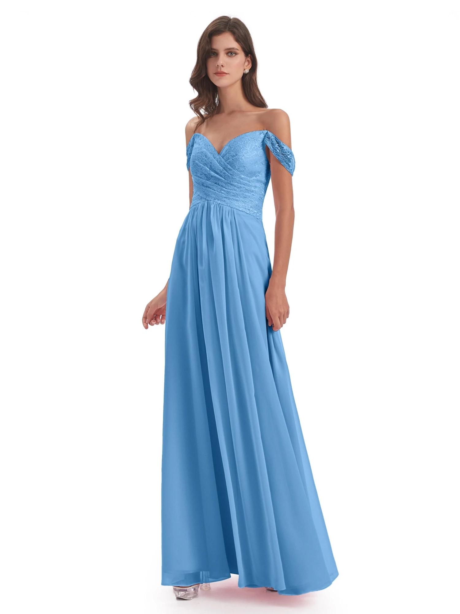 Aurora Chiffon Off The Shoulder Floor-Length Bridesmaid Dresses