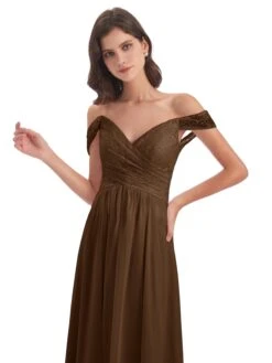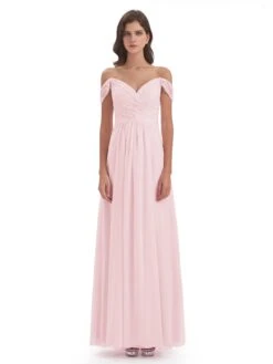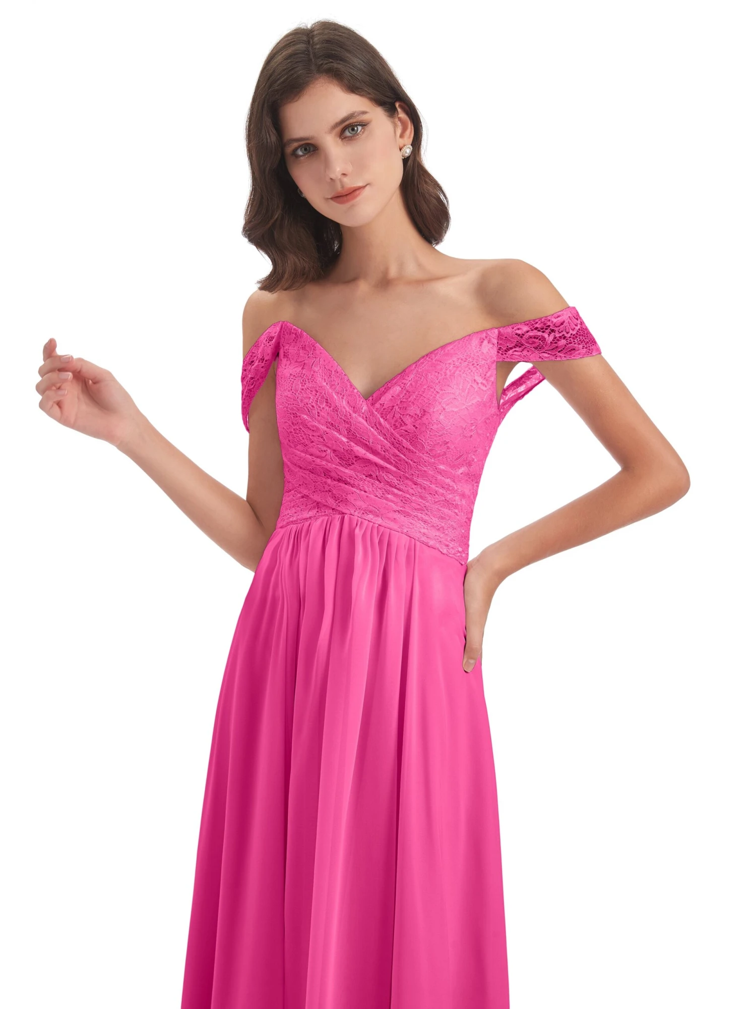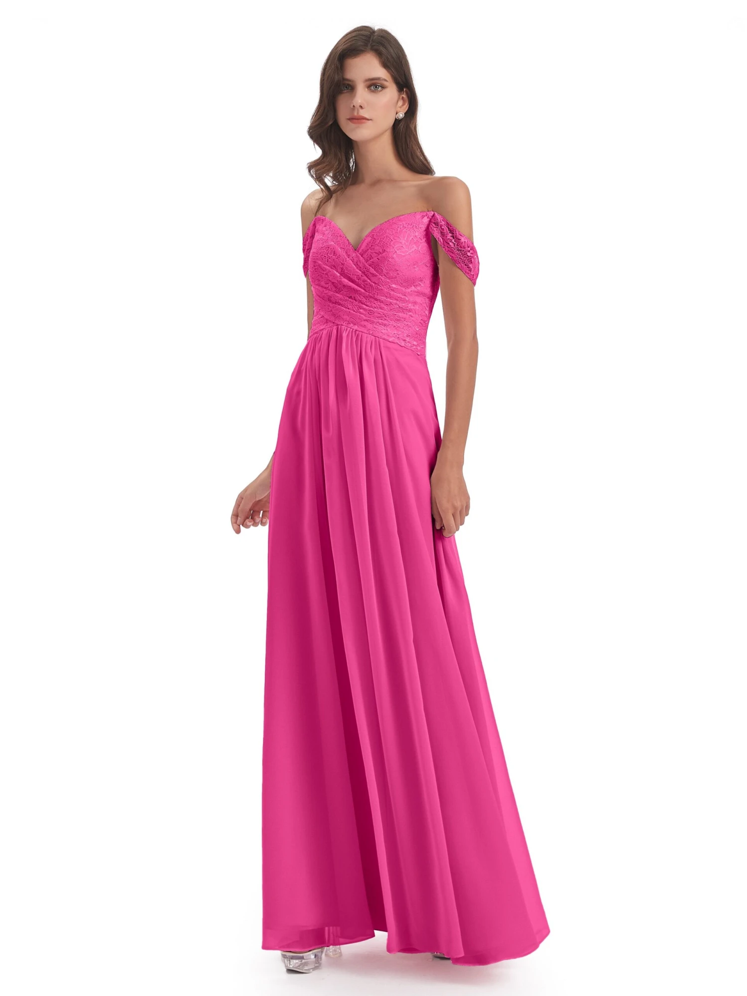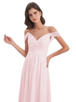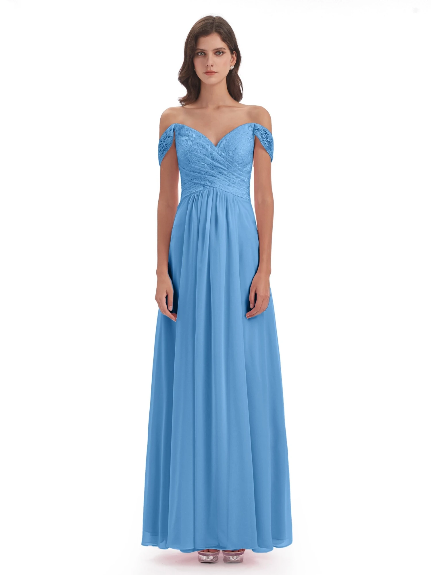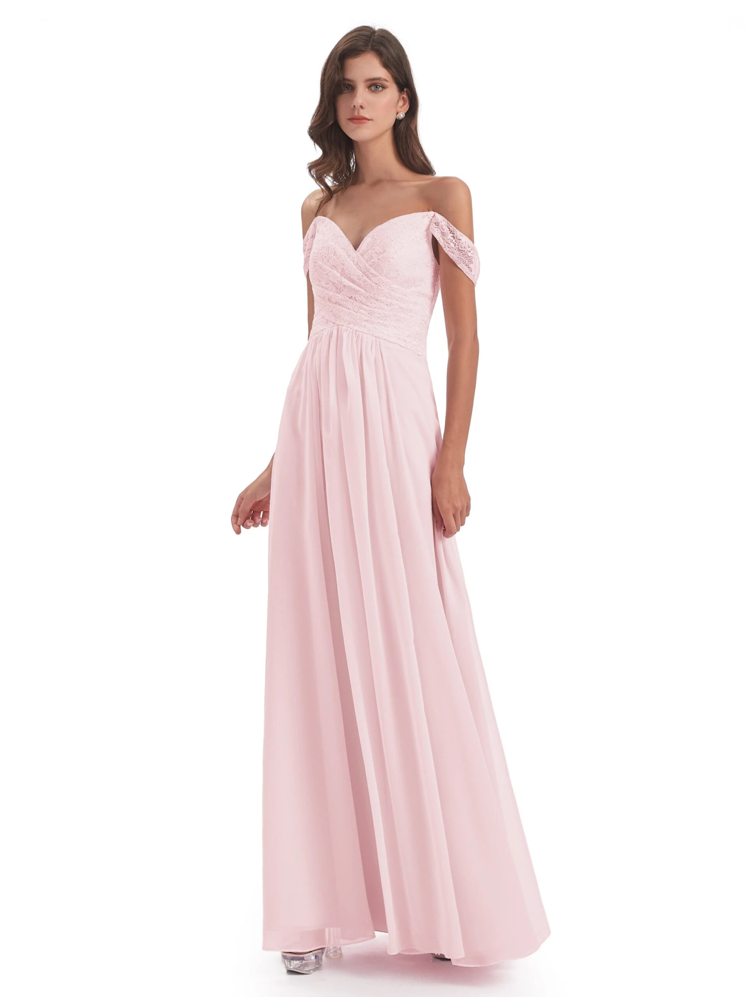 Aurora Chiffon Off The Shoulder Floor-Length Bridesmaid Dresses