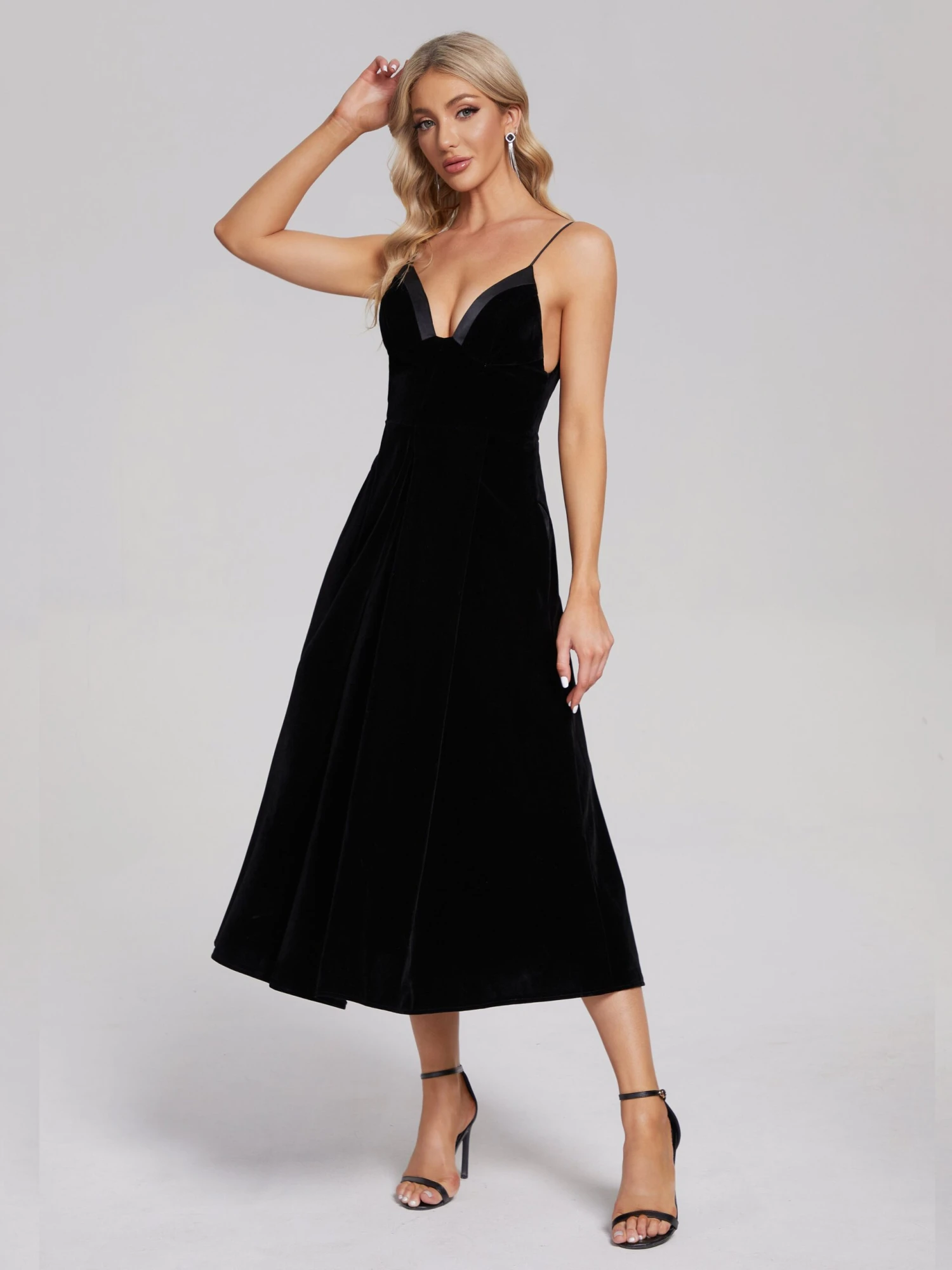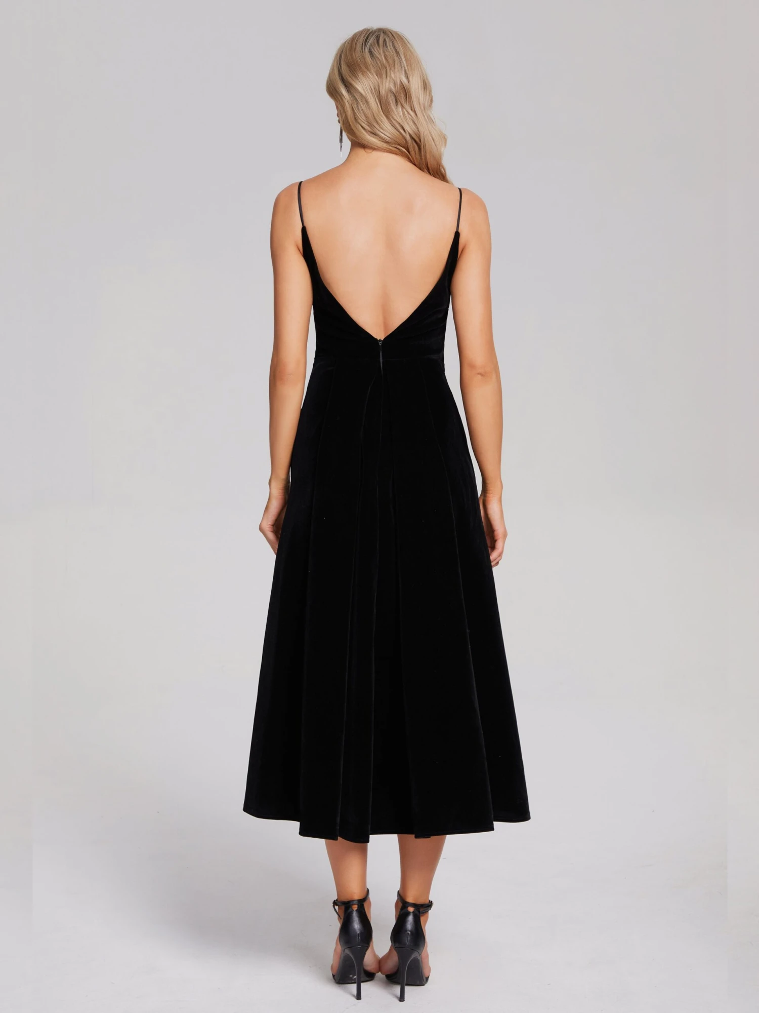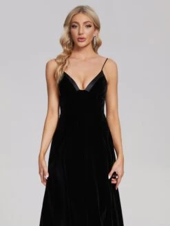 Black Tea Length Velvet Party Dresses