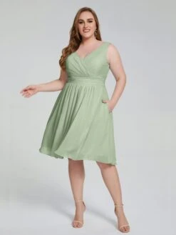 Callie Elegant Plus Size V-neck Chiffon Bridesmaid Dresses