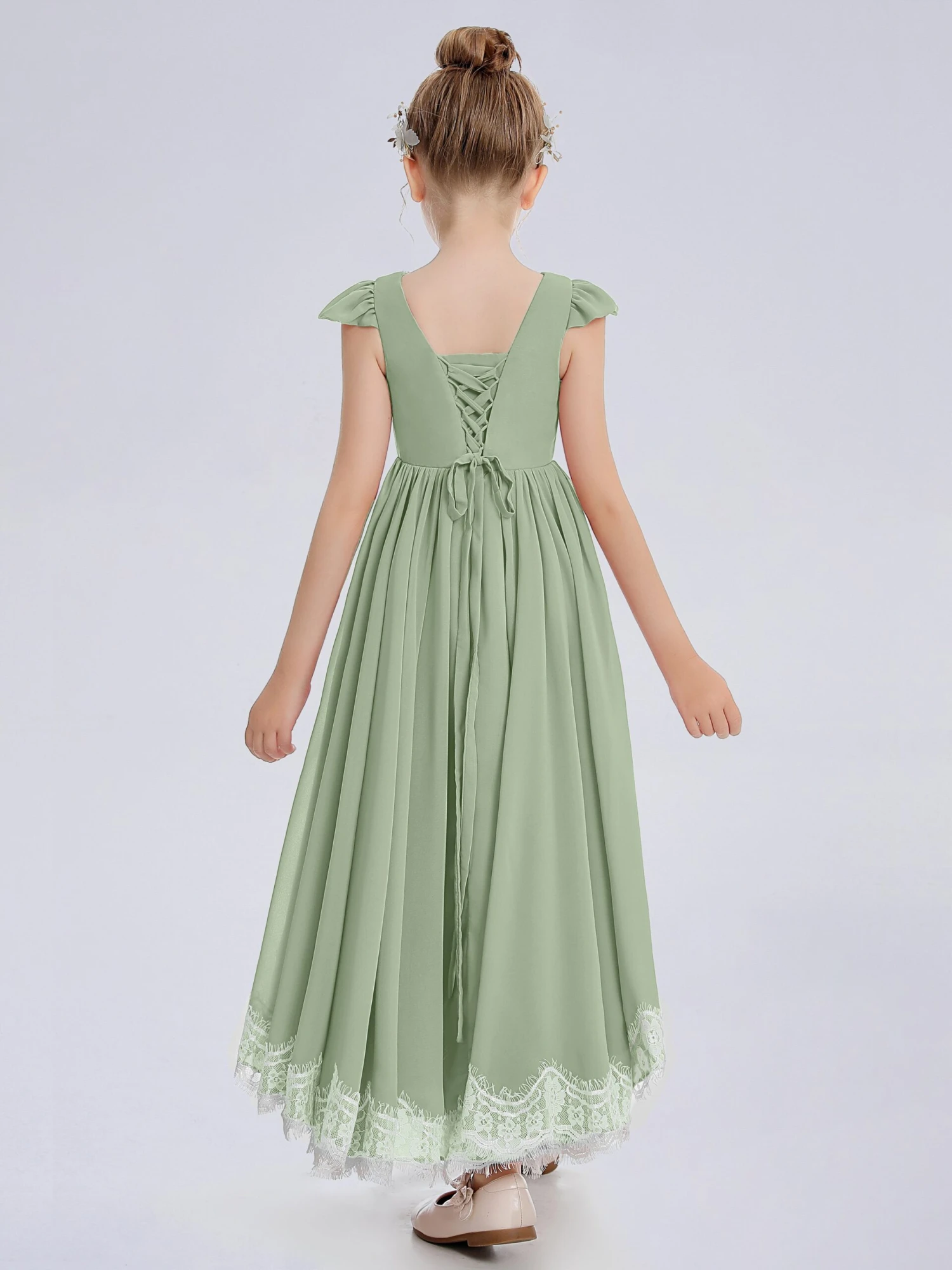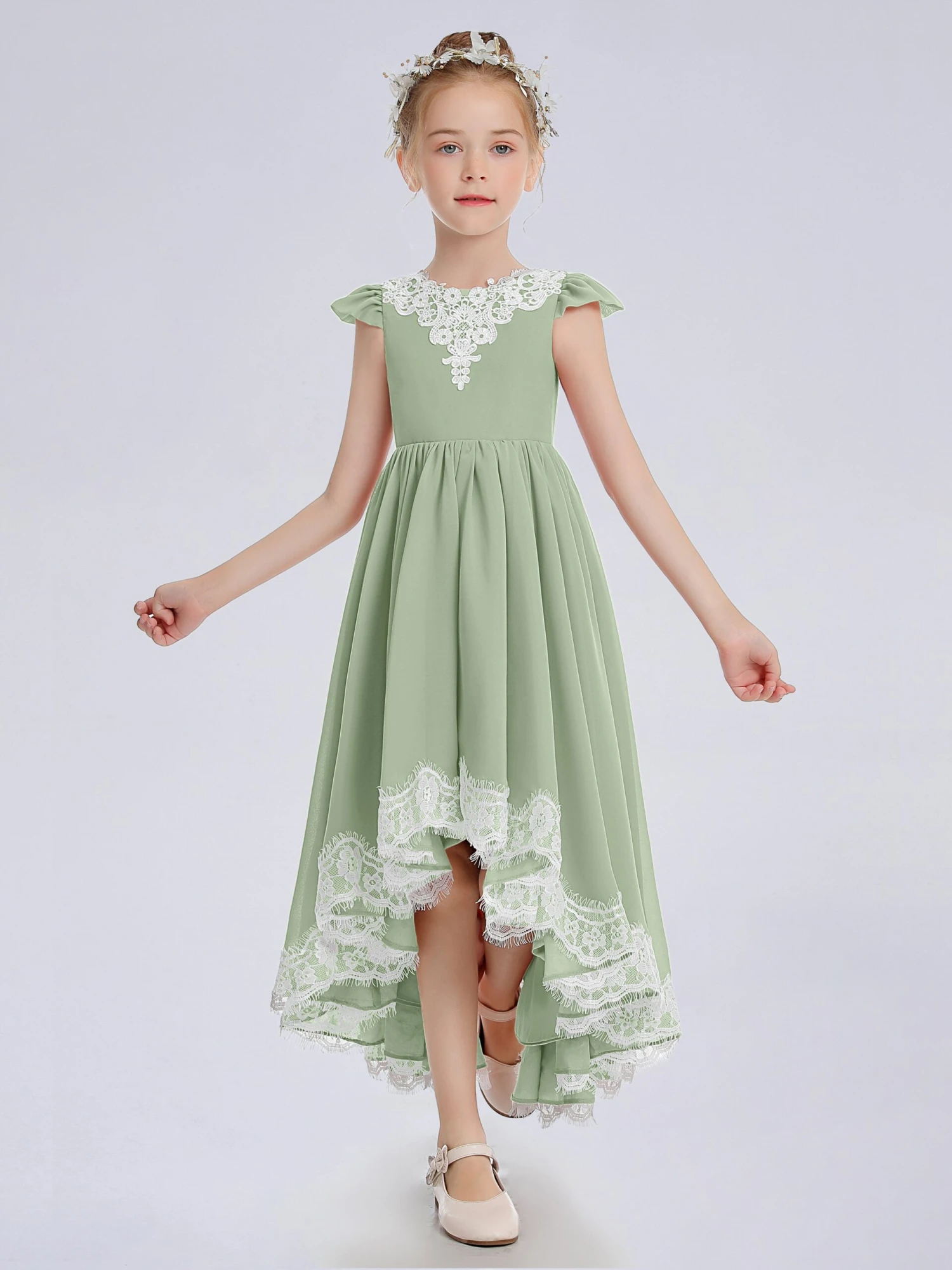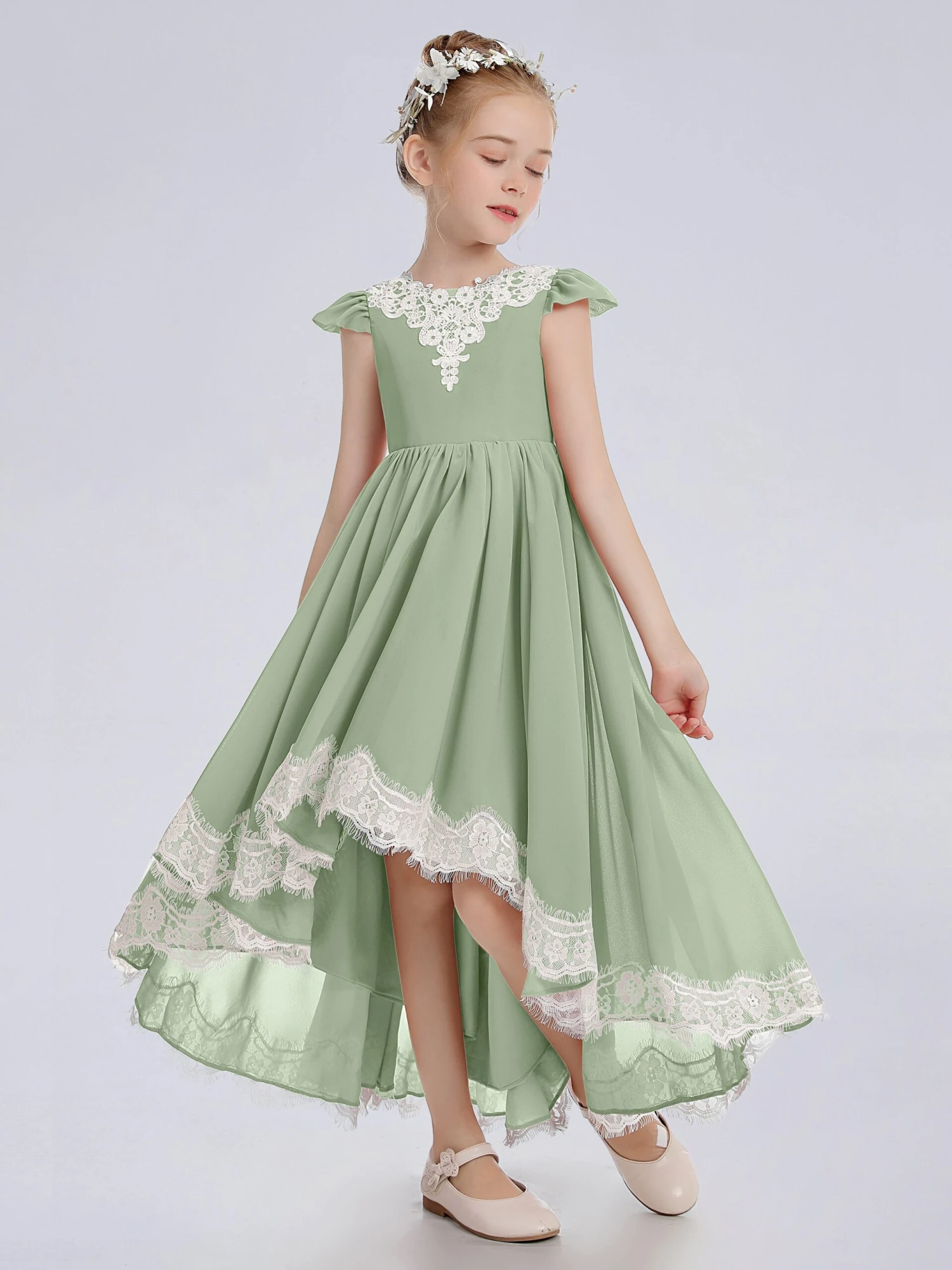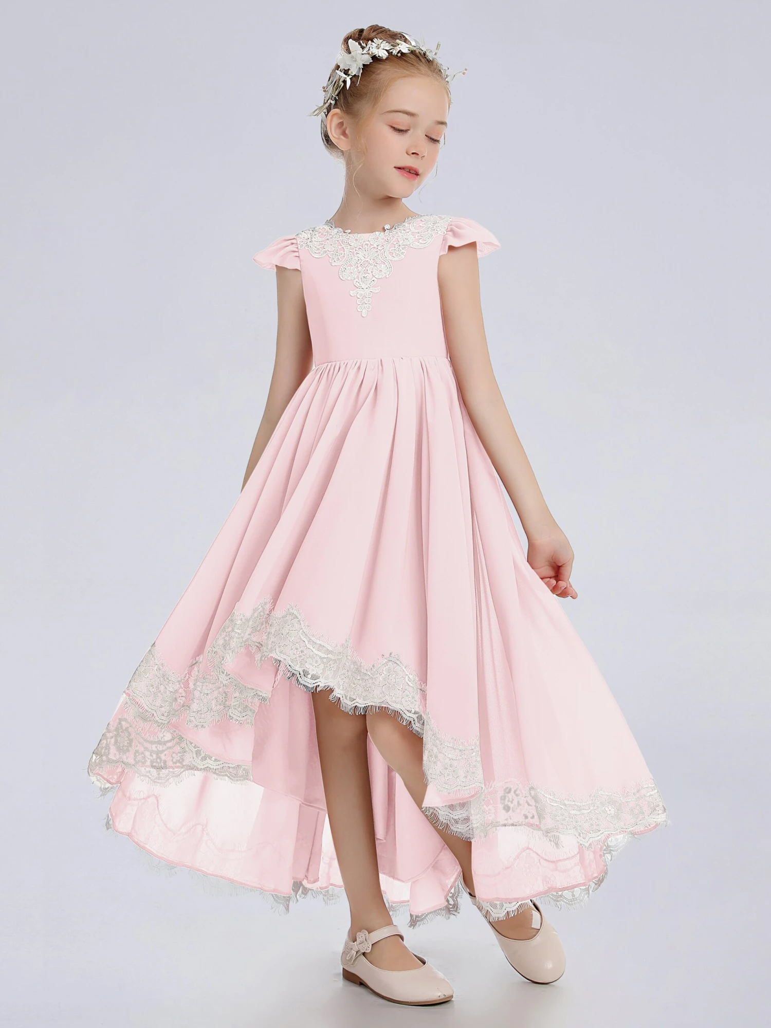 Cap Sleeves Junior Bridesmaid Dress With Cascade