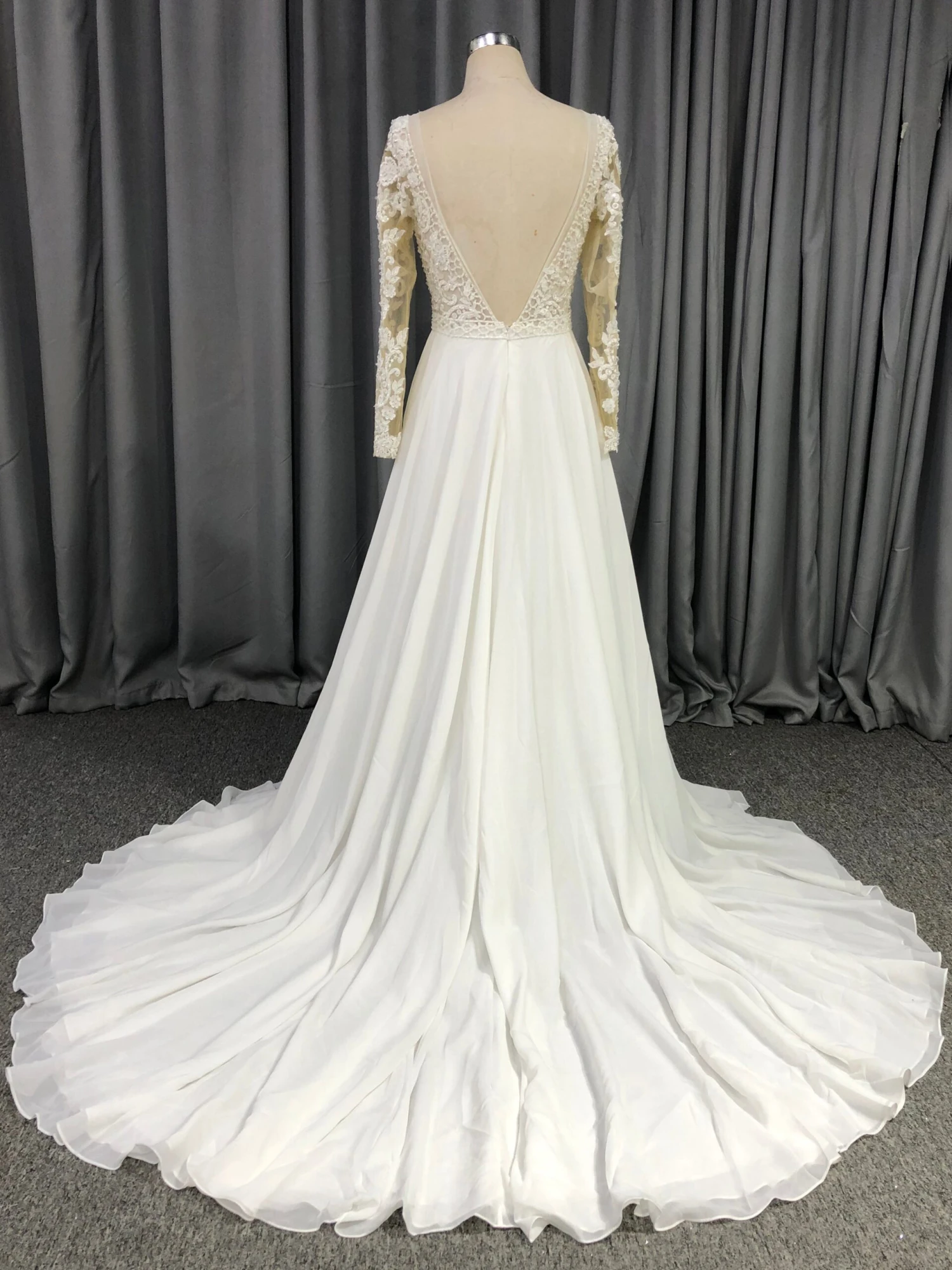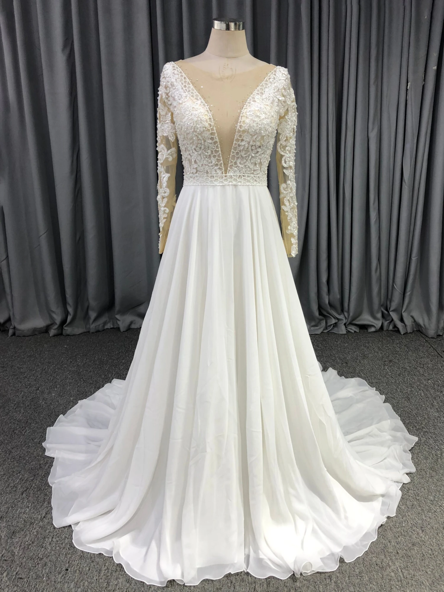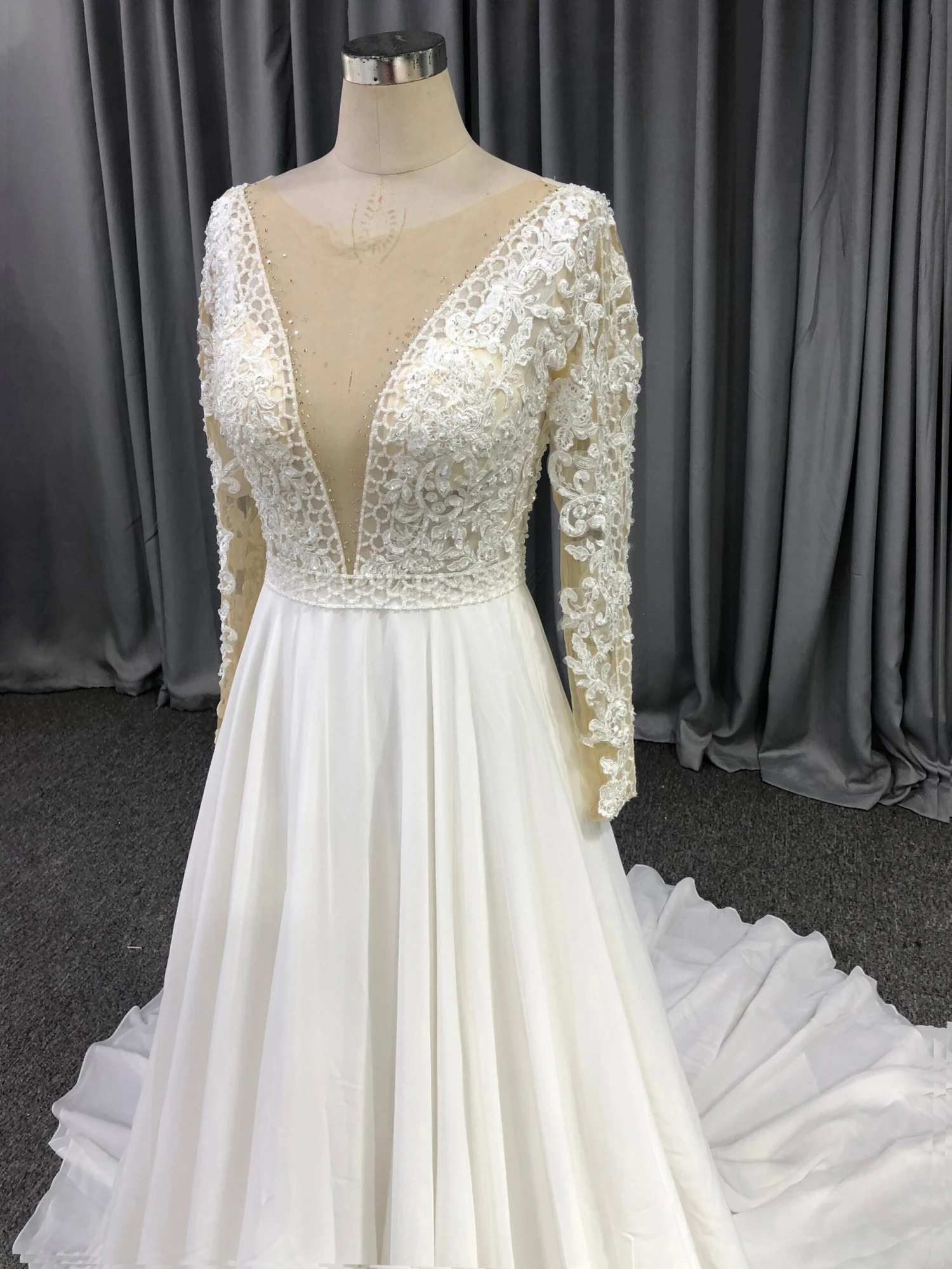 Trumpet/Mermaid V-neck Sweep Train Lace Wedding Dresses With Sequin