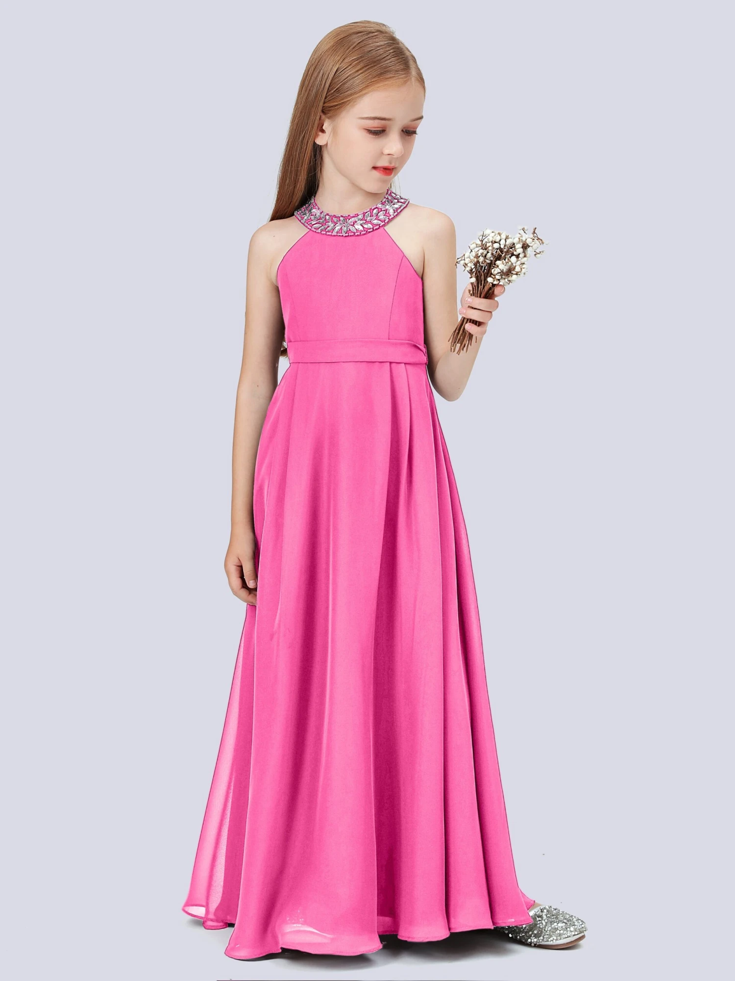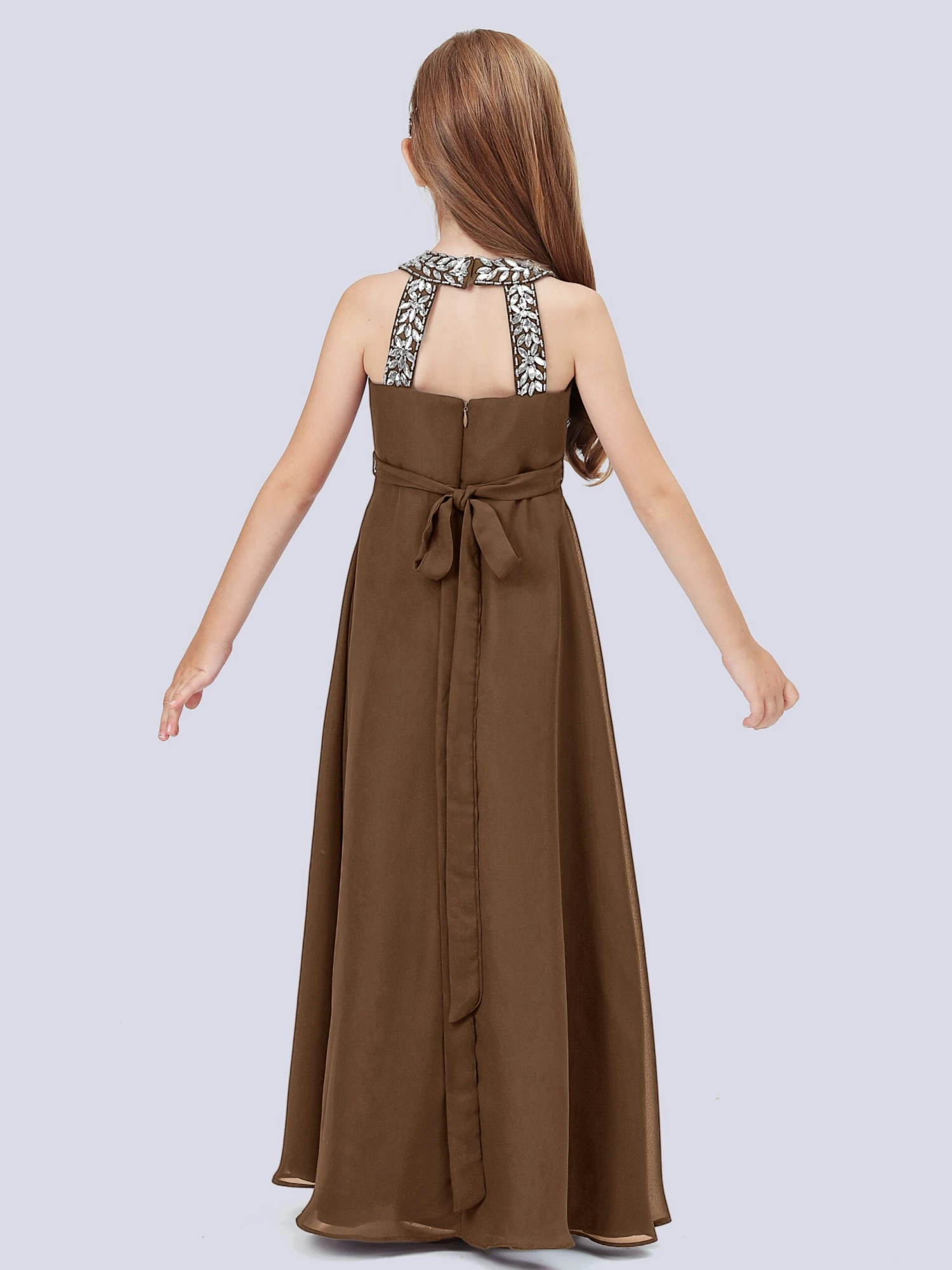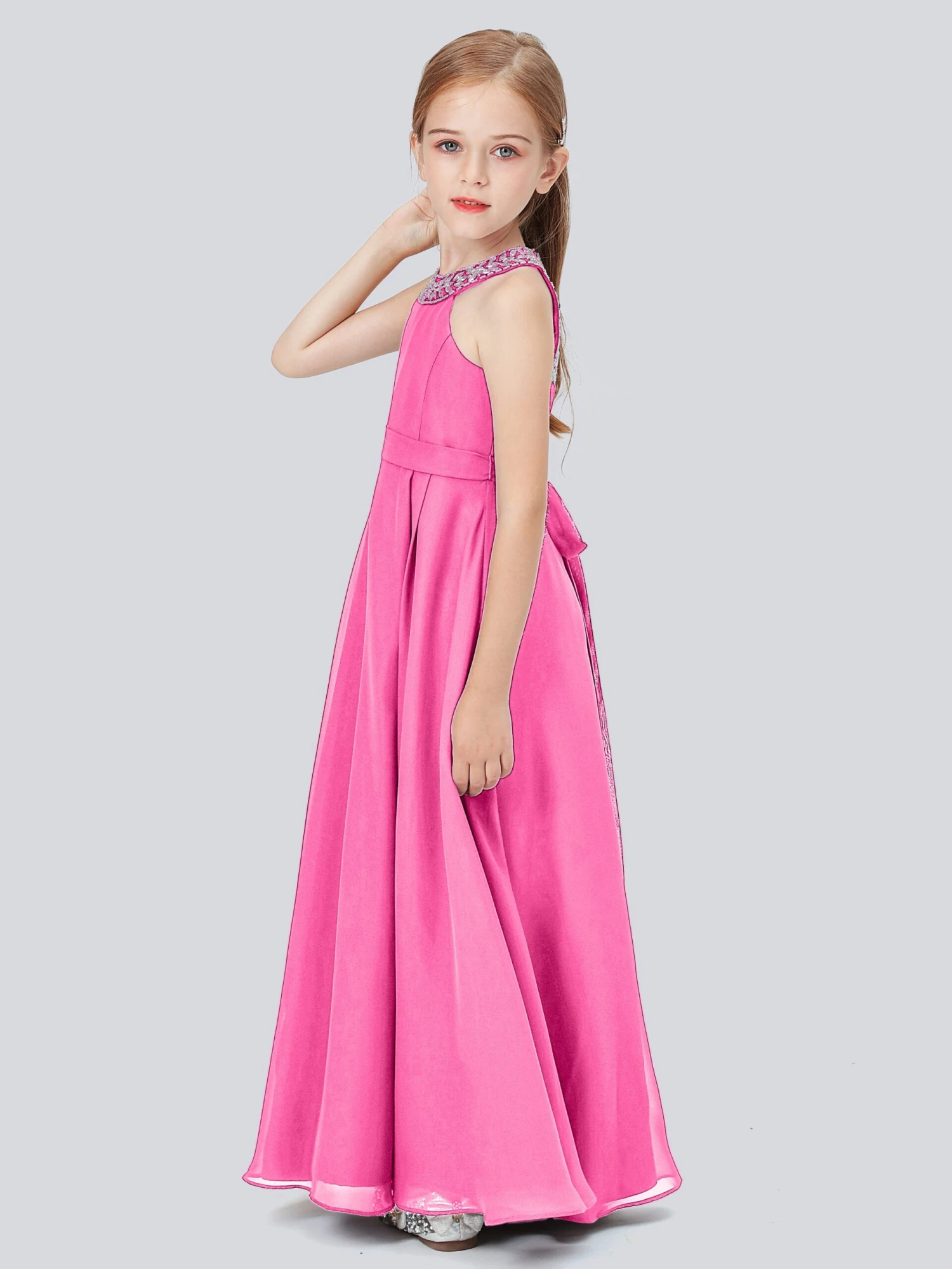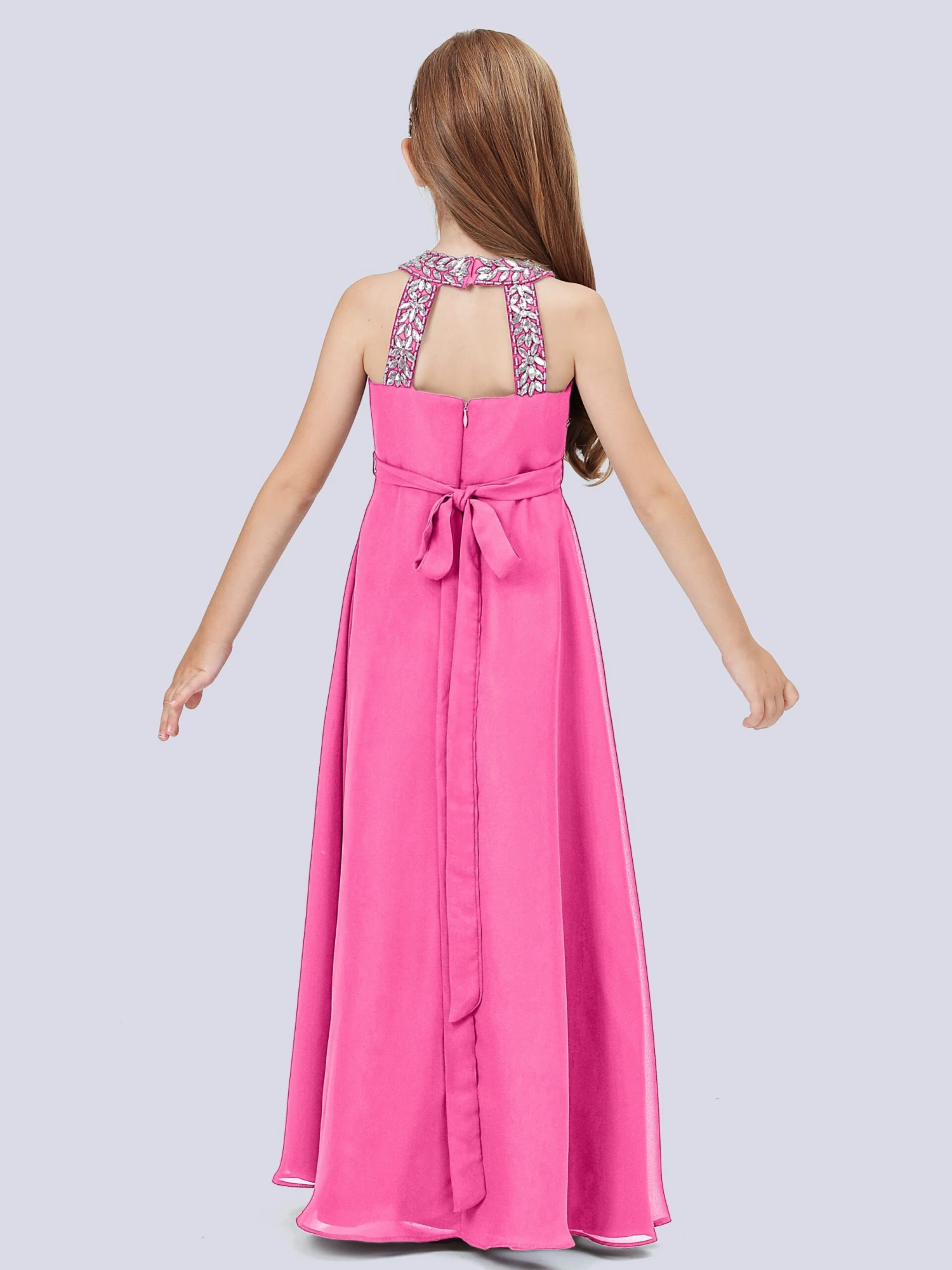 Chiffon Junior Bridesmaid Dress With Beaded Neckline