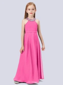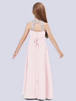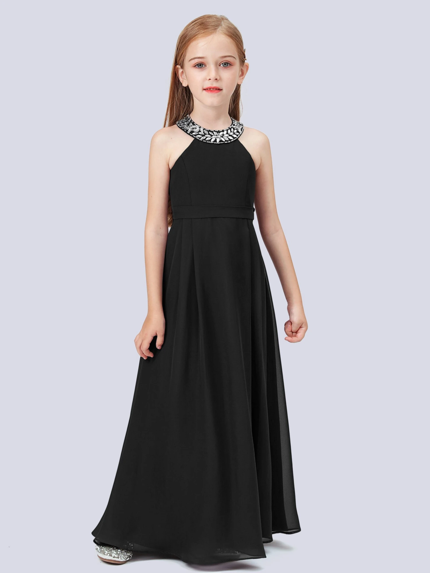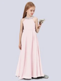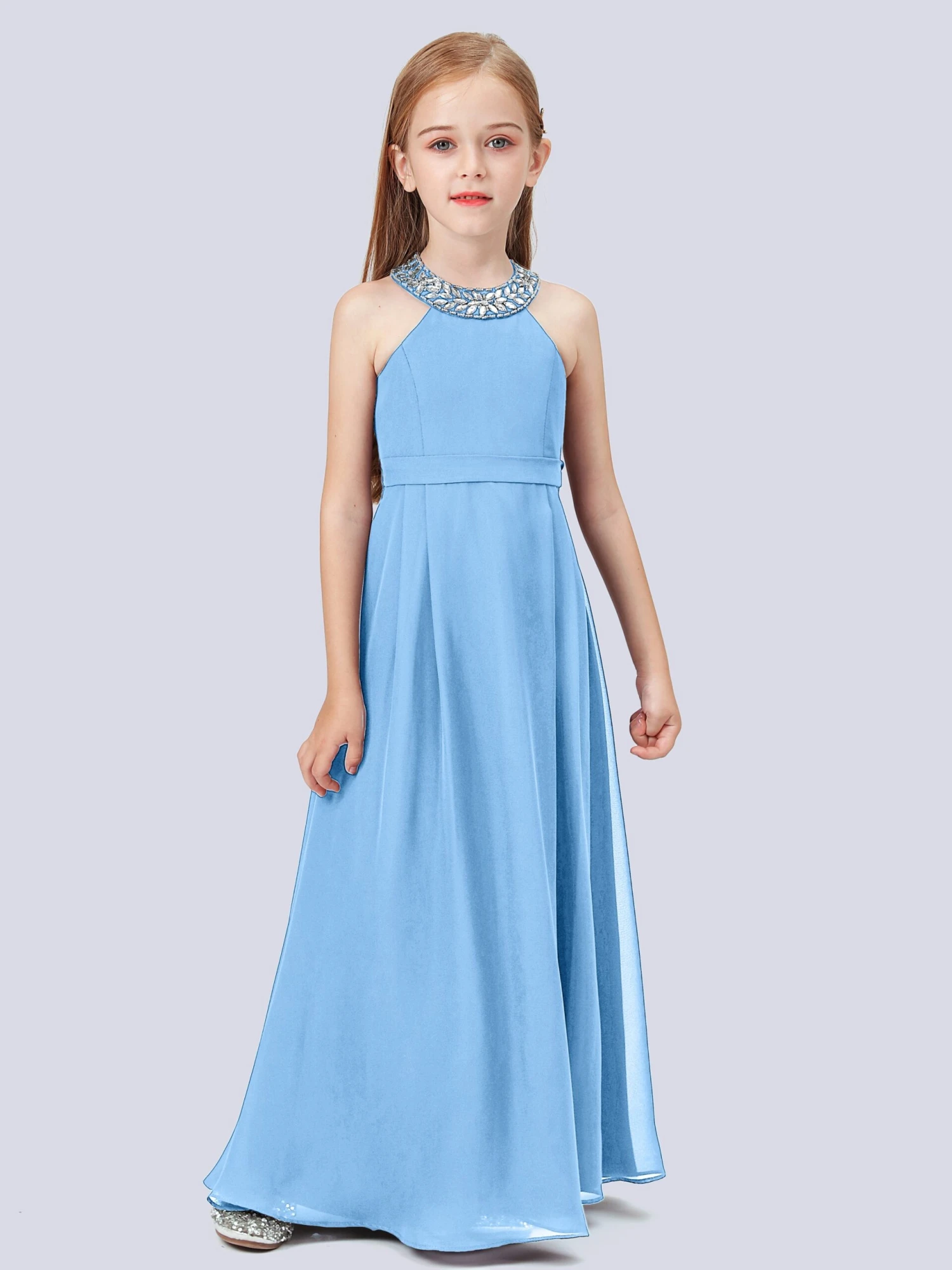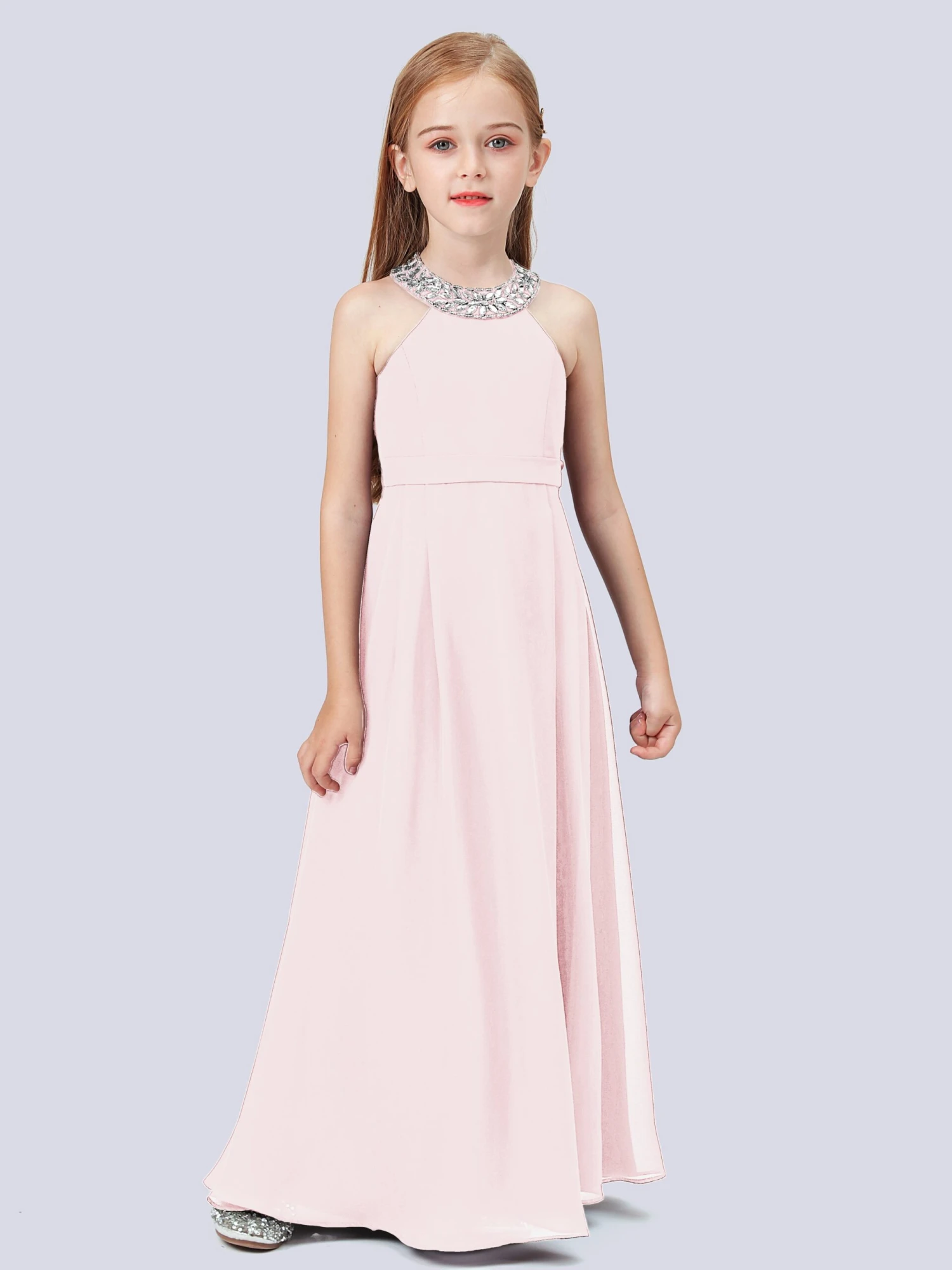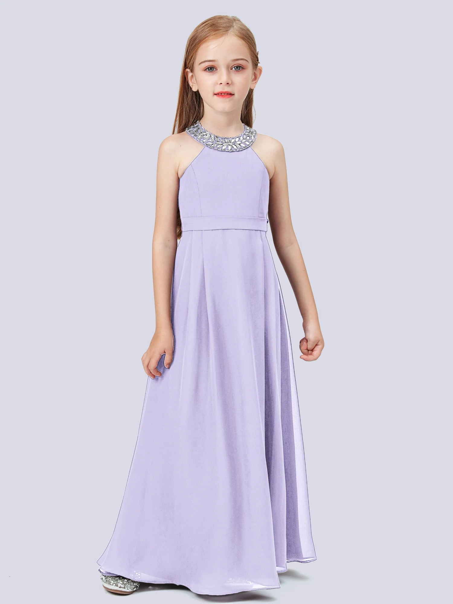 Chiffon Junior Bridesmaid Dress With Beaded Neckline