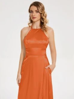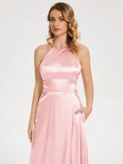 Elaina Elegant Halter Soft Satin Dresses