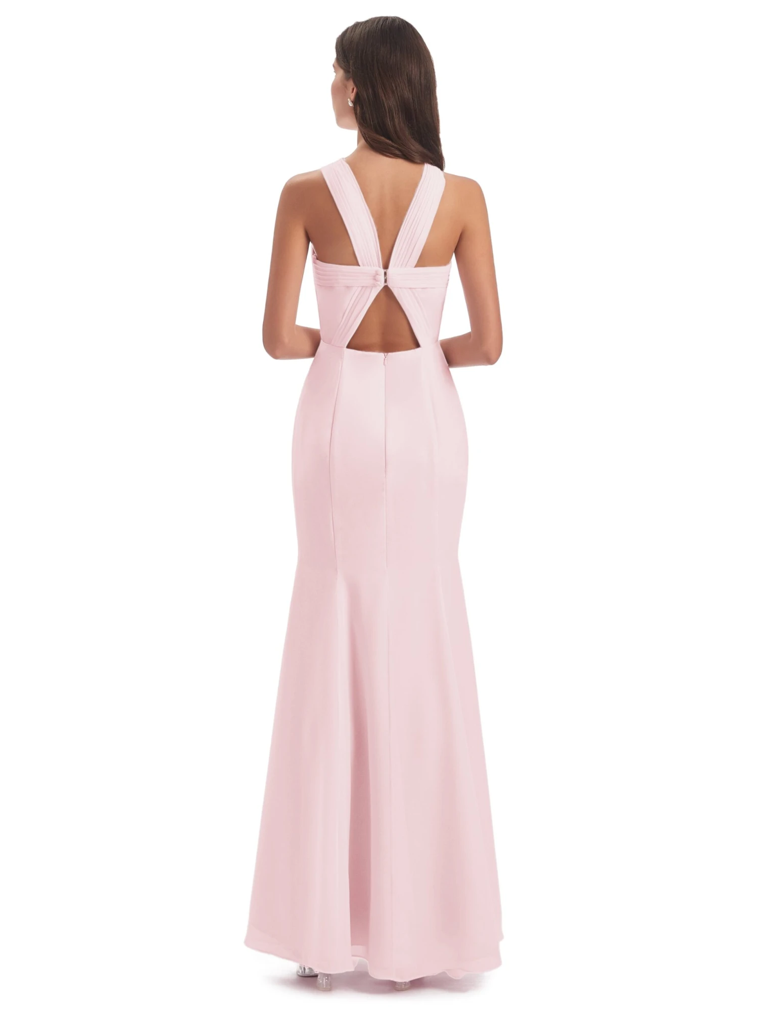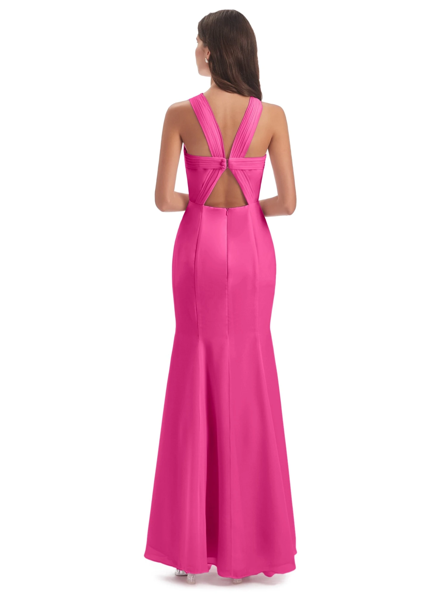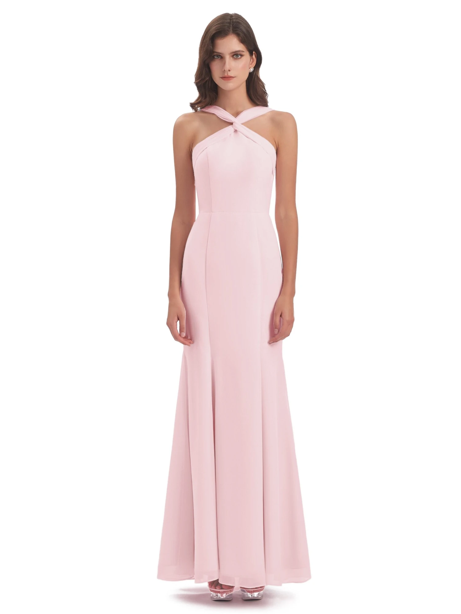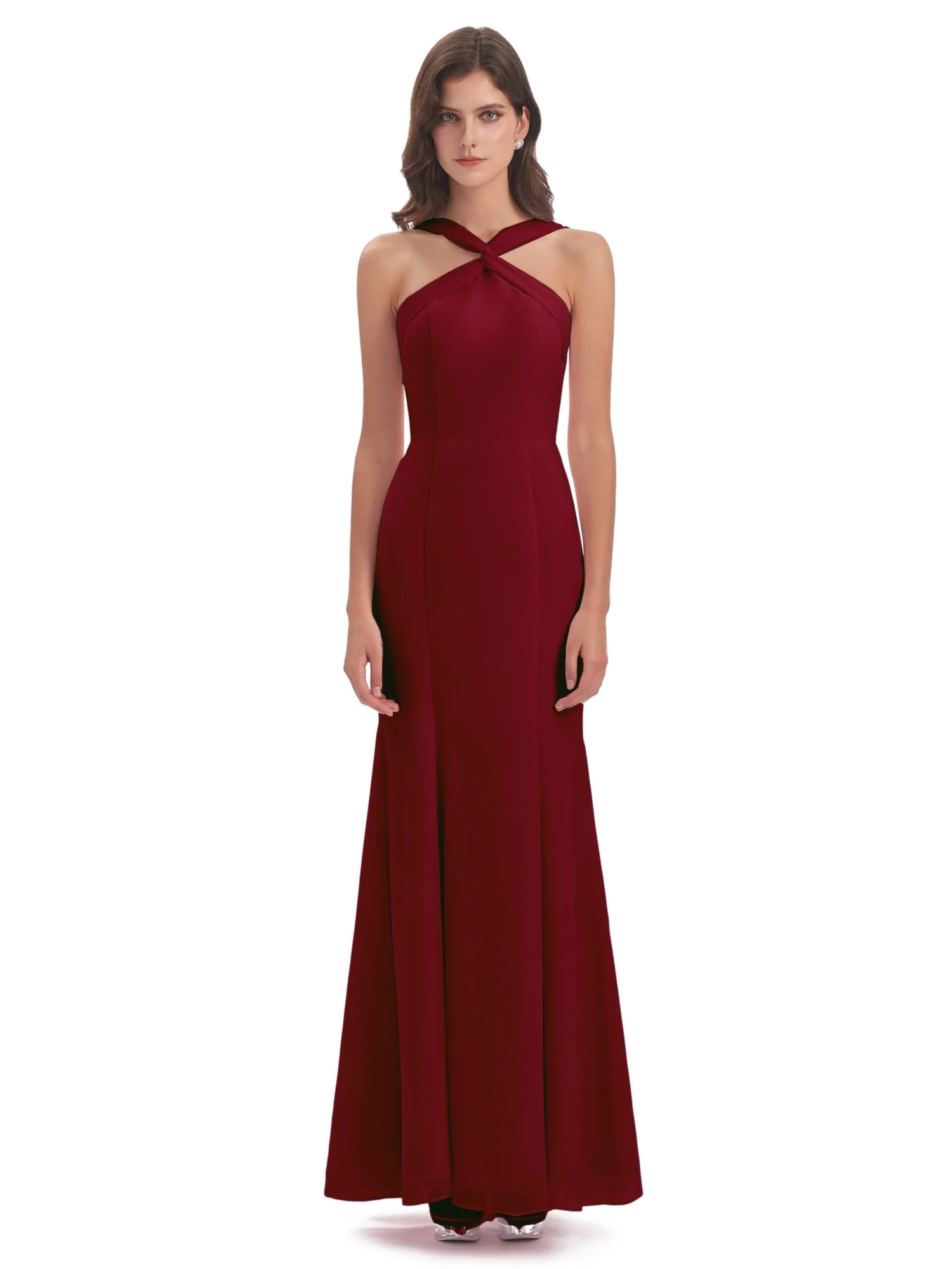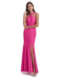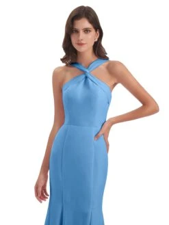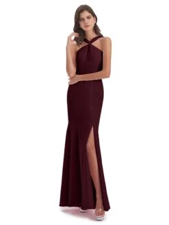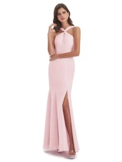 Evie Unique Trumpet-Hourglass Halter Split Long Bridesmaid Dresses