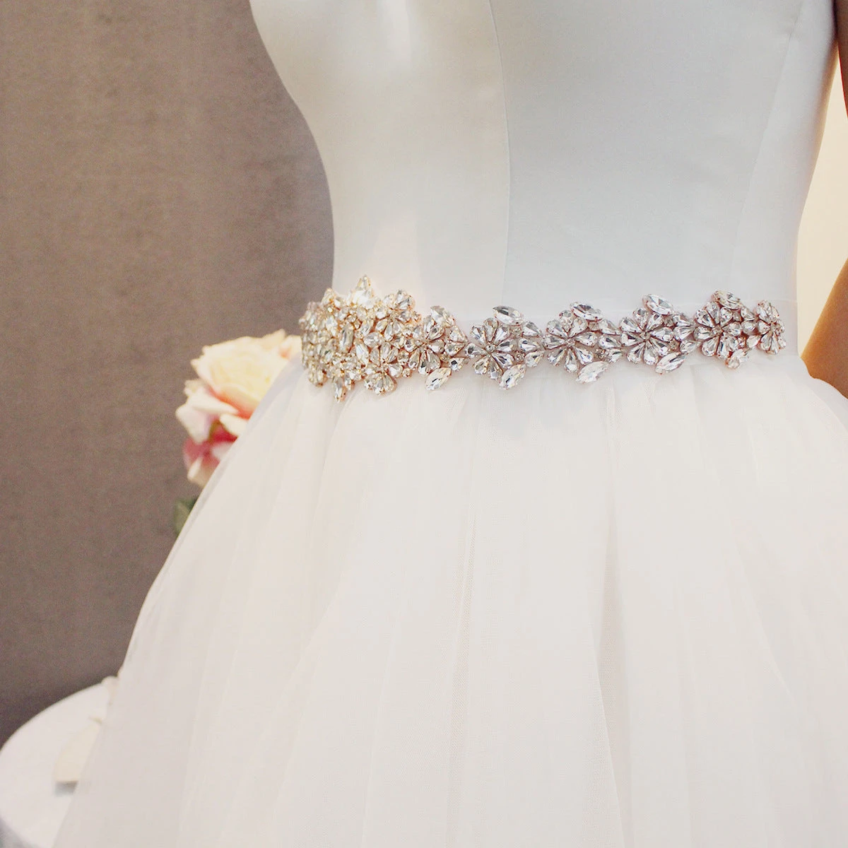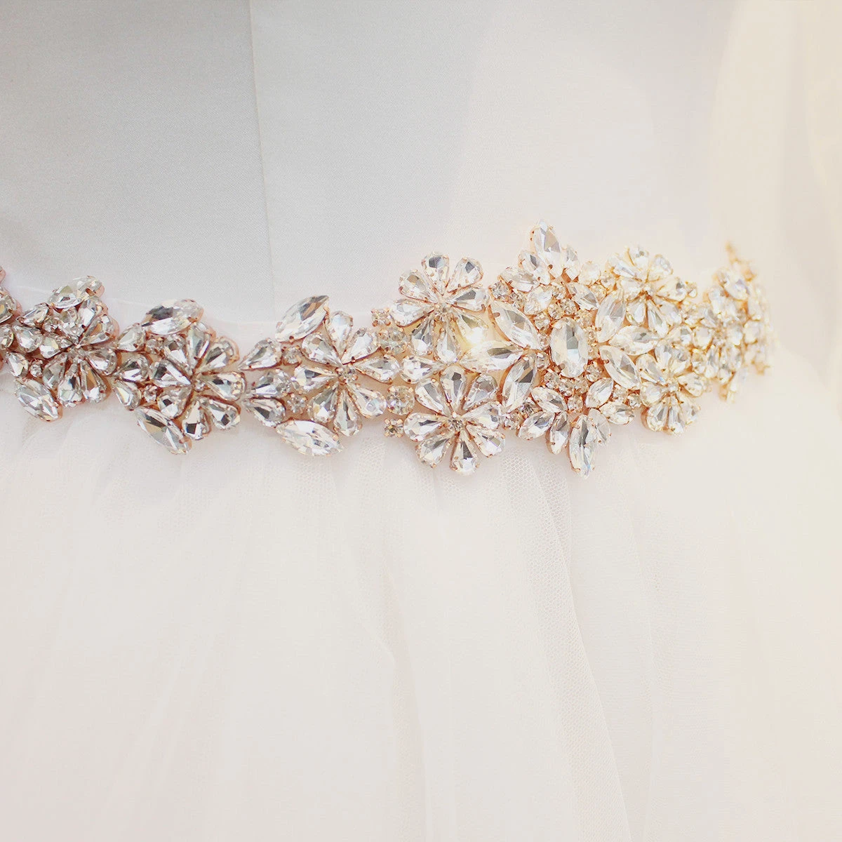 Floral Cluster Wedding Sash Belt With Rhinestones