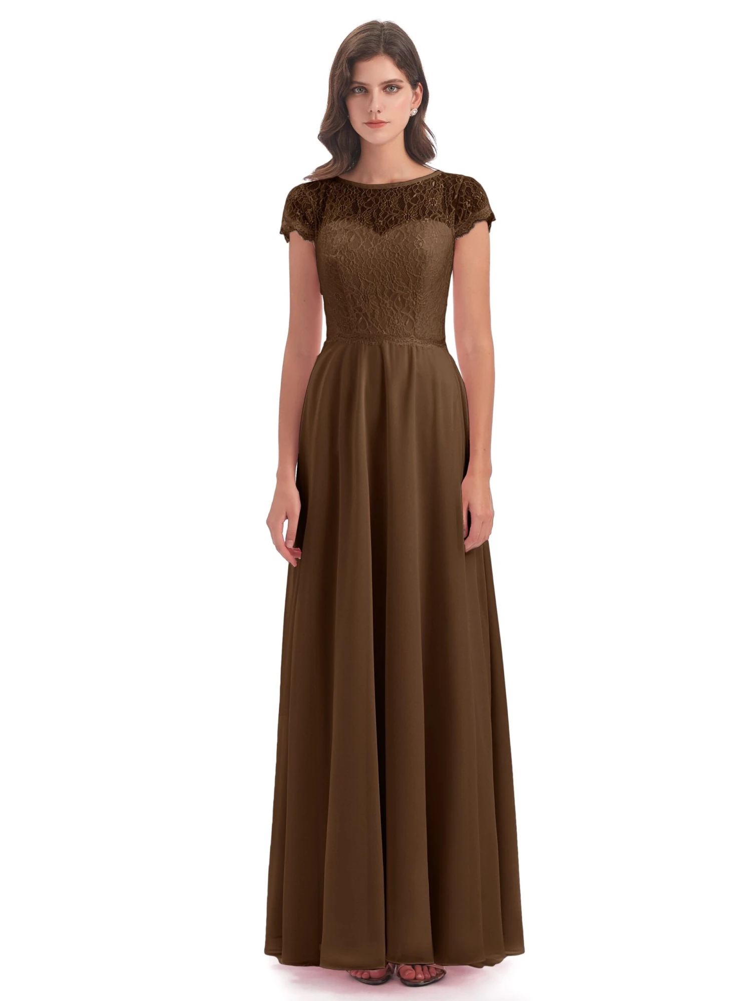Freya Elegant Illusion Cap Sleeves Long Bridesmaid Dresses