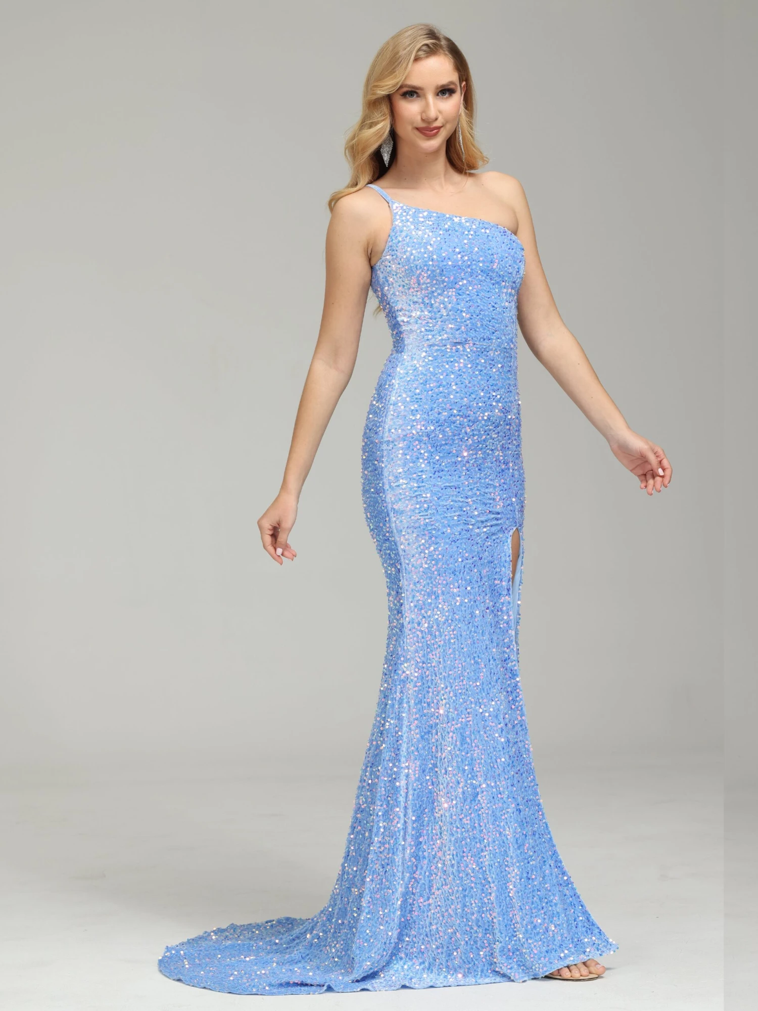 Gracelyn Elegant One Shoulder Sequin Prom Dress