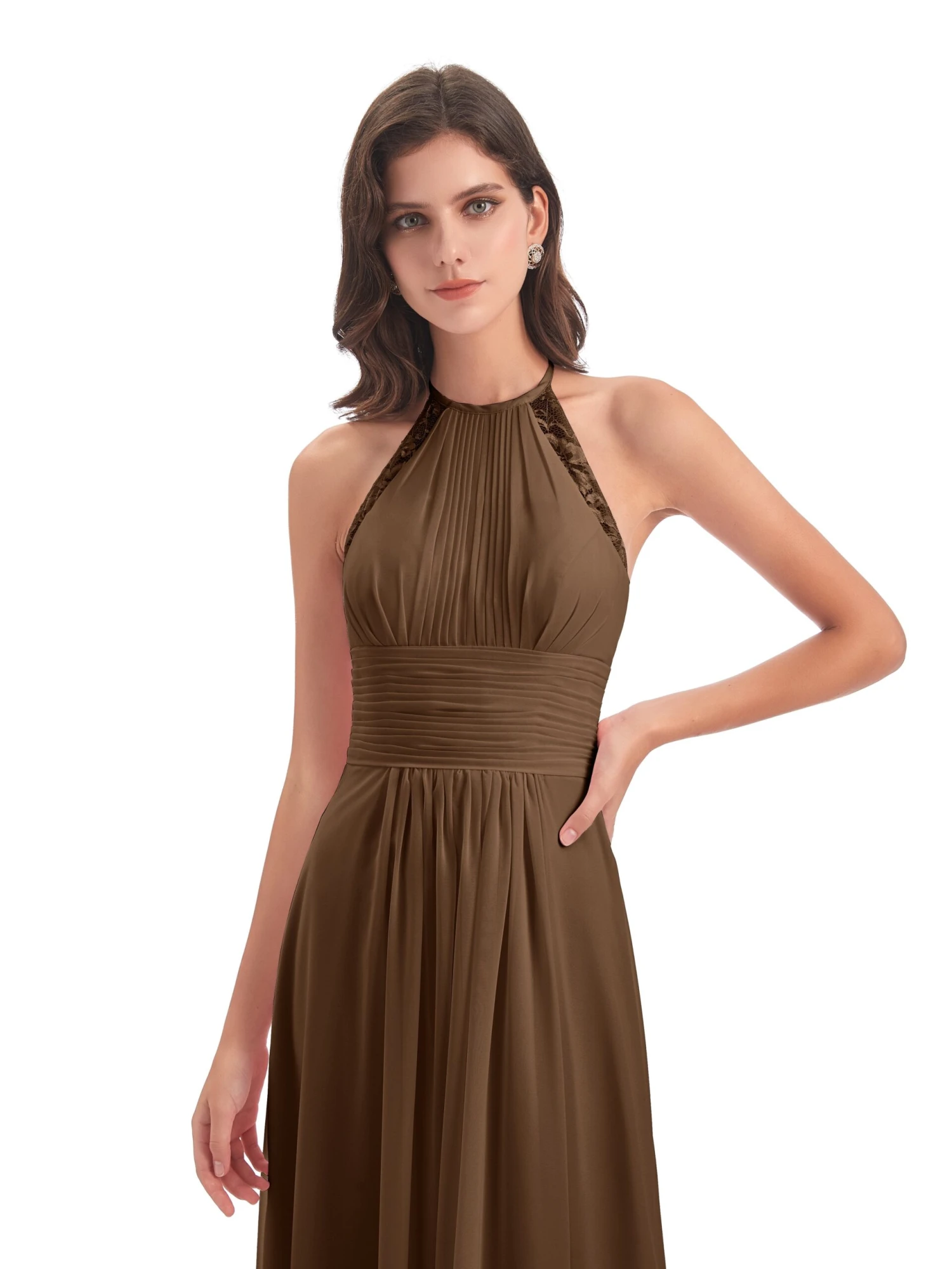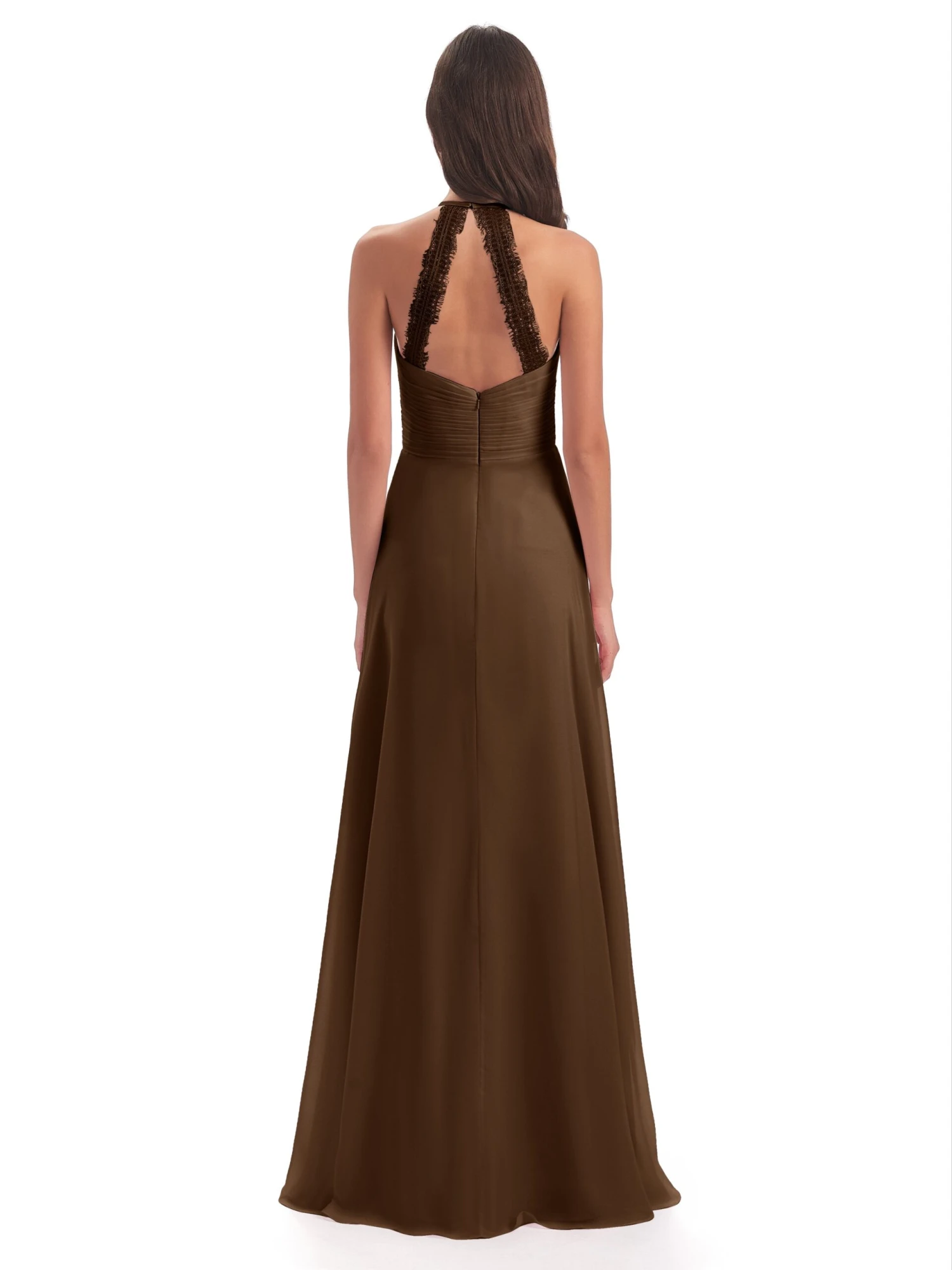 Isla Lace Sheath Halter Floor-Length Bridesmaid Dresses