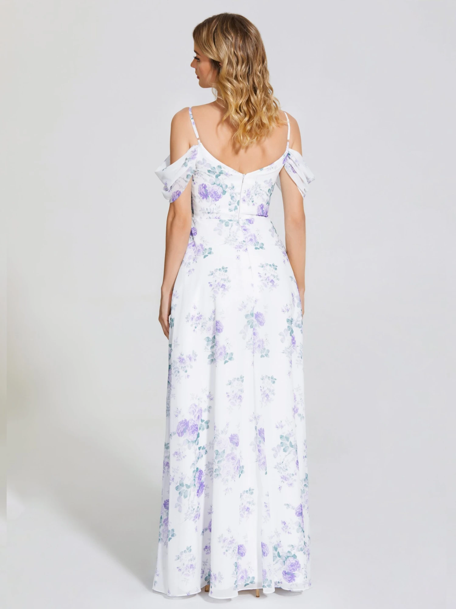 Izabella Fashion Split Floral Chiffon Bridesmaid Dresses
