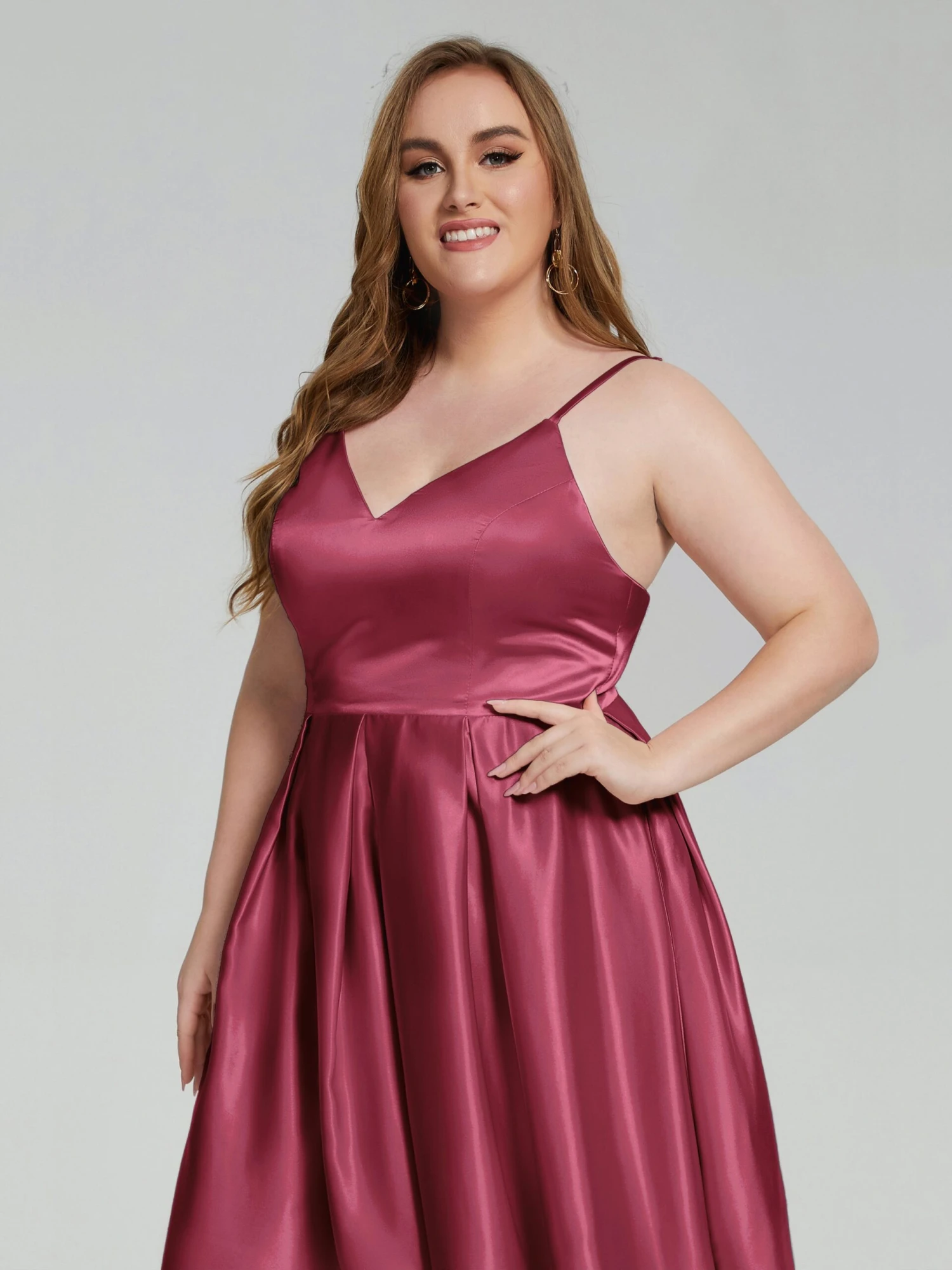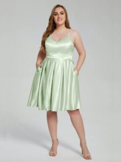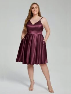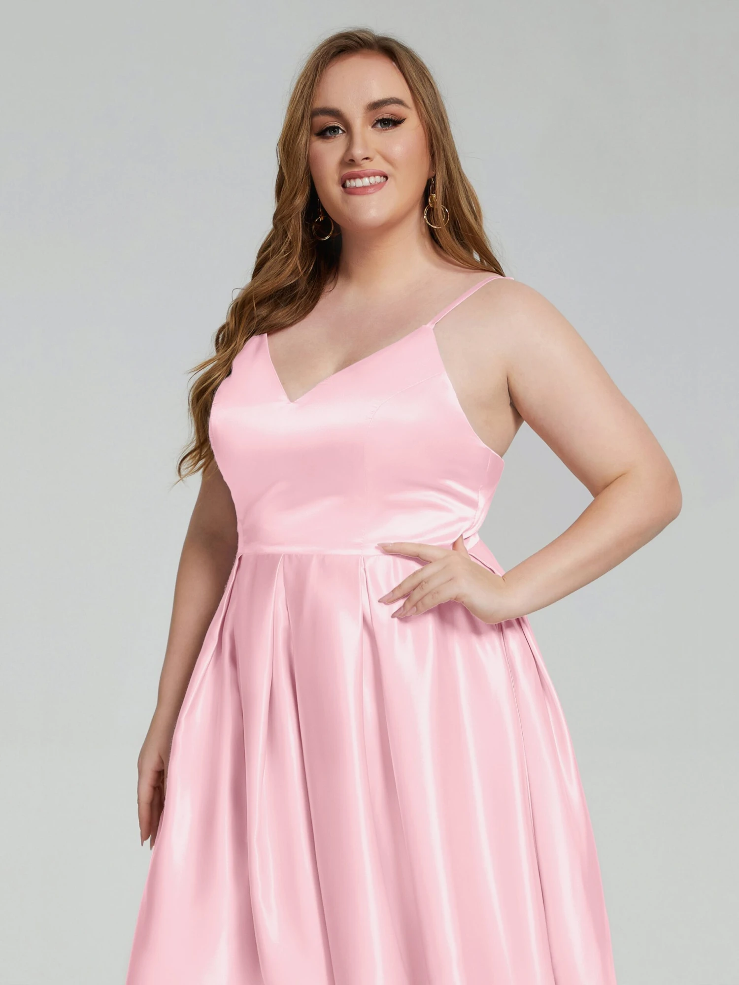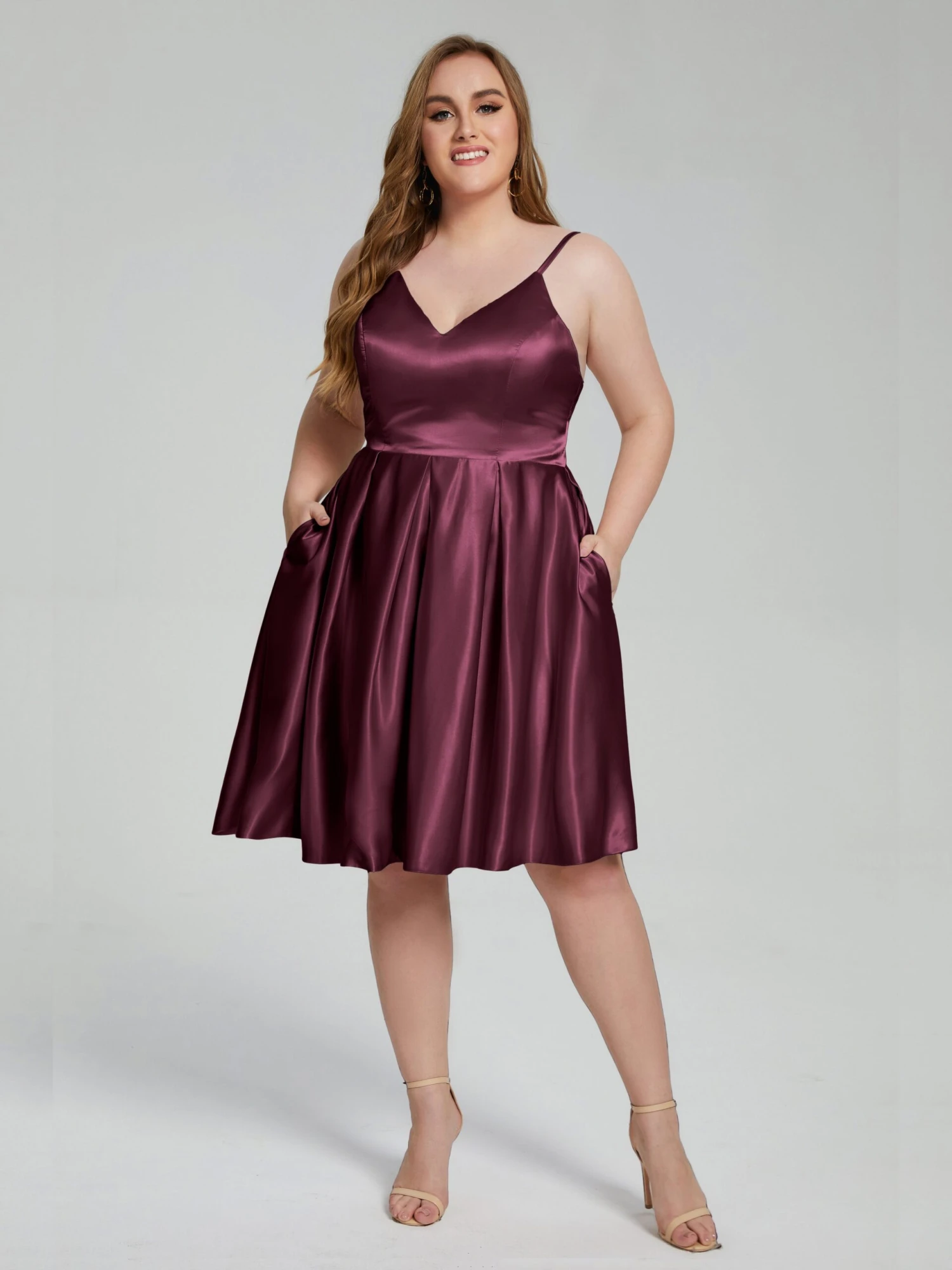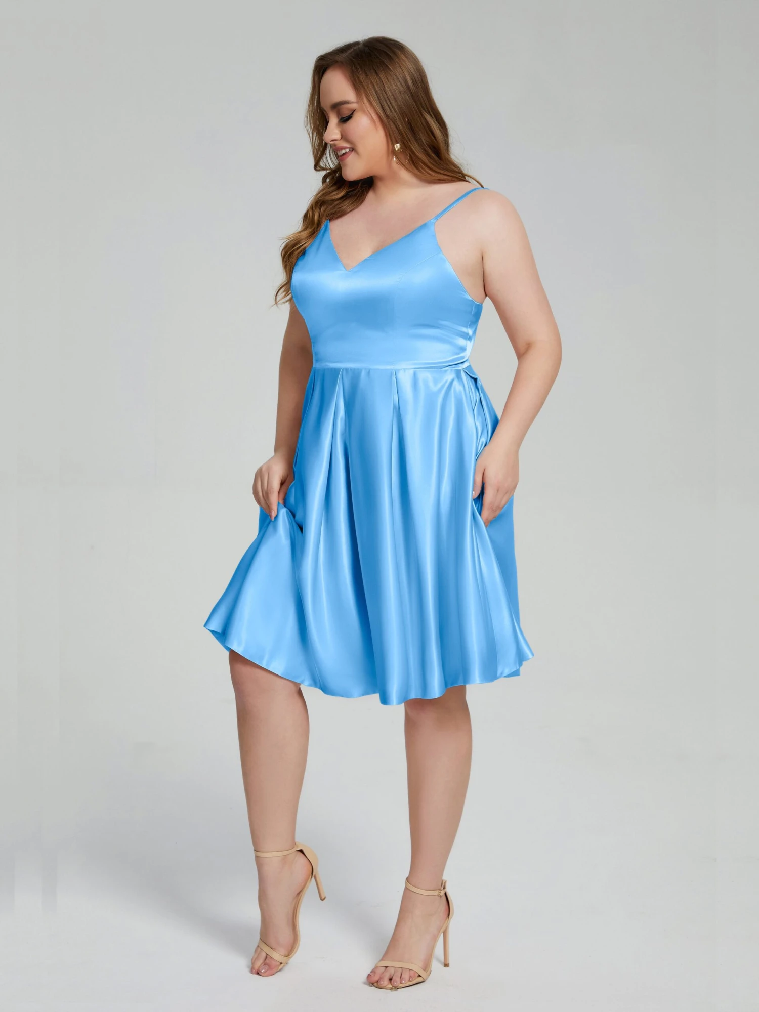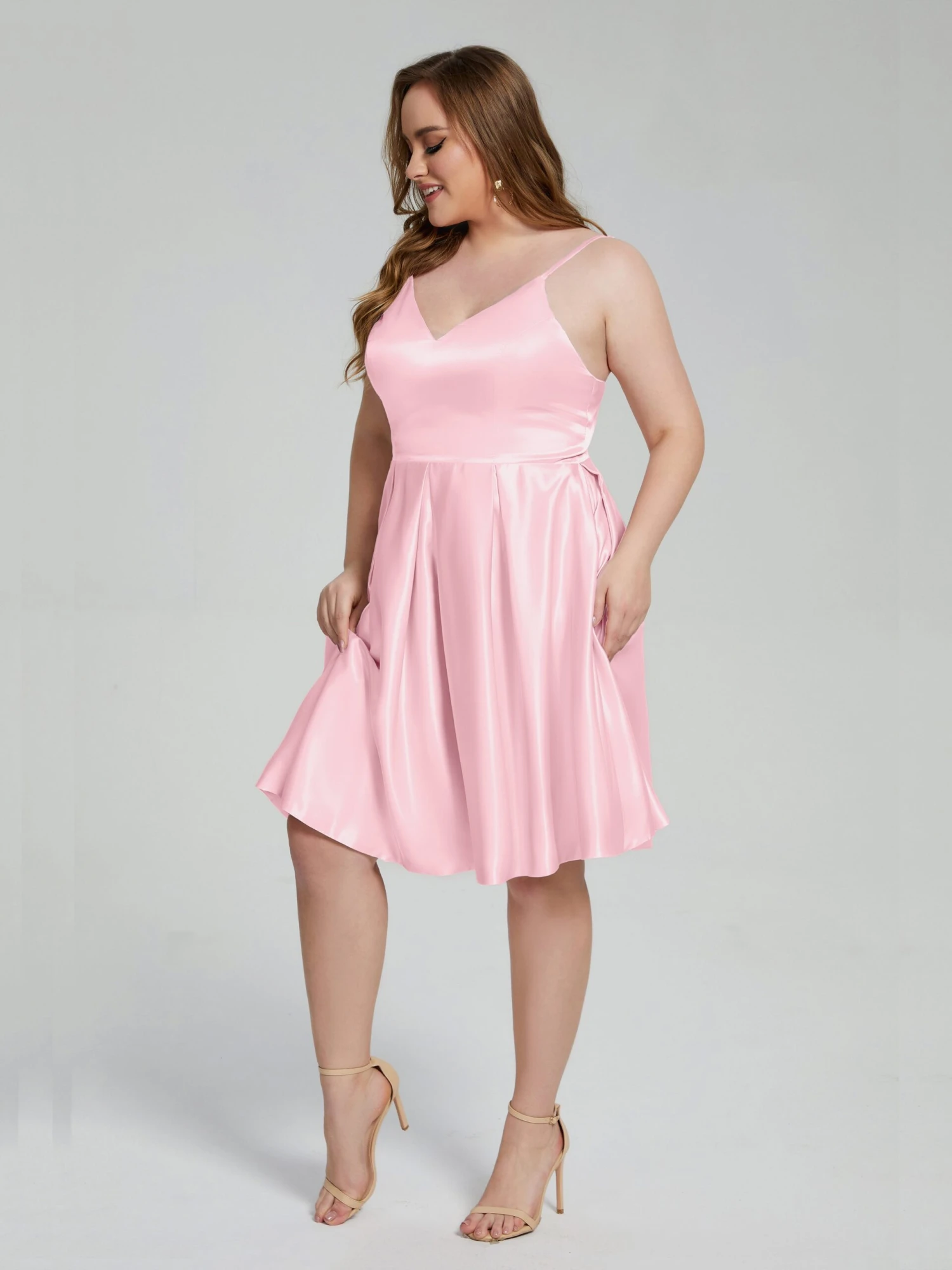 Josie Cute V Neck Short Plus Size Bridesmaid Dresses With Pockets