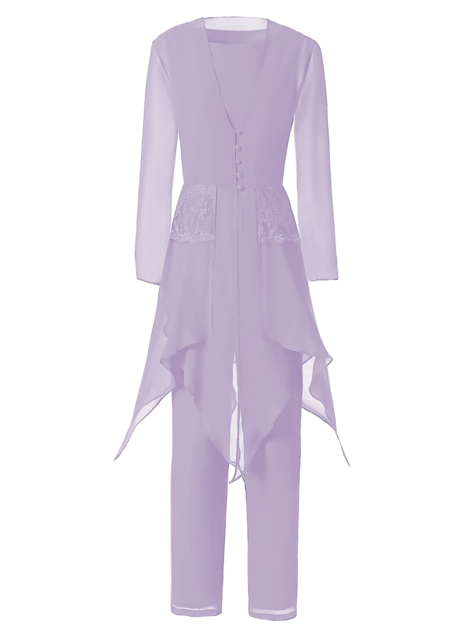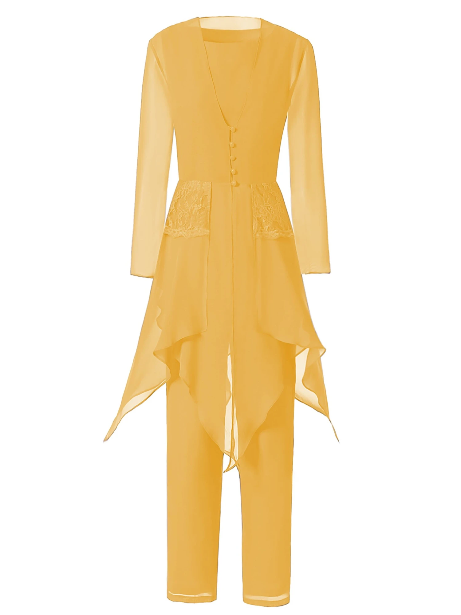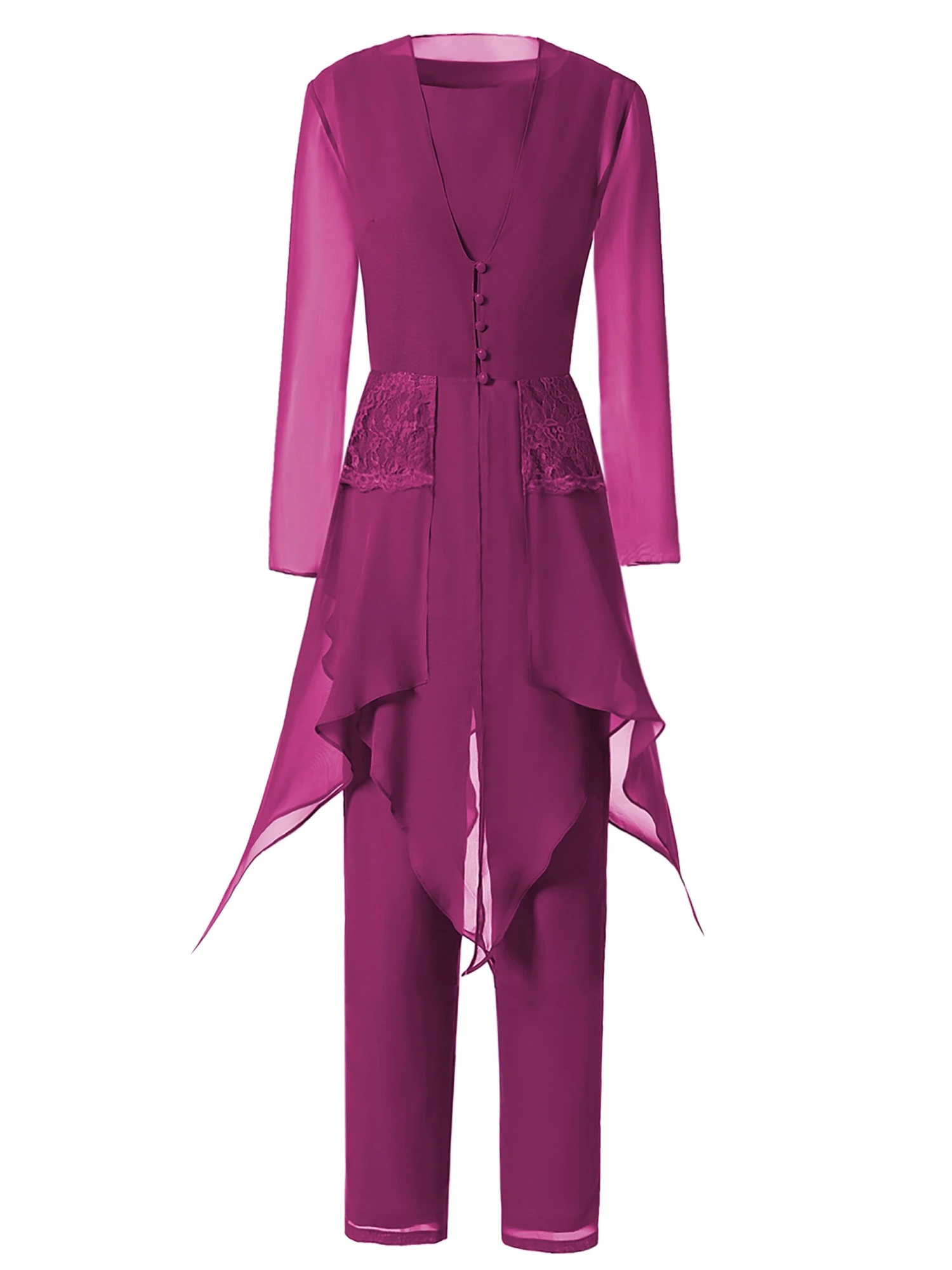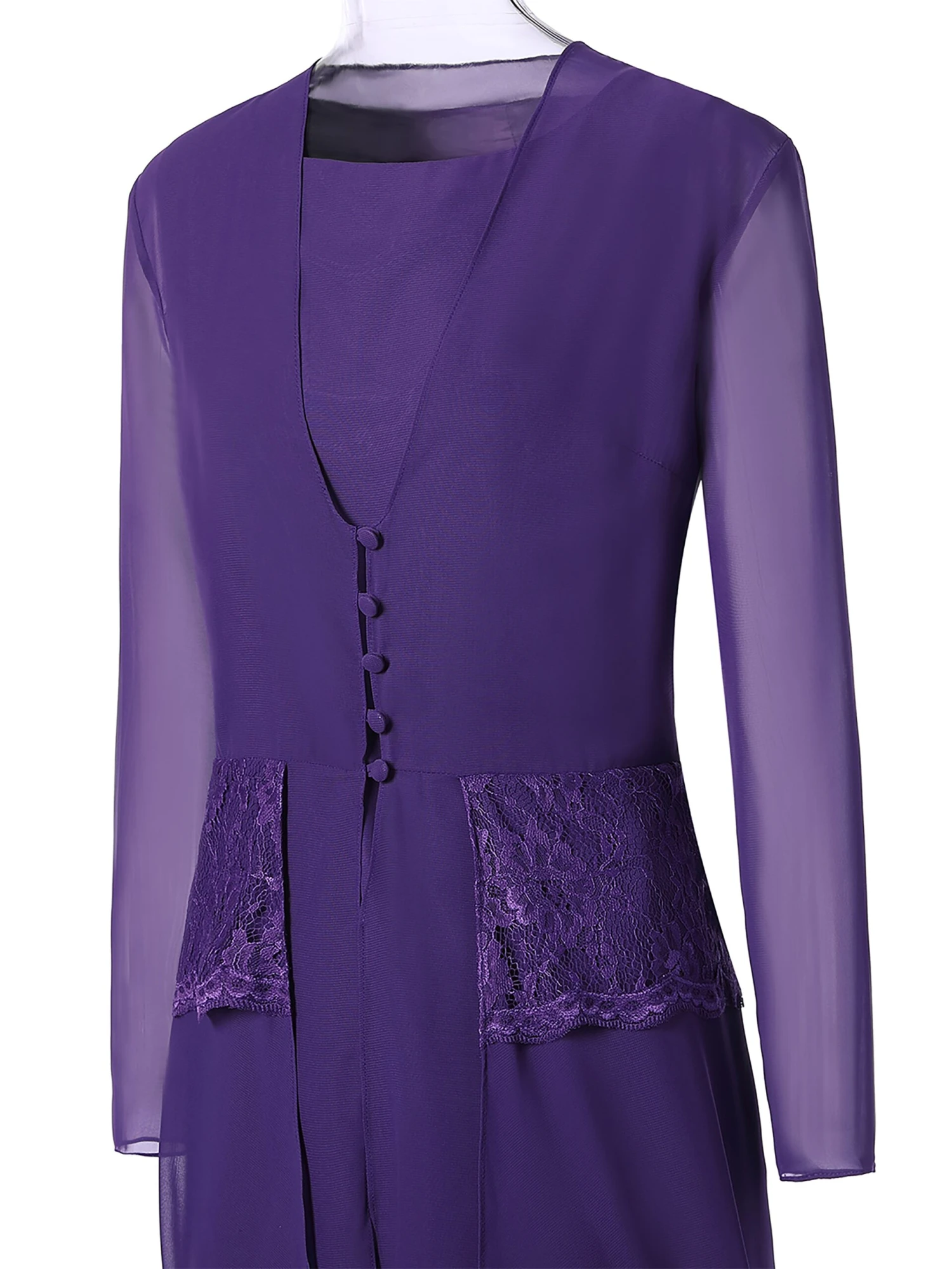 Long Sleeves Chiffon Lace Mother of the Bride Dress Pant Suits