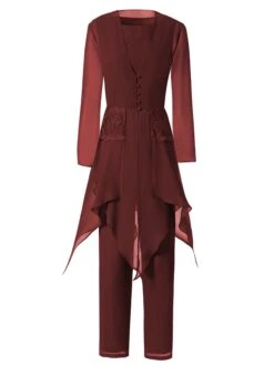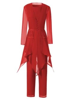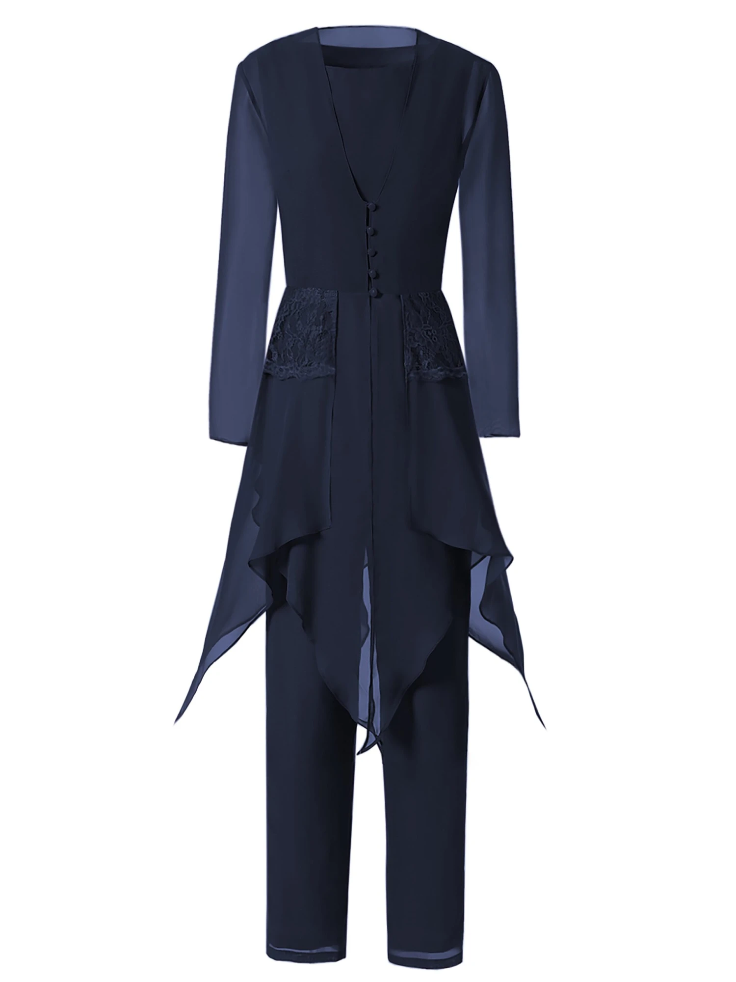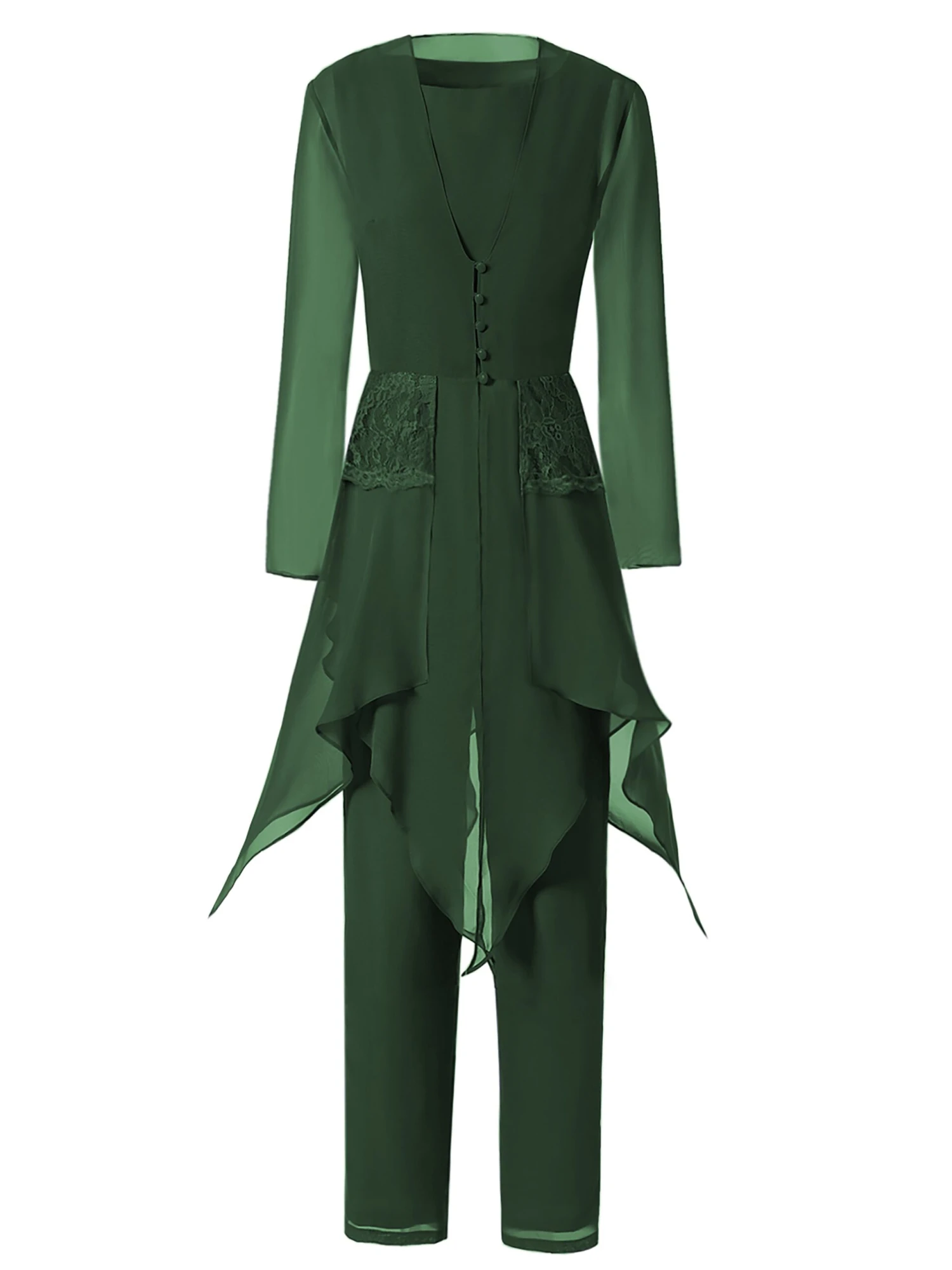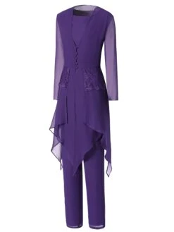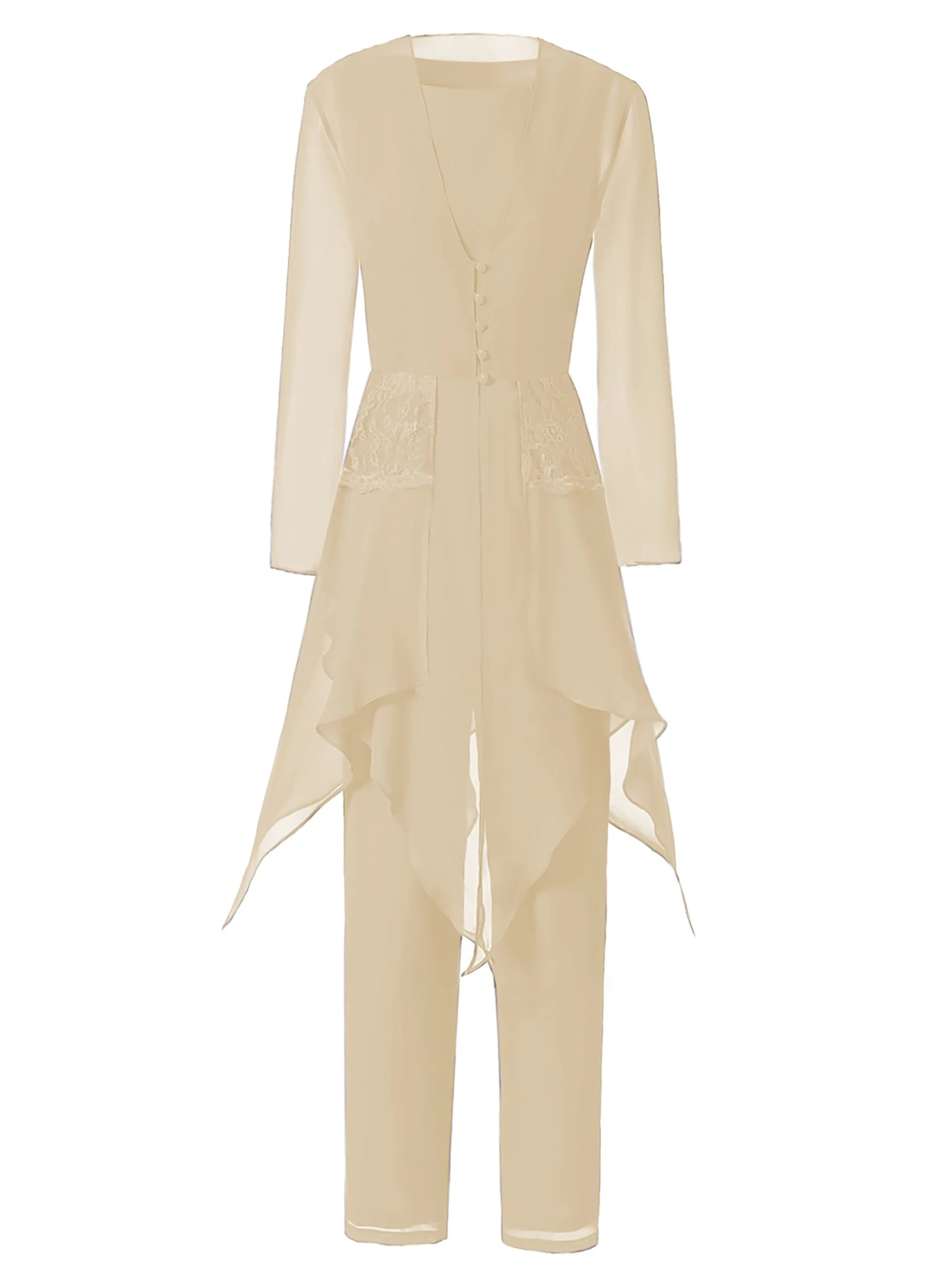 Long Sleeves Chiffon Lace Mother of the Bride Dress Pant Suits