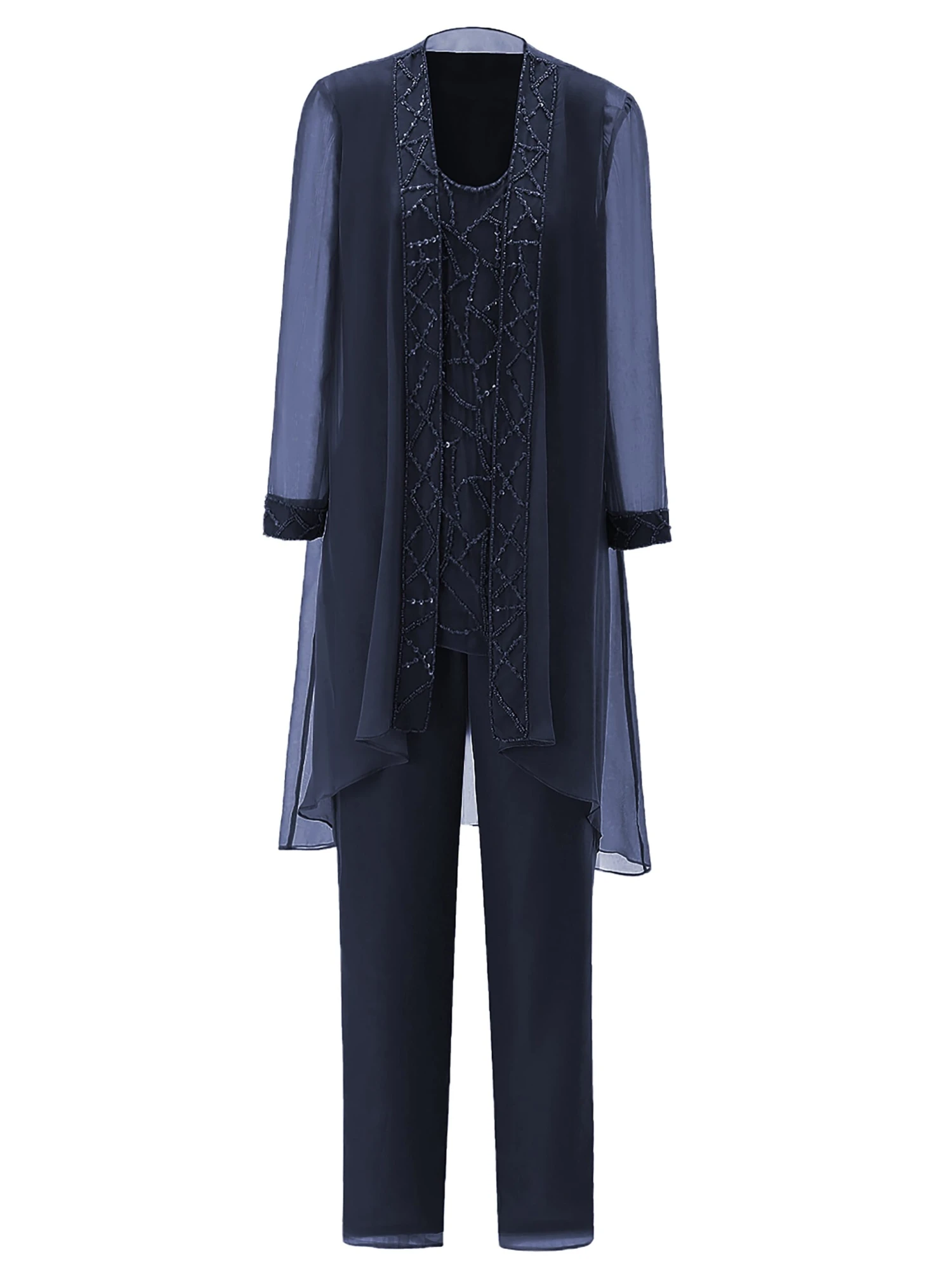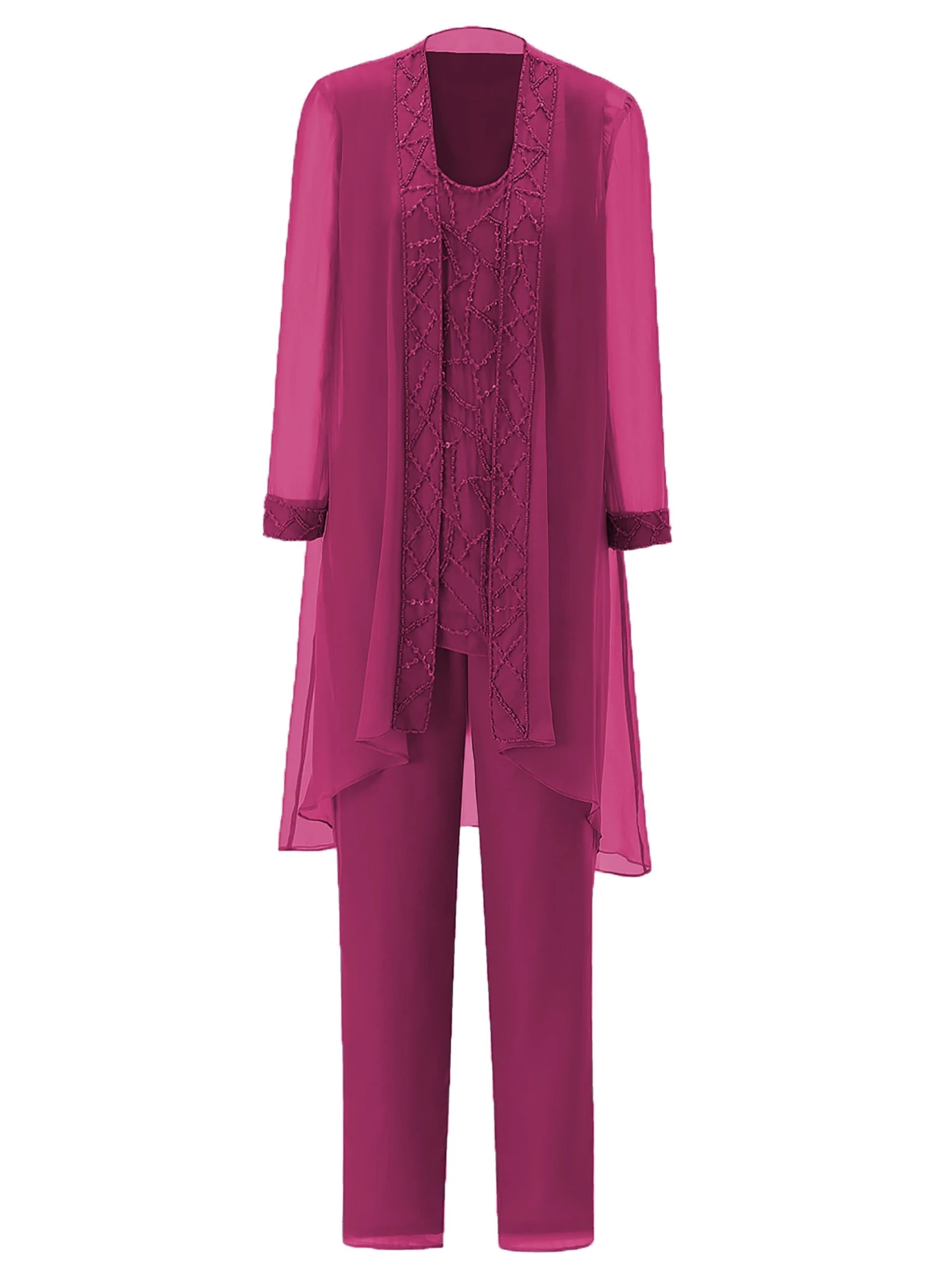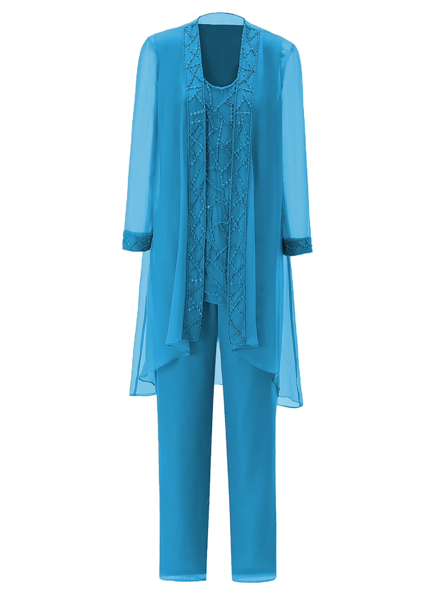 Long Sleeves Chiffon Mother of the Bride Dress Pant Suits