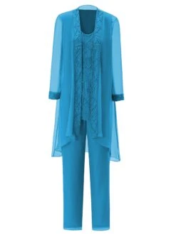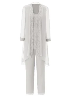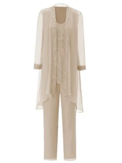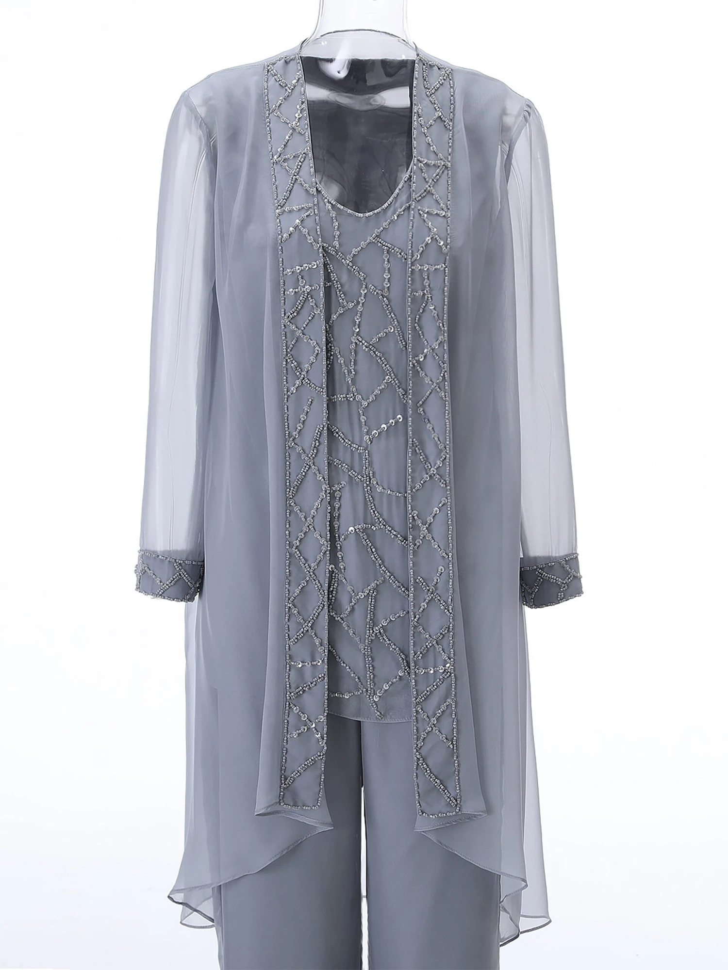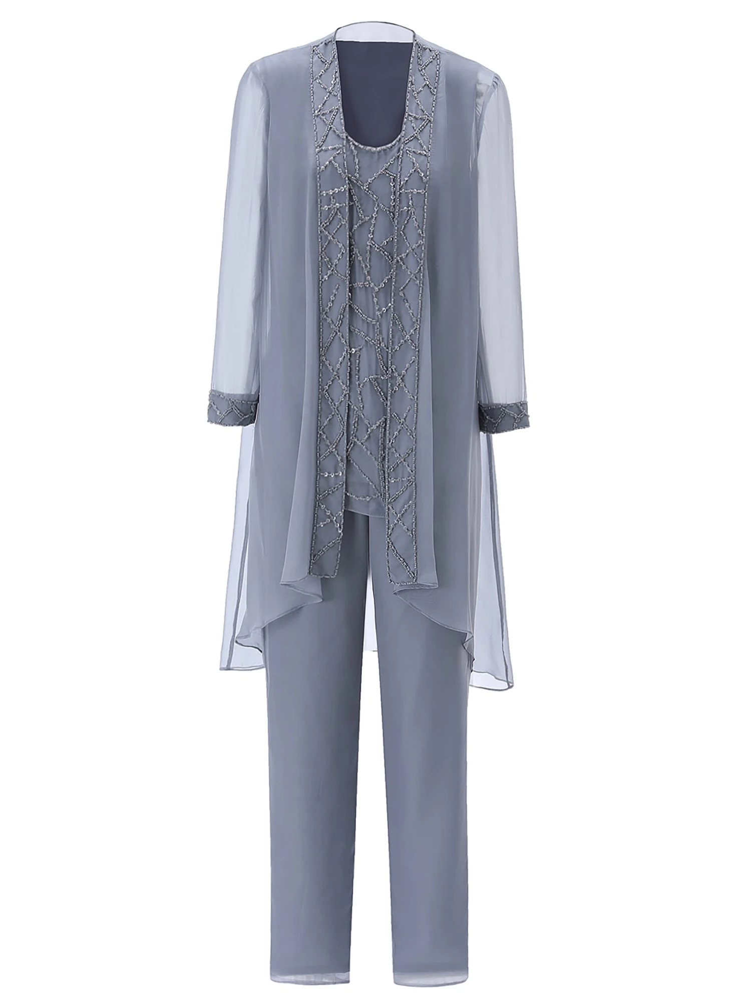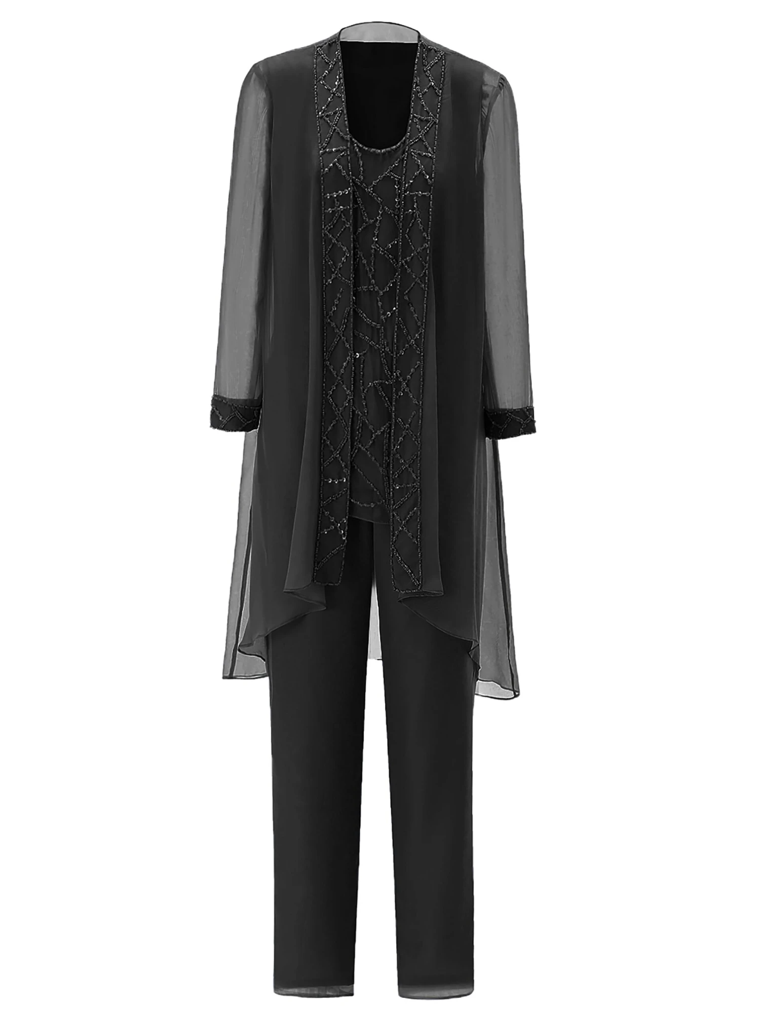 Long Sleeves Chiffon Mother of the Bride Dress Pant Suits