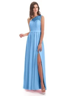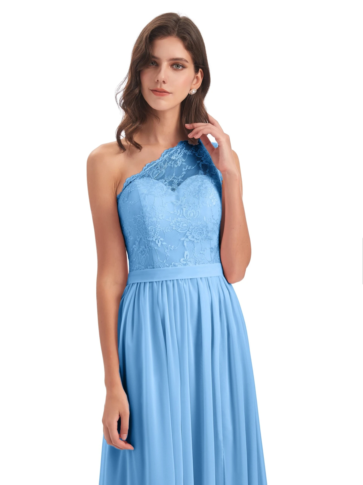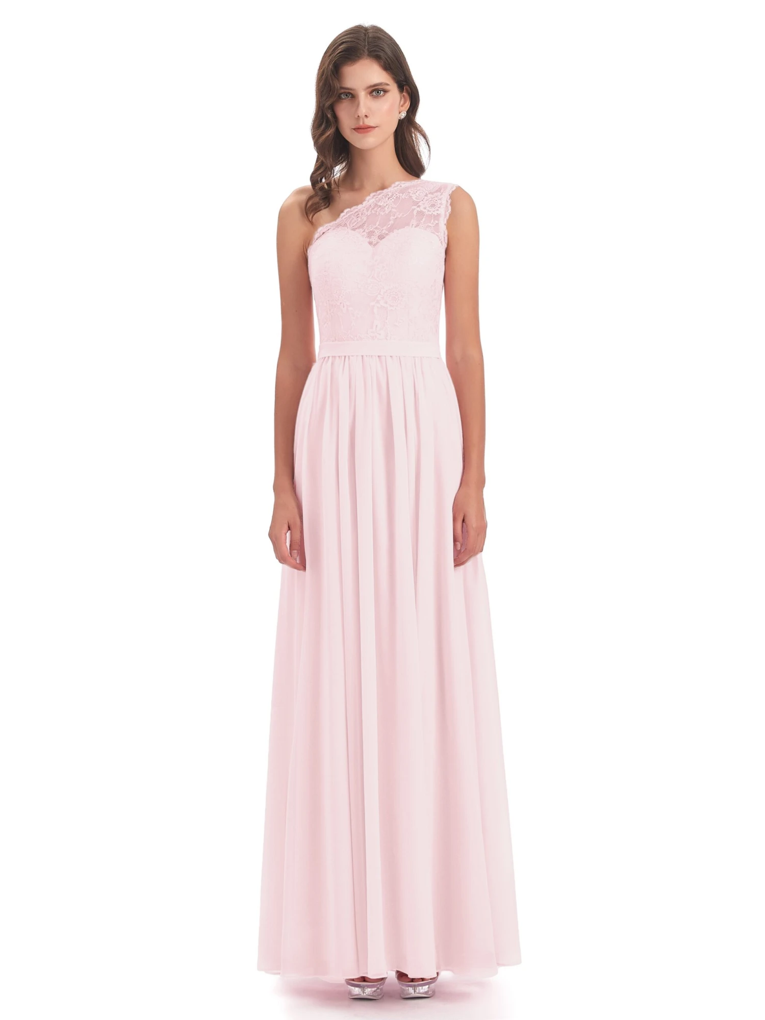 Lyra A-line One Shoulder Long Bridesmaid Dresses