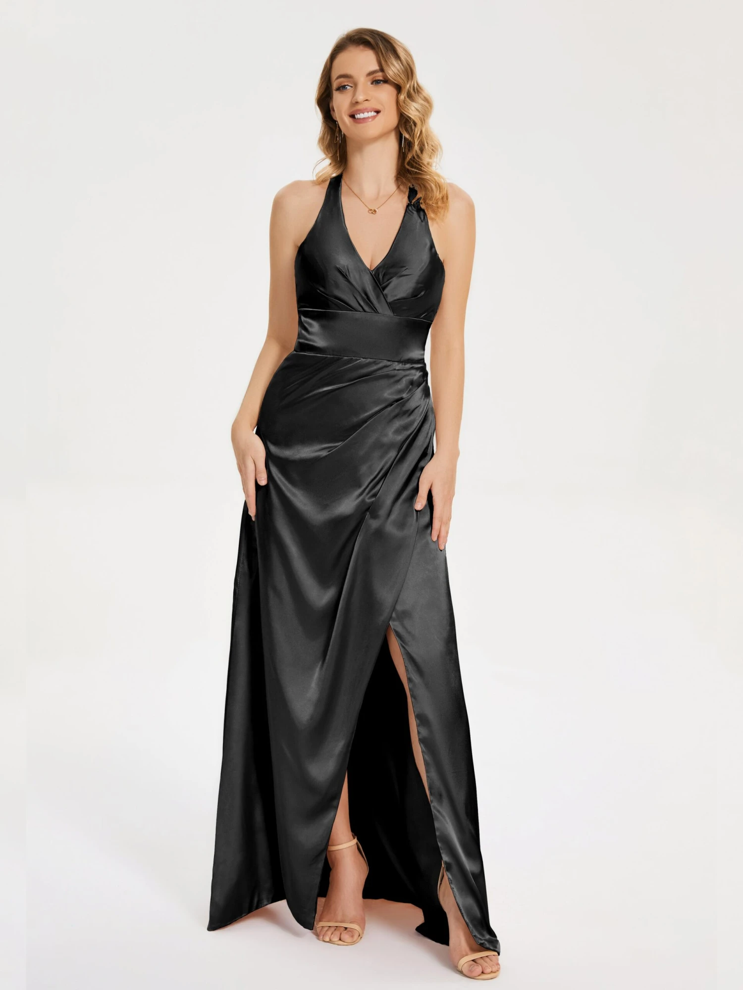 Be the first to review “Mariana Ruched Split Soft Satin Dresses” Cancel reply