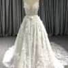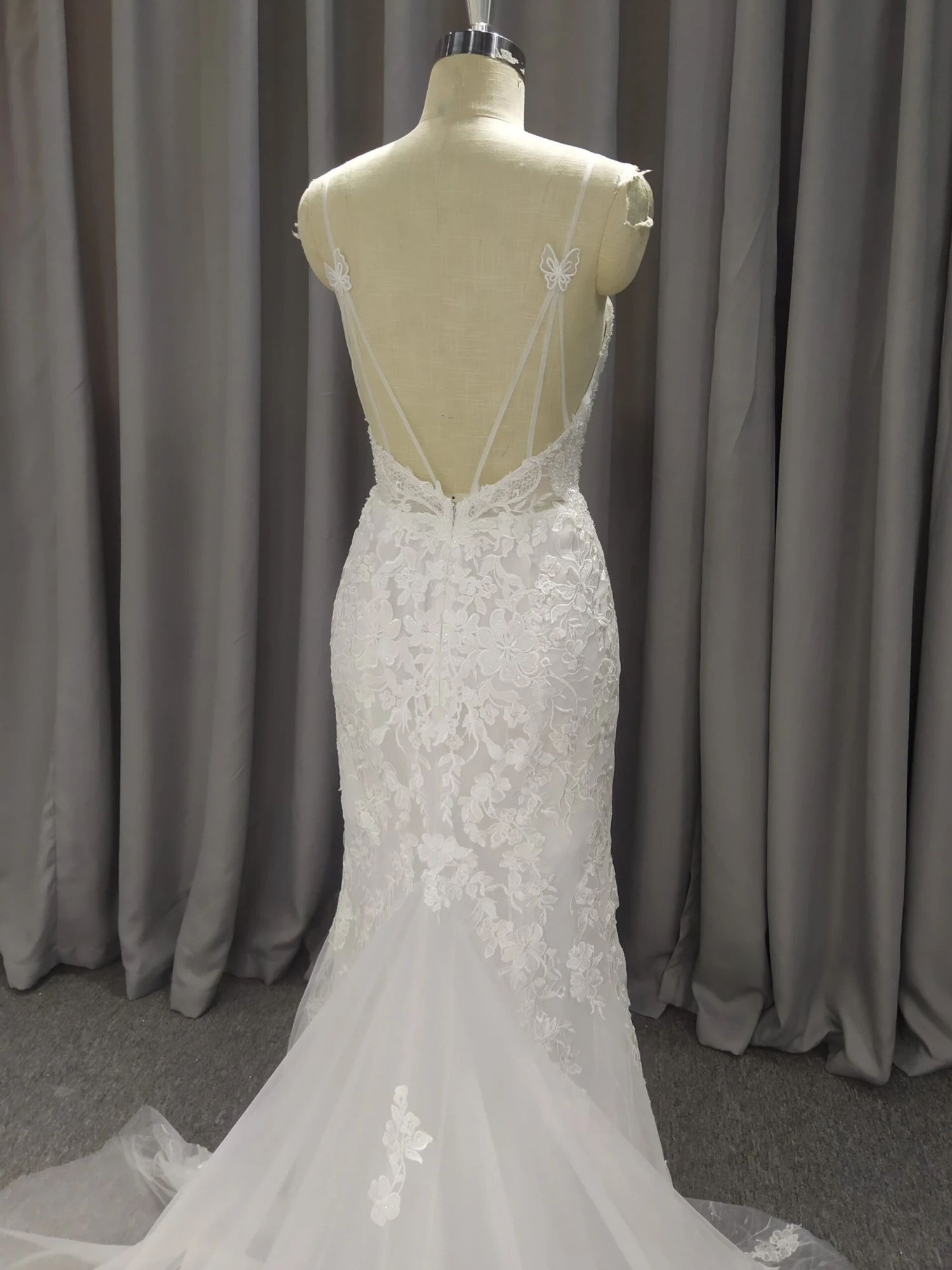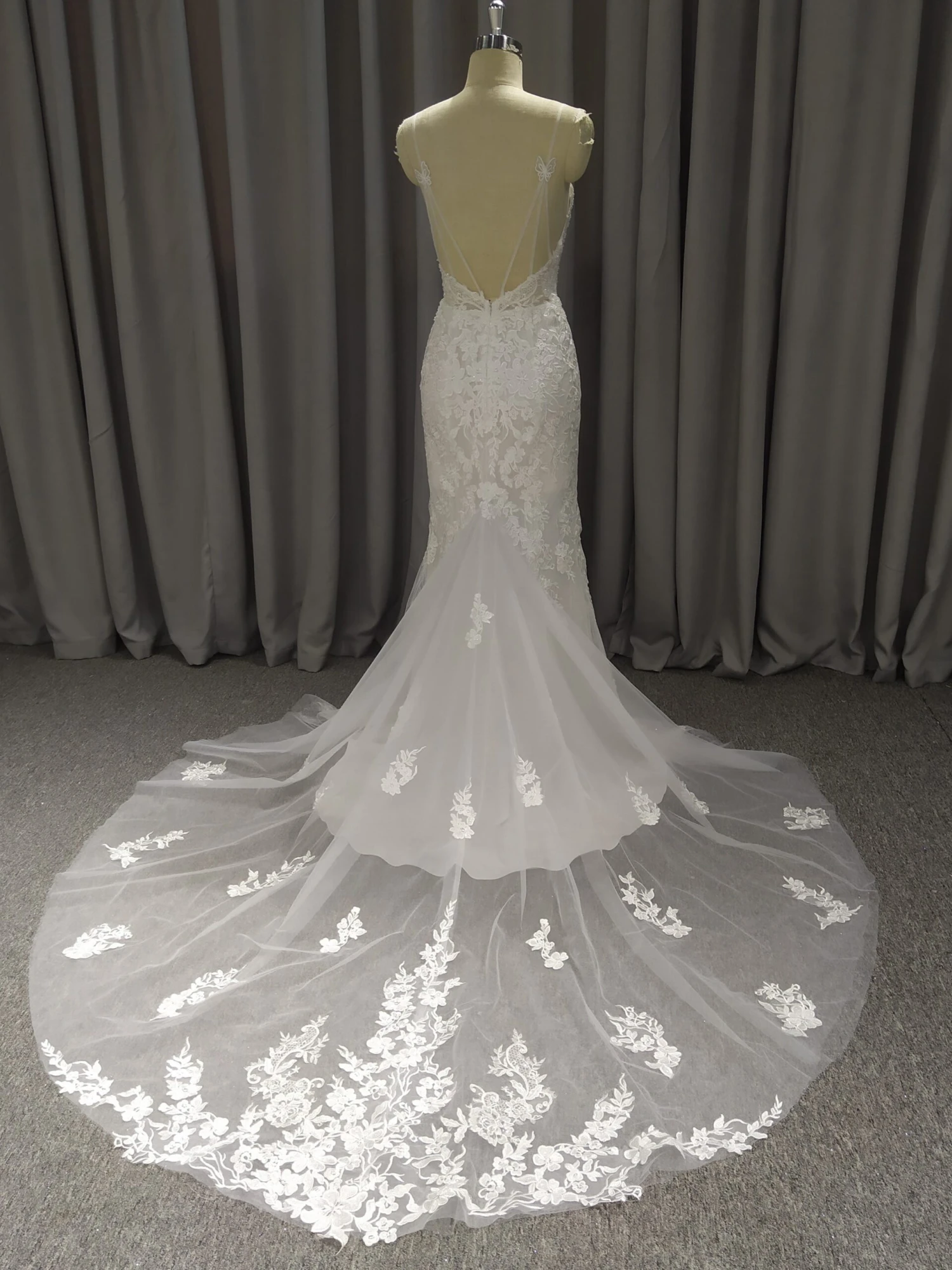 Trumpet/Mermaid V-neck Sweep Train Lace Wedding Dresses With Sequin
