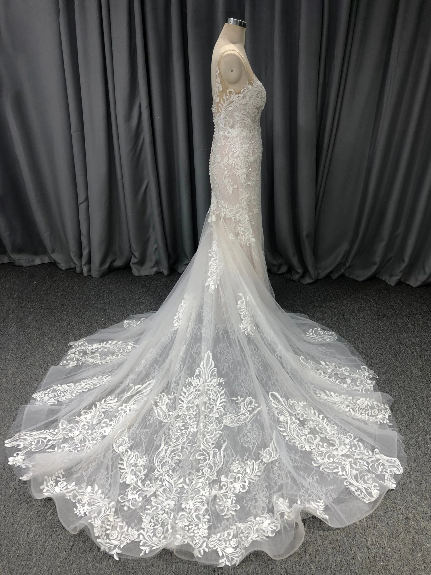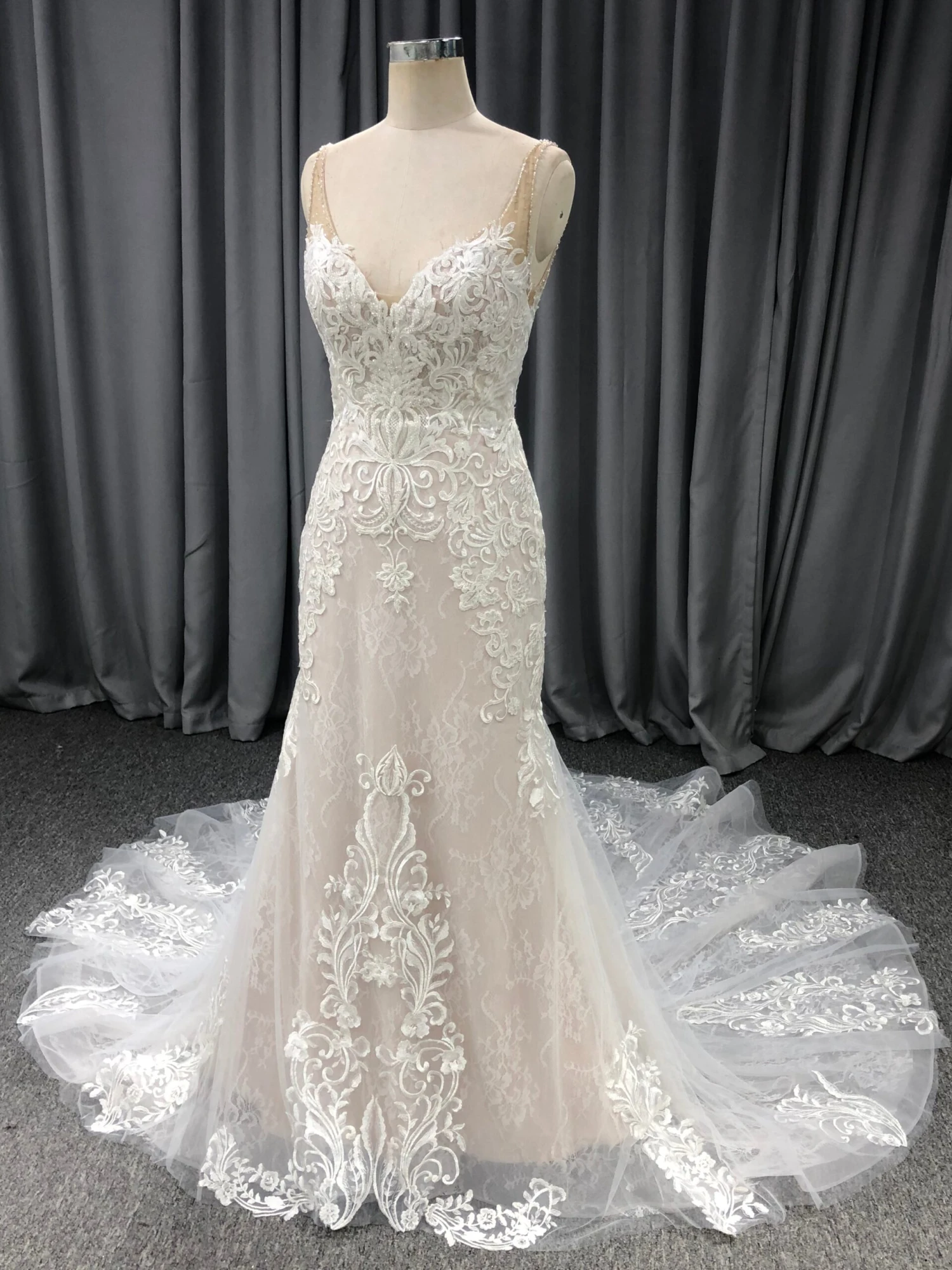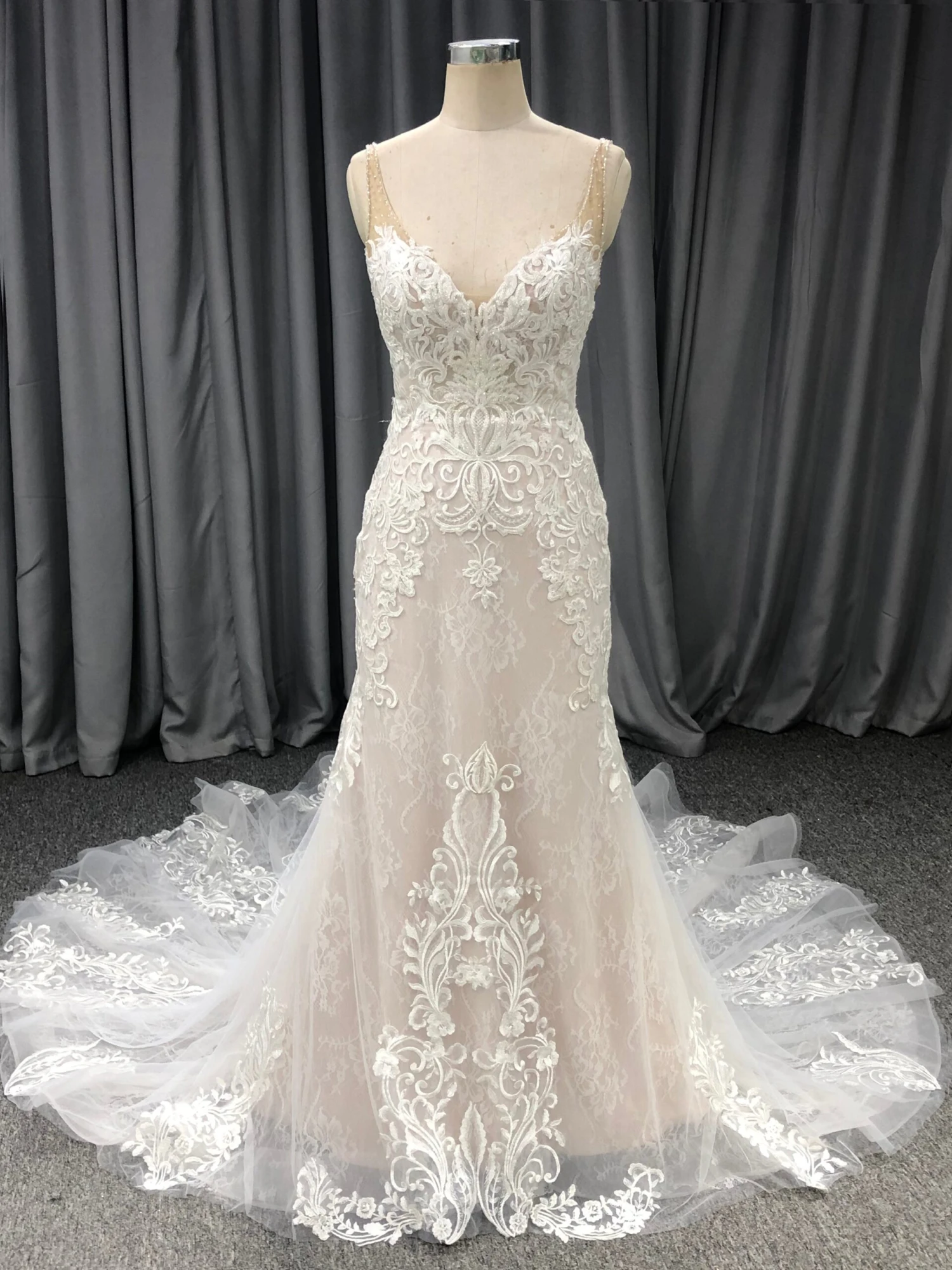 Trumpet/Mermaid V-neck Sweep Train Lace Wedding Dresses With Sequin