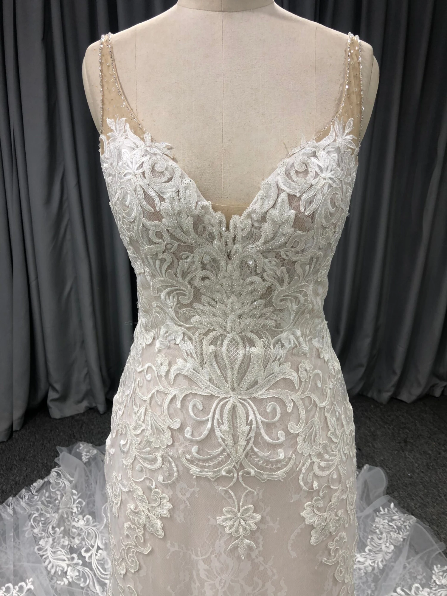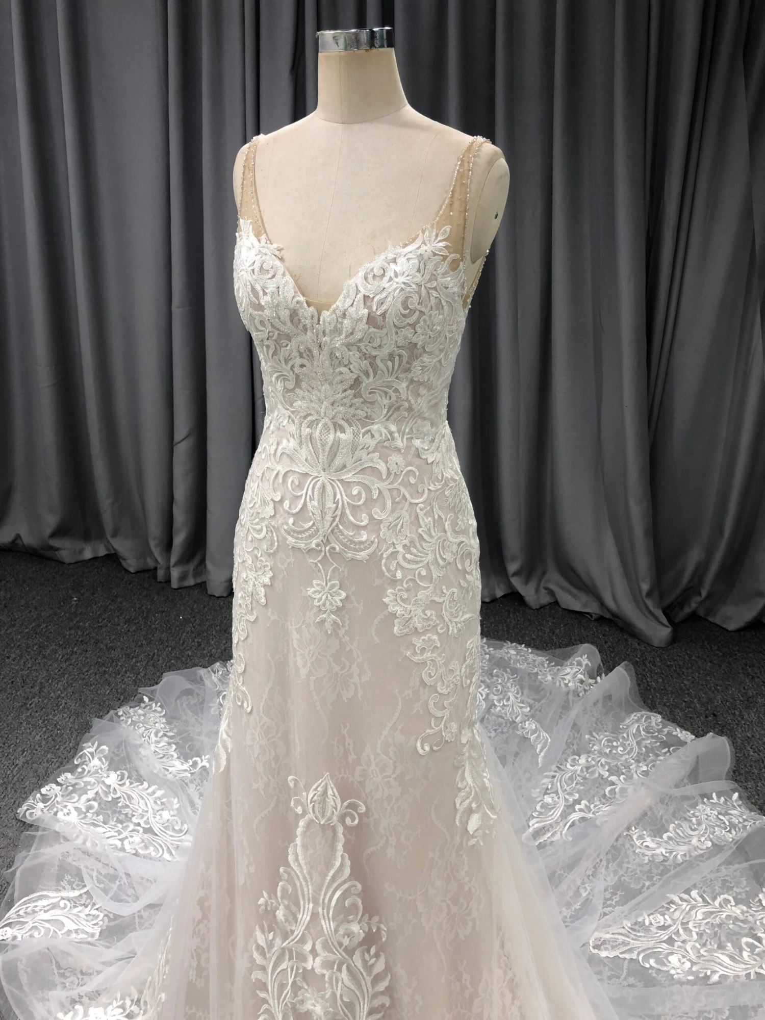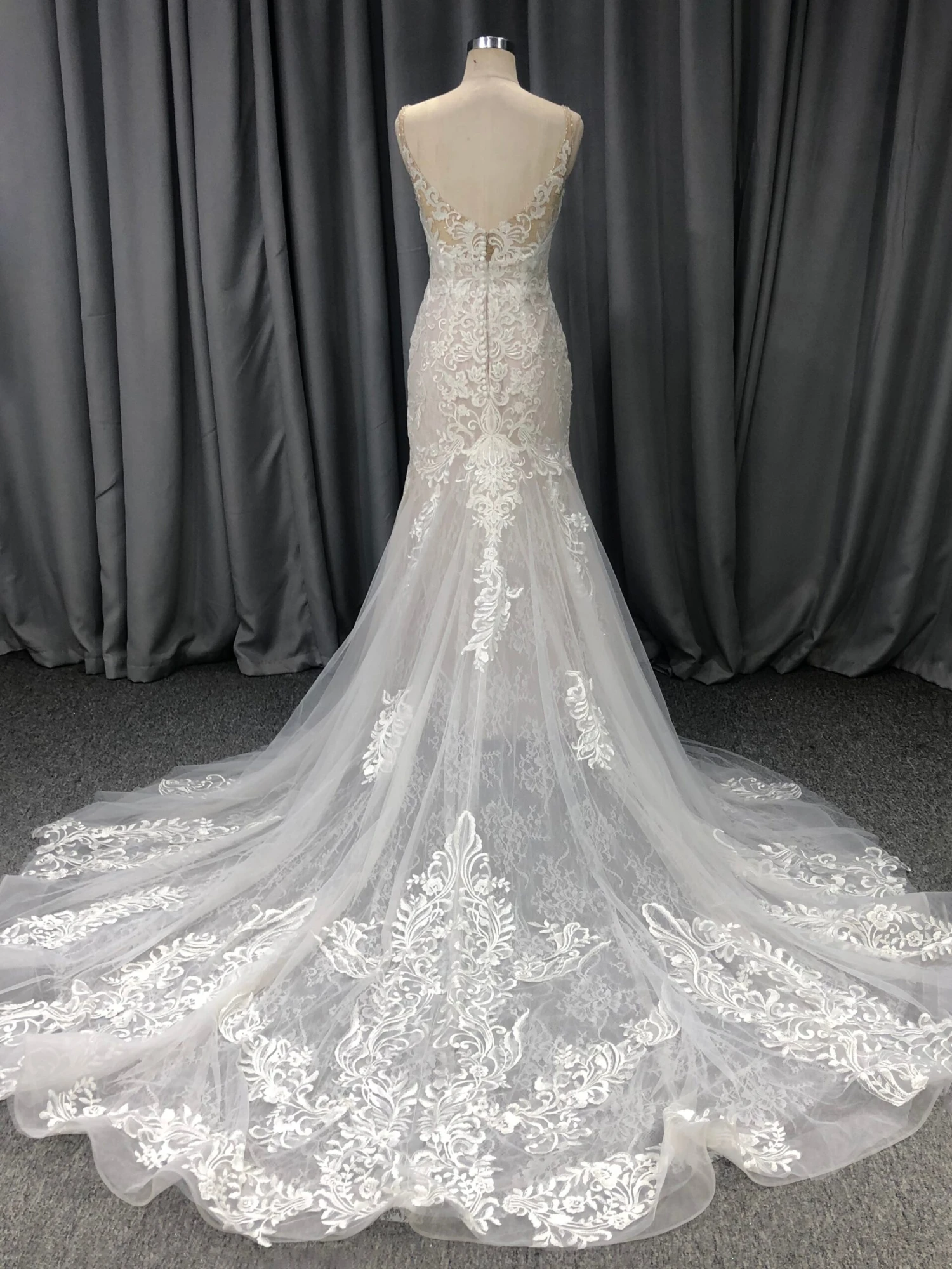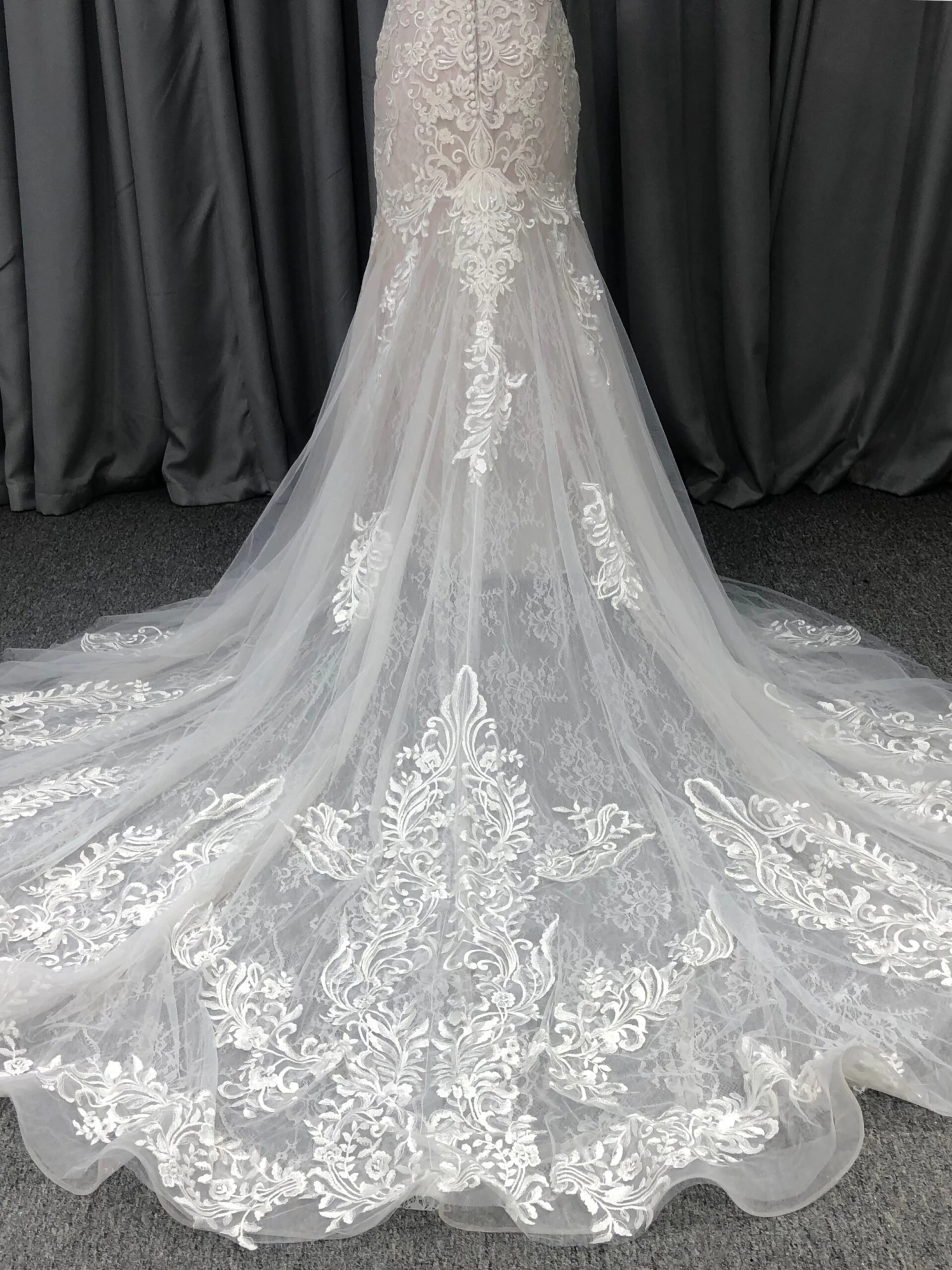 Trumpet/Mermaid V-neck Sweep Train Lace Wedding Dresses With Sequin