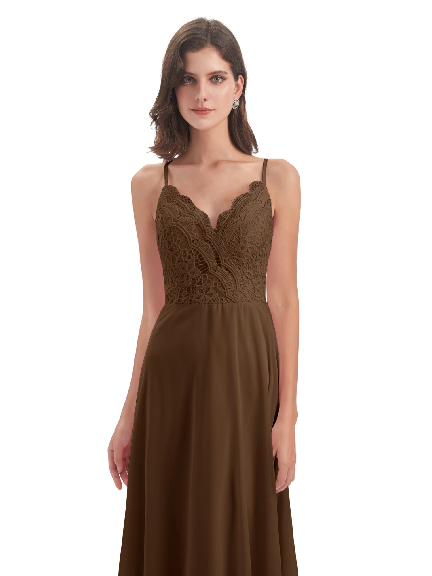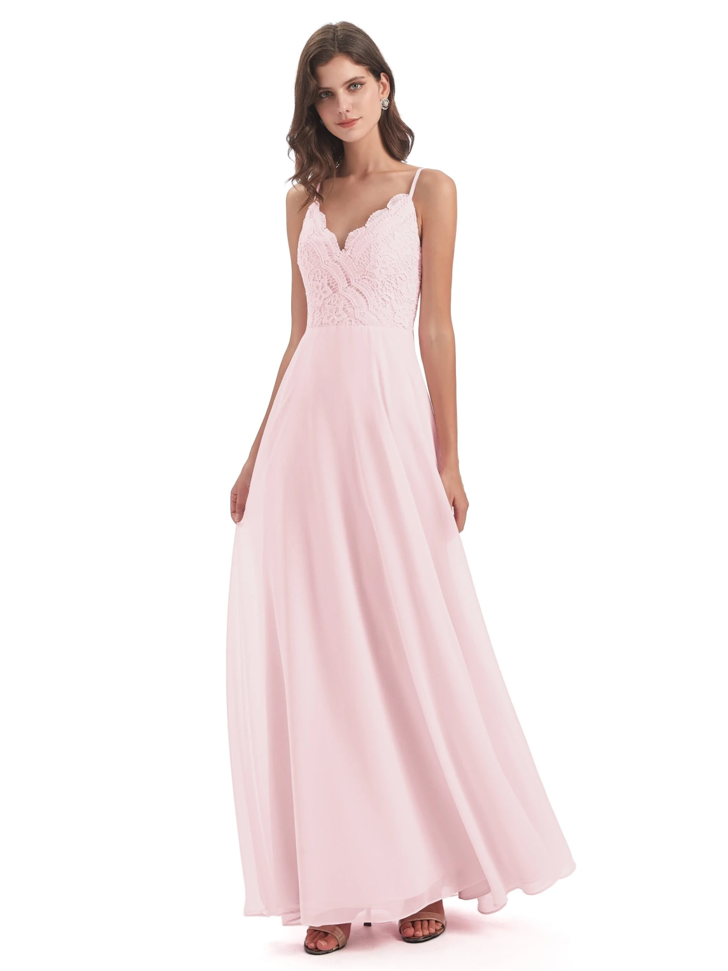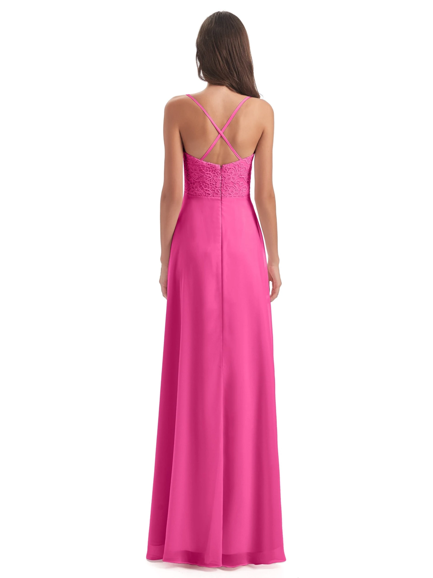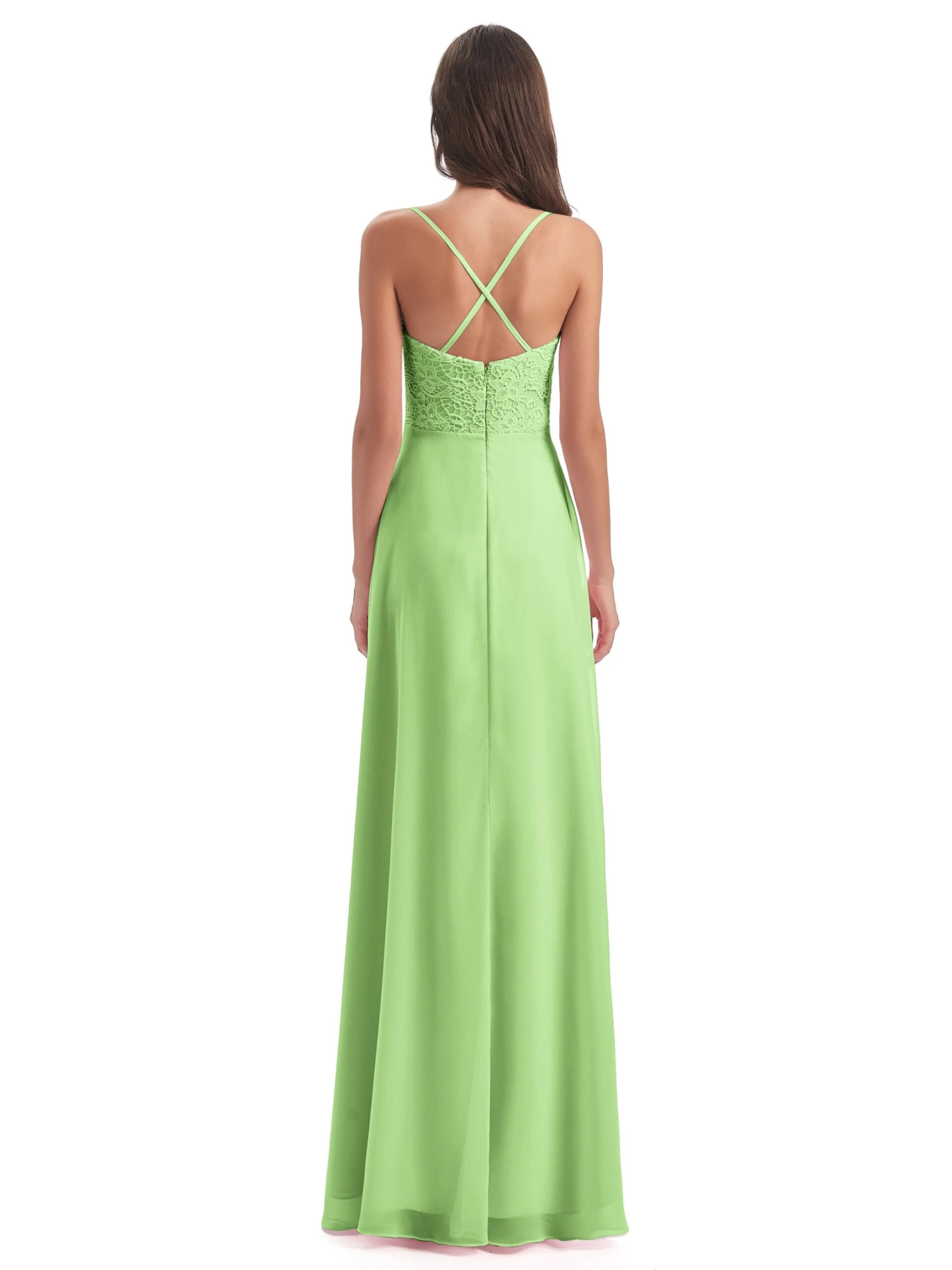 Mia Lace/Chiffon Sheath-Column Long Bridesmaid Dresses