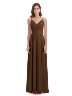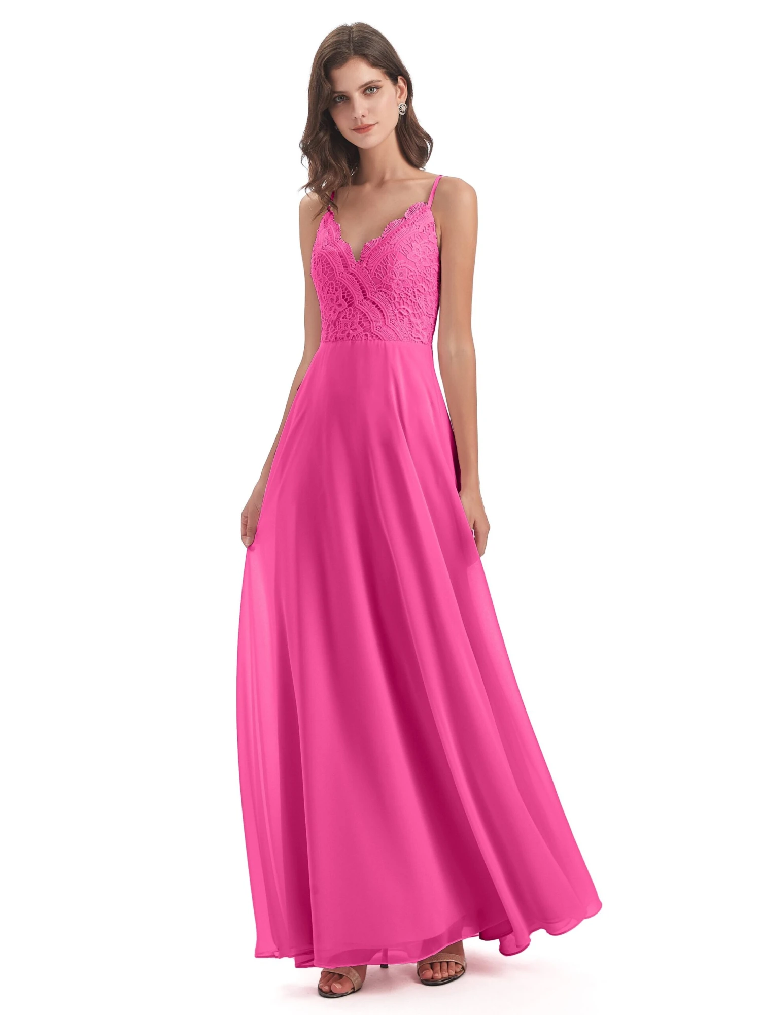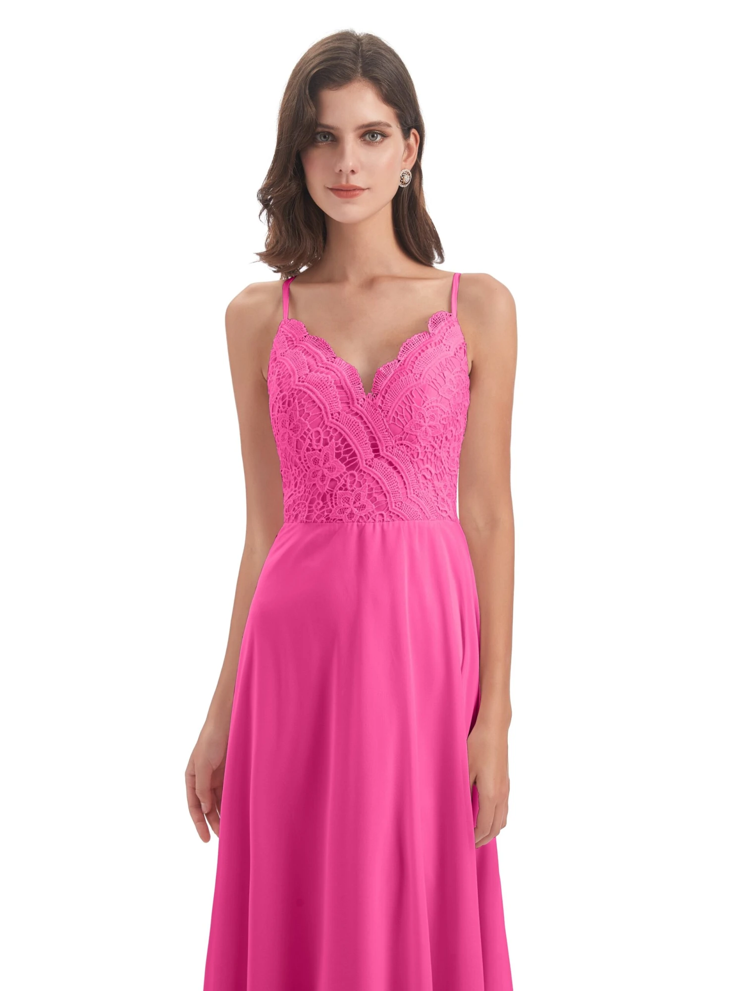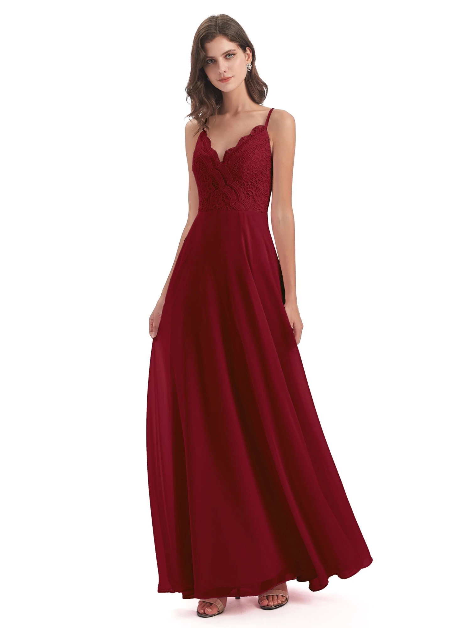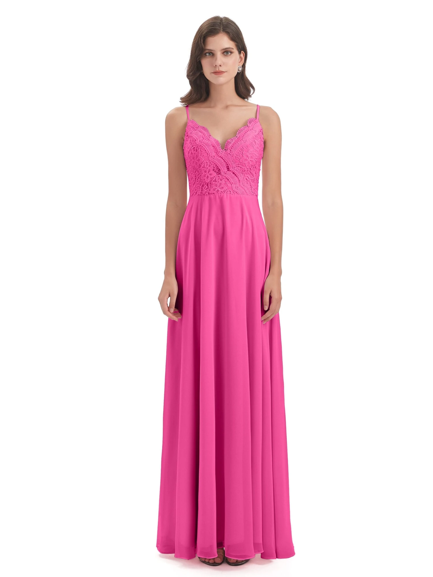 Mia Lace/Chiffon Sheath-Column Long Bridesmaid Dresses