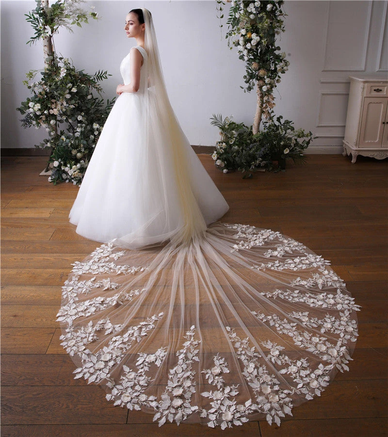New Handmade Three-dimensional Petals One-Tier Wedding Veil UK TS91X61