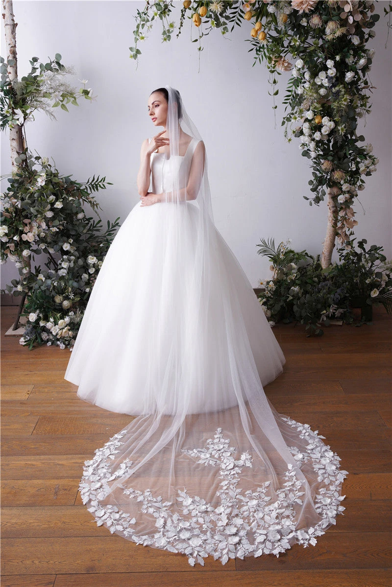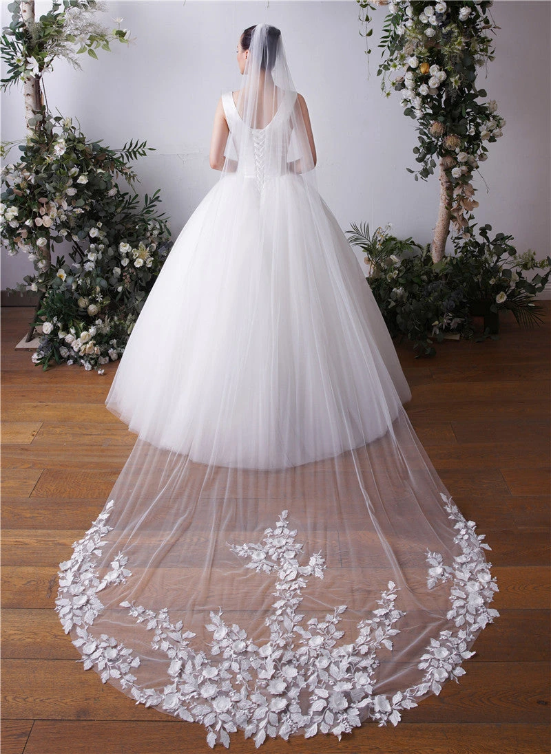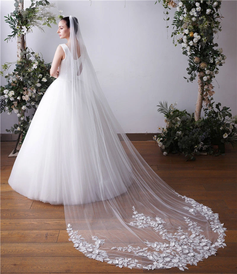 New One-Tier Three-dimensional 3 meters long chapel veil UK TS91X44