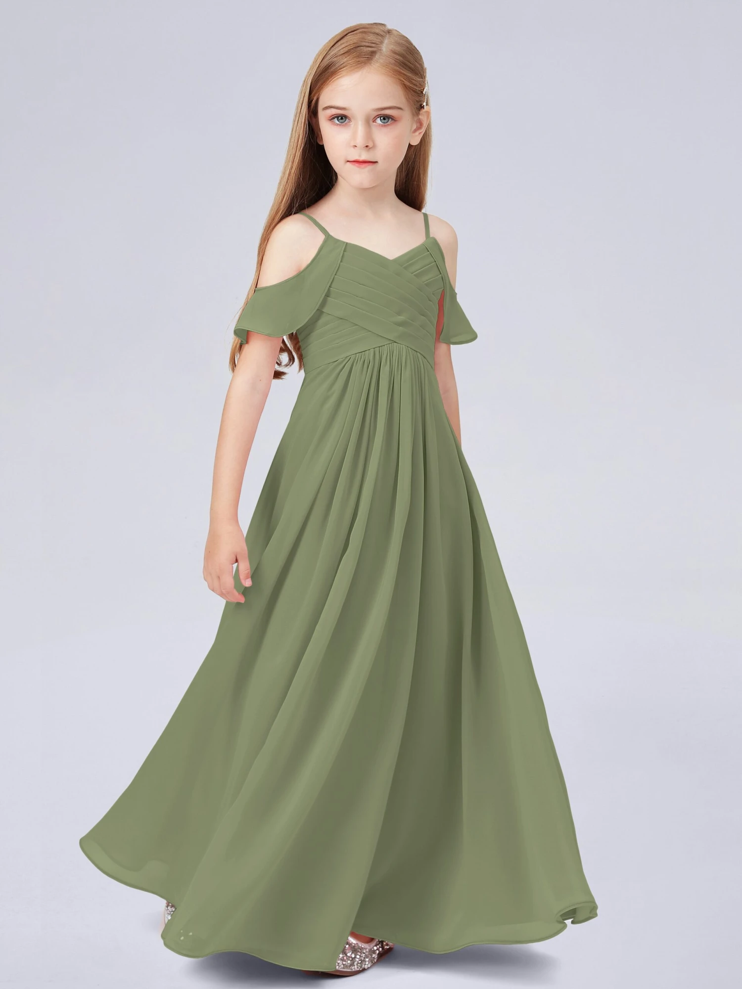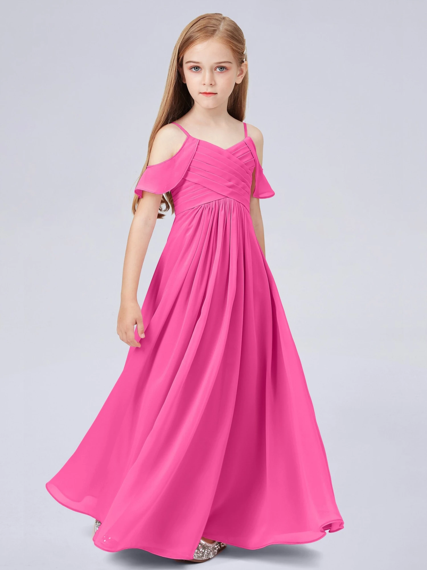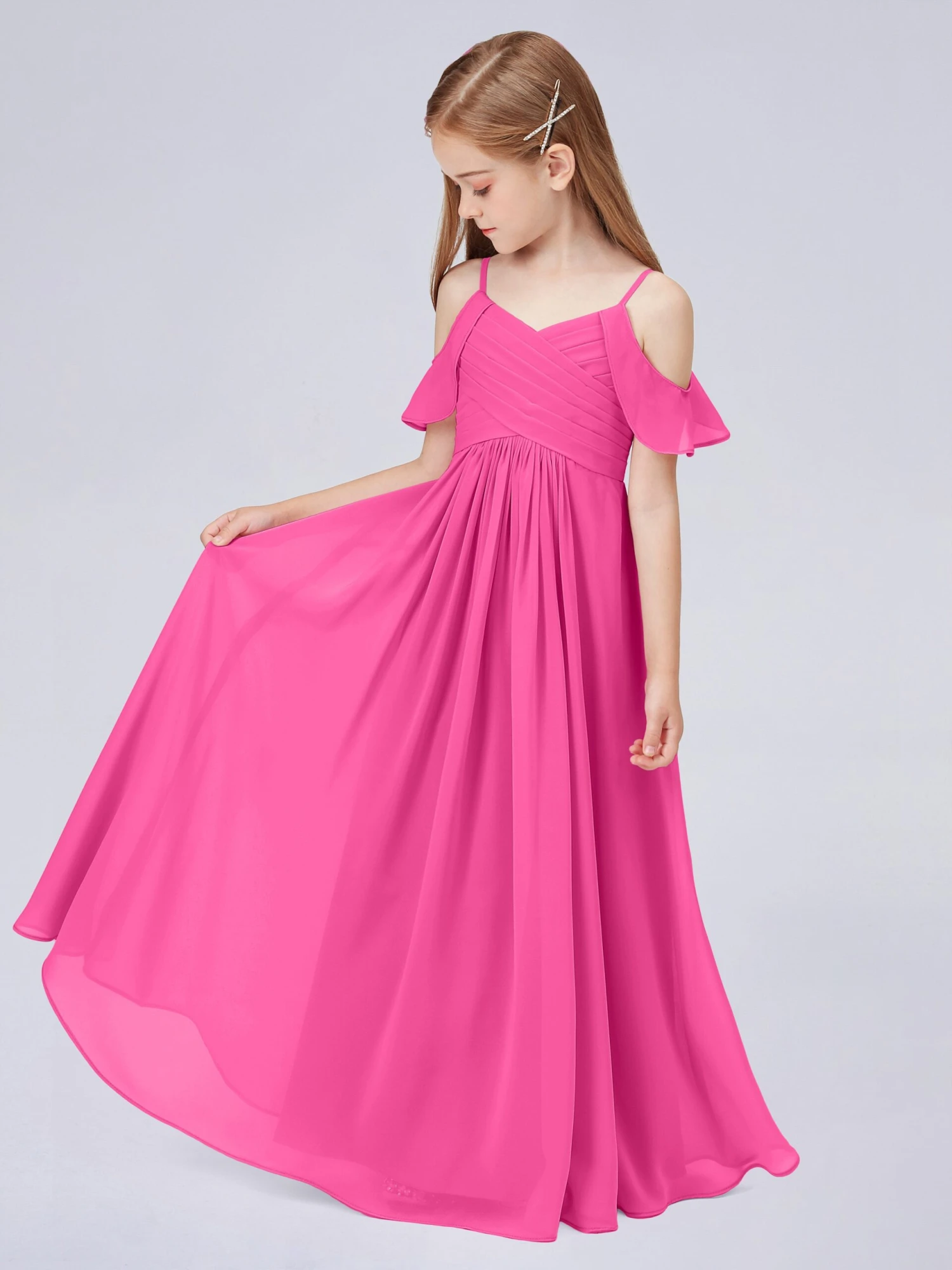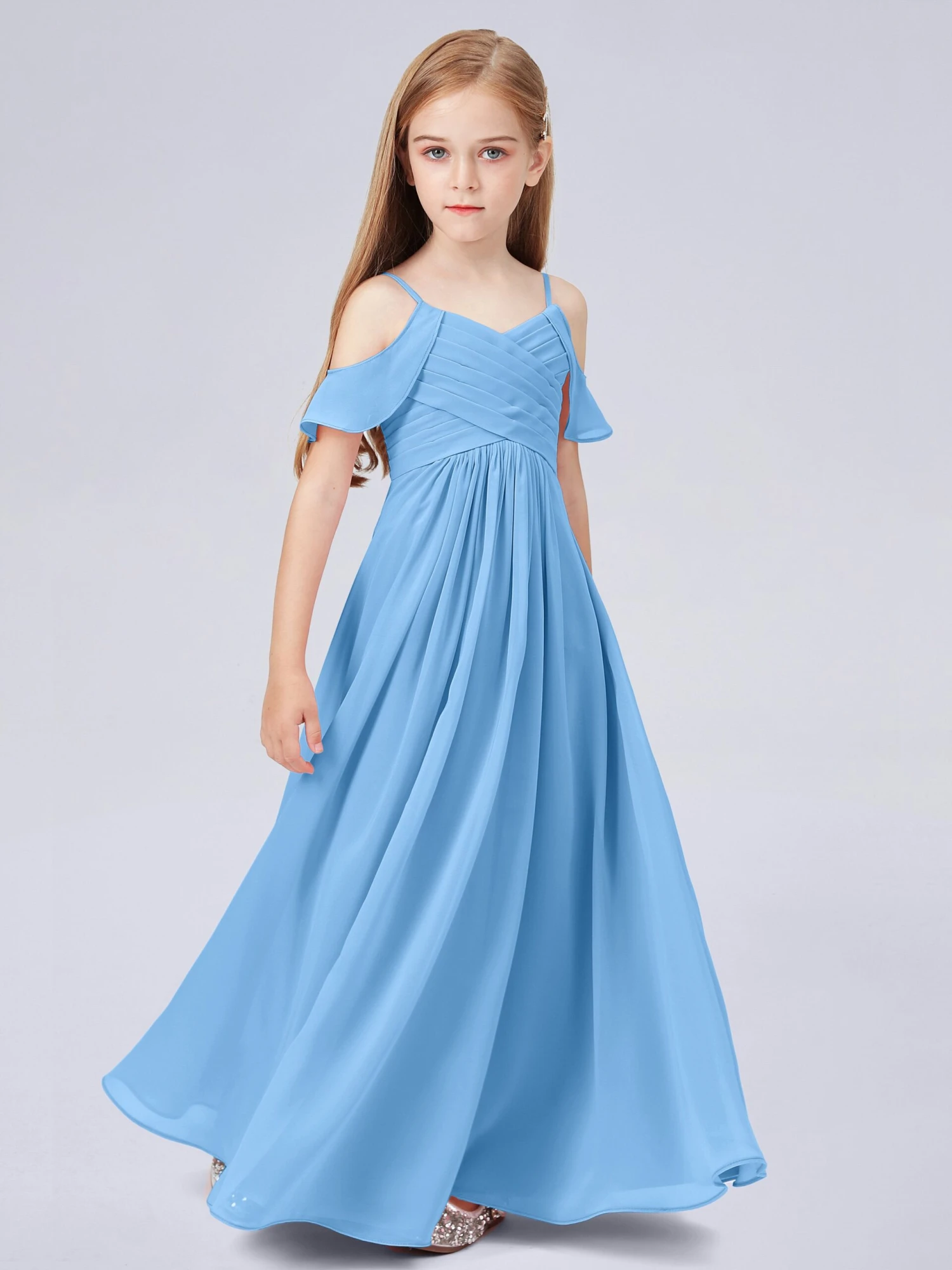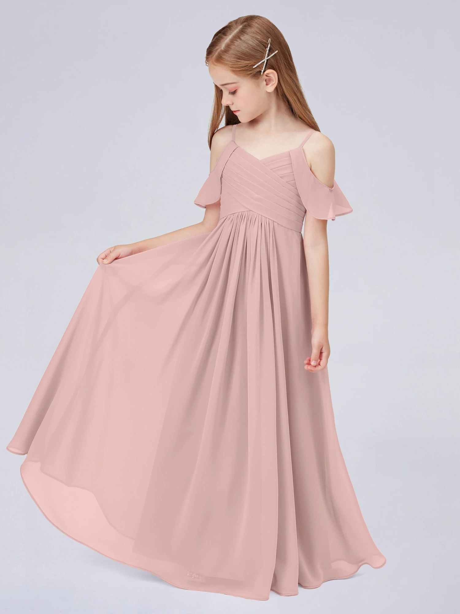 Off Shoulder Chiffon Junior Bridesmaid Dress