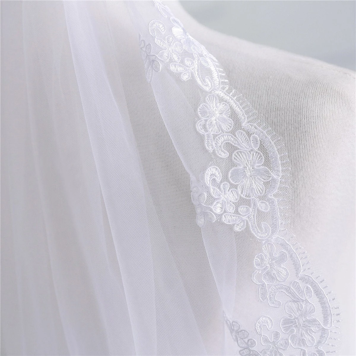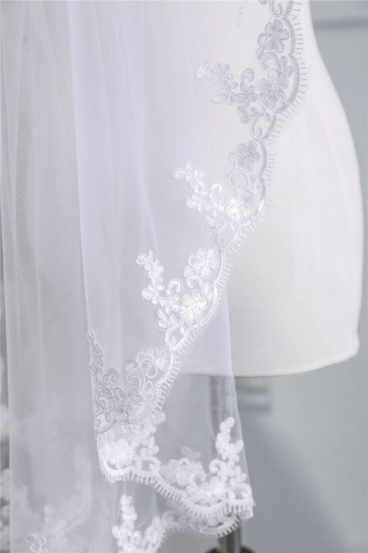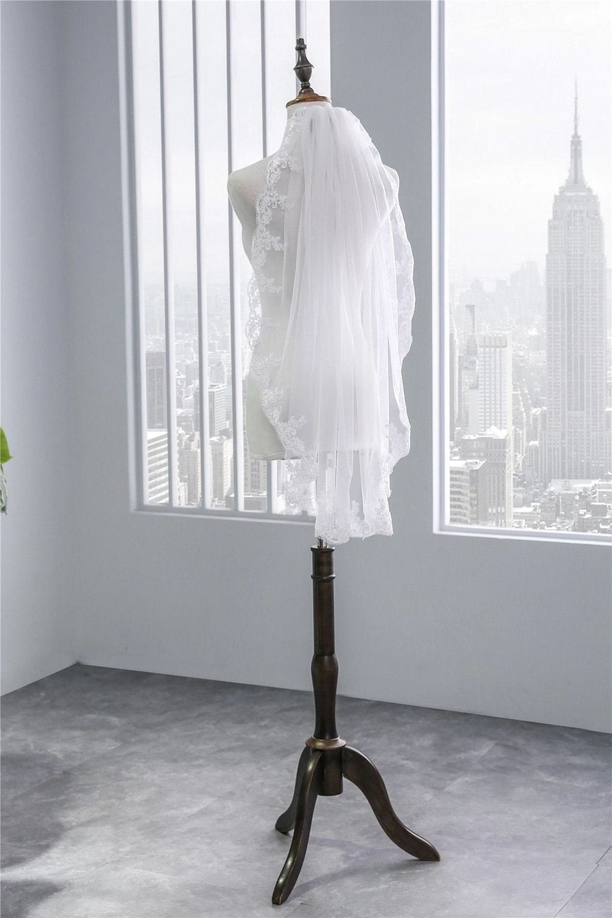 One-Tier Wedding Veil UK Lace Edge Tulle Fingertip Bridal Veils Appliques TS9007