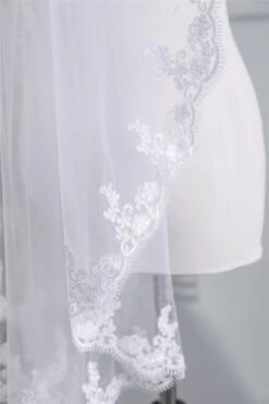 Be the first to review “One-Tier Wedding Veil UK Lace Edge Tulle Fingertip Bridal Veils Appliques TS9007” Cancel reply