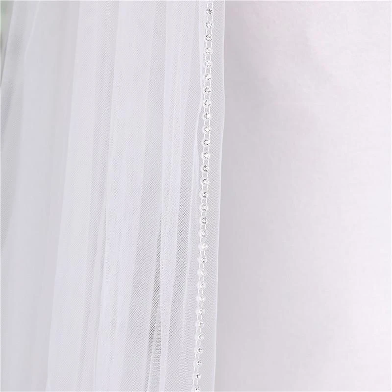 One-Tier Wedding Veil UK Tulle Beading Edge Chapel Veils TS91011