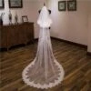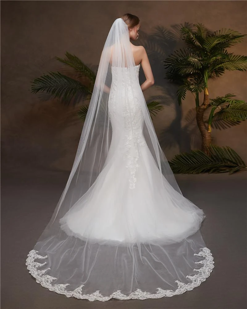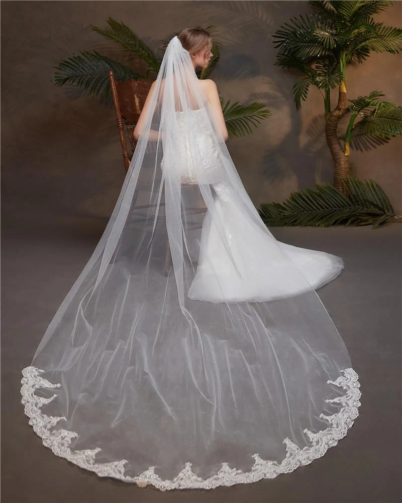 One-Tier Wedding Veil UK Tulle Lace Edge Chapel Veils Appliques TS91012