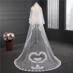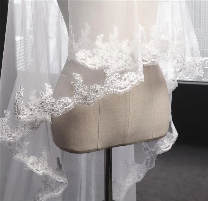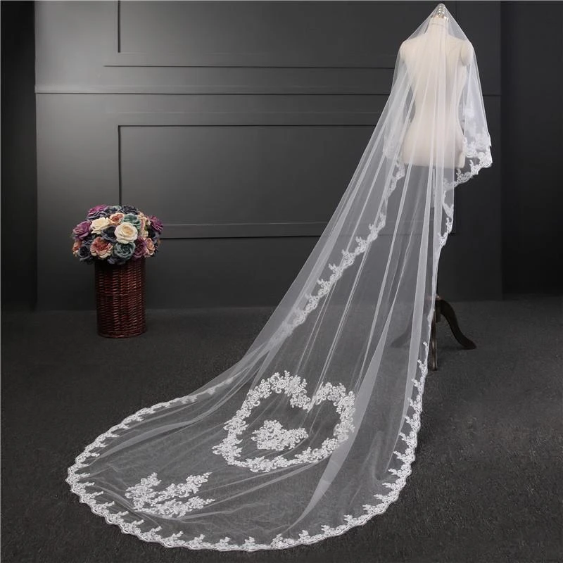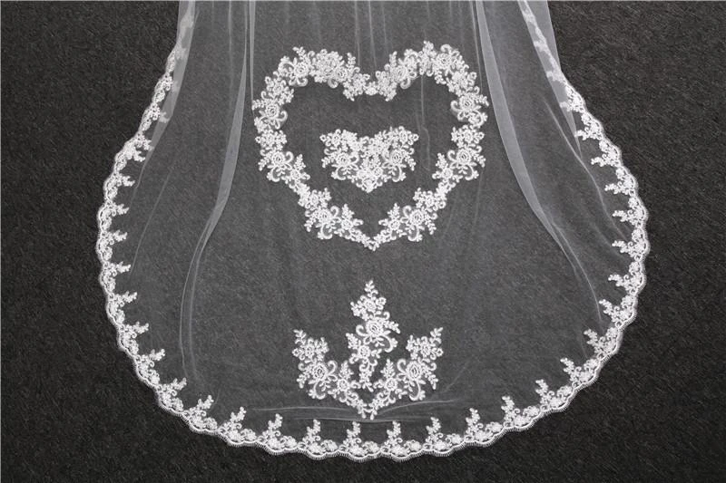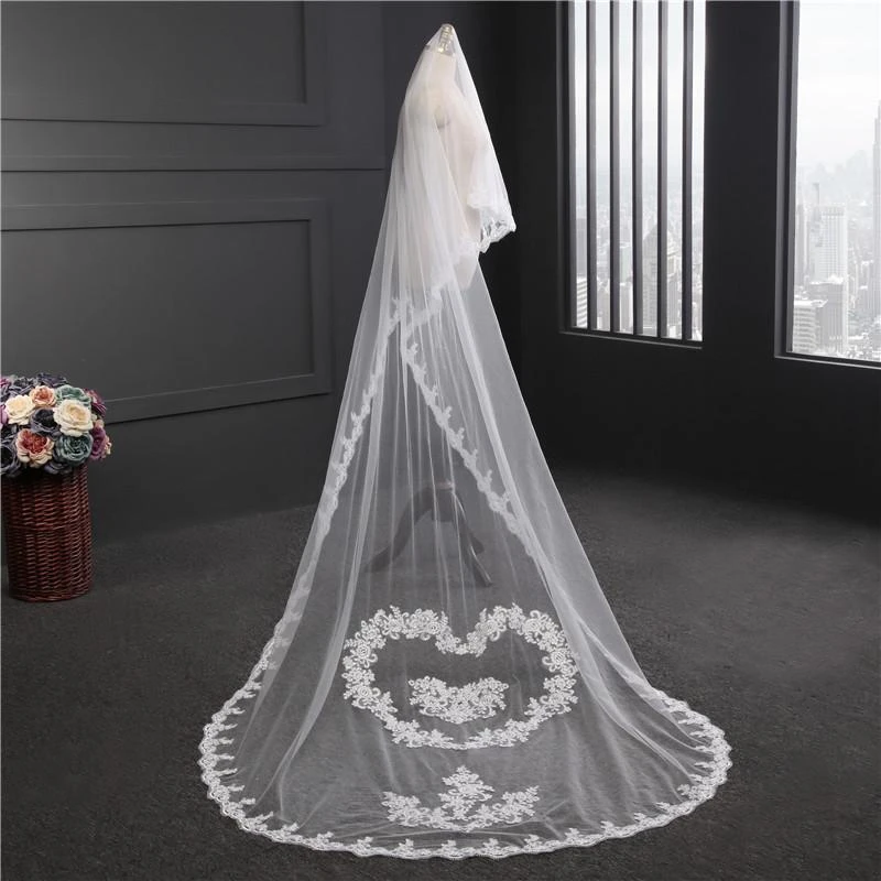 One-Tier Wedding Veil UK Tulle Lace Edge Chapel Veils Appliques TS91020
