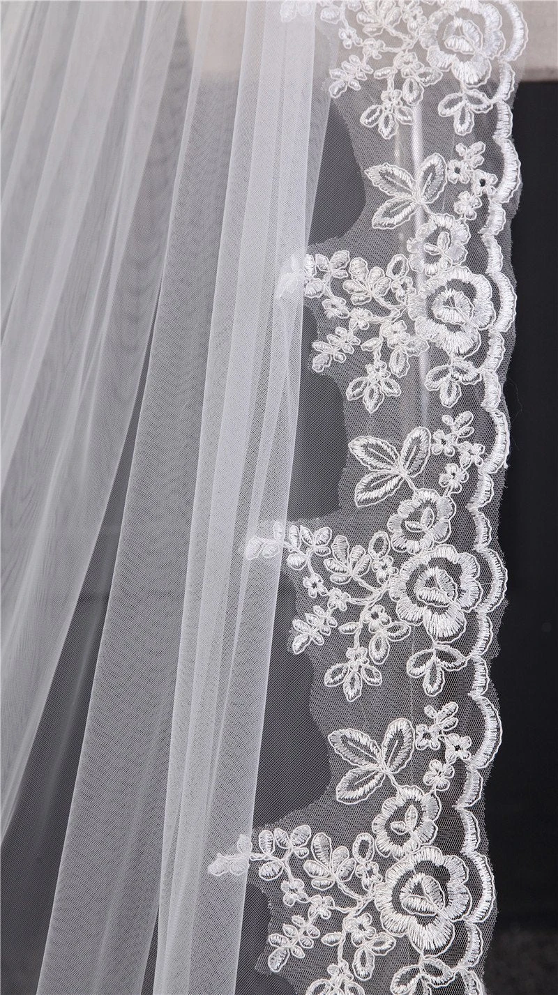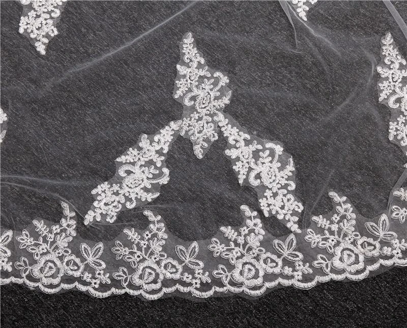 One-Tier Wedding Veil UK Tulle Lace Edge Chapel Veils Appliques TS91036