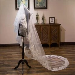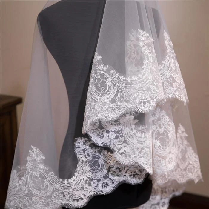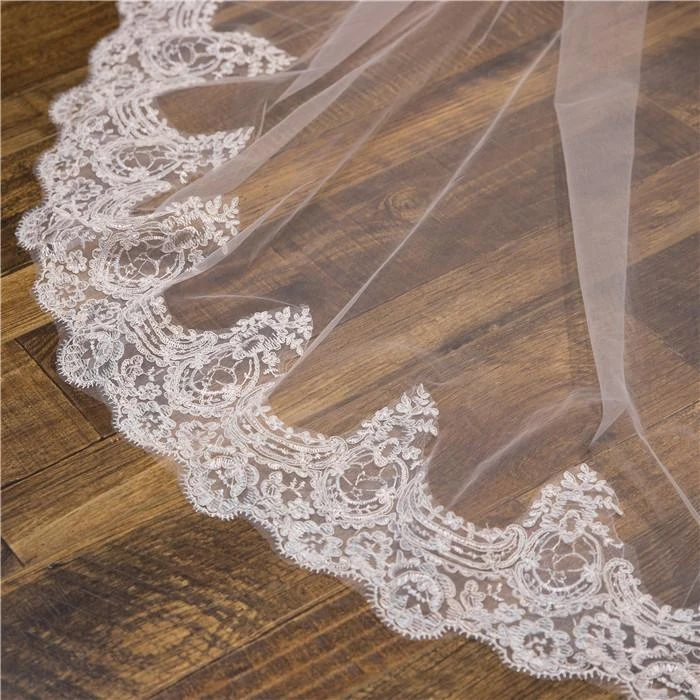 One-Tier Wedding Veil UK Tulle Lace Edge Chapel Veils Appliques TS91043