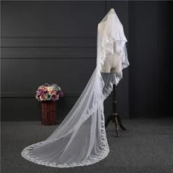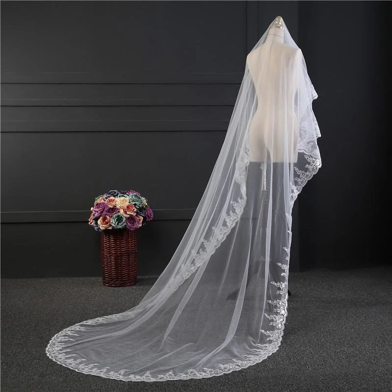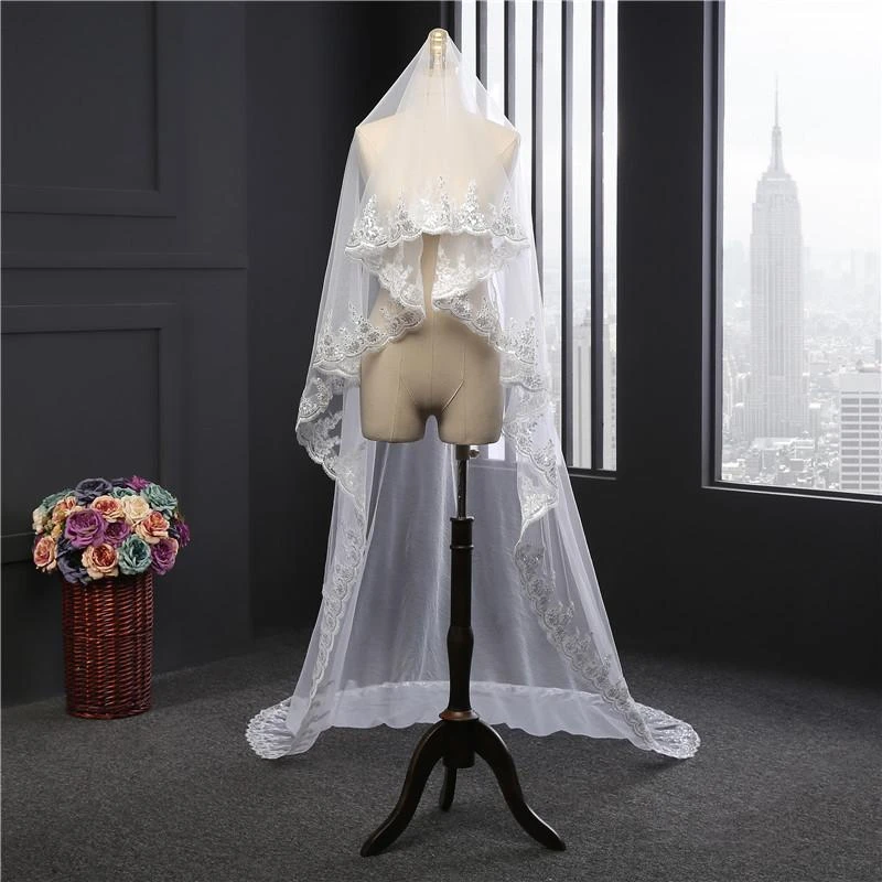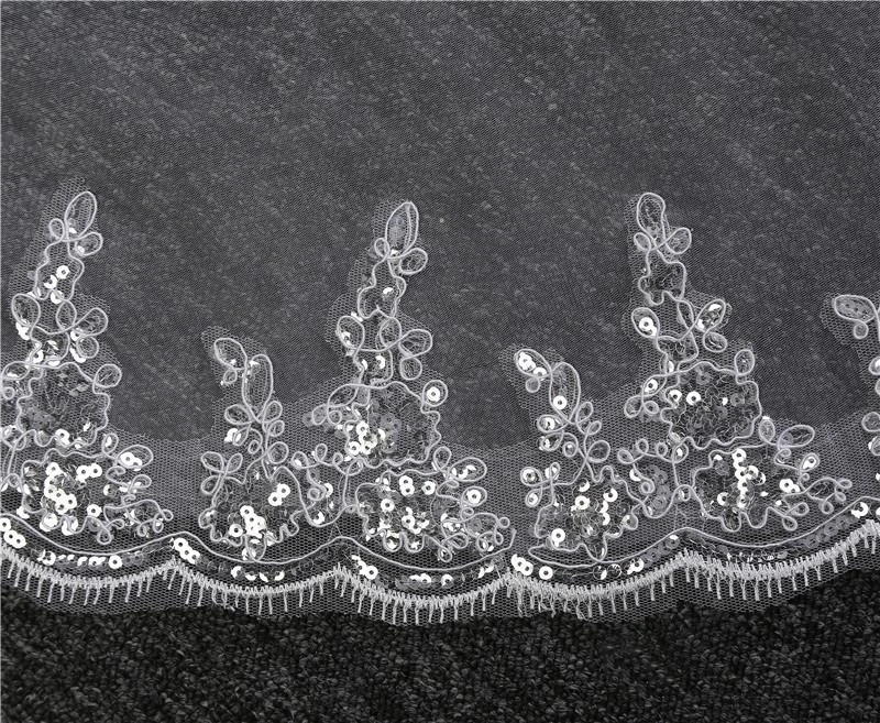 One-Tier Wedding Veil UK Tulle Lace Edge Chapel Veils Sequins Appliques TS91034
