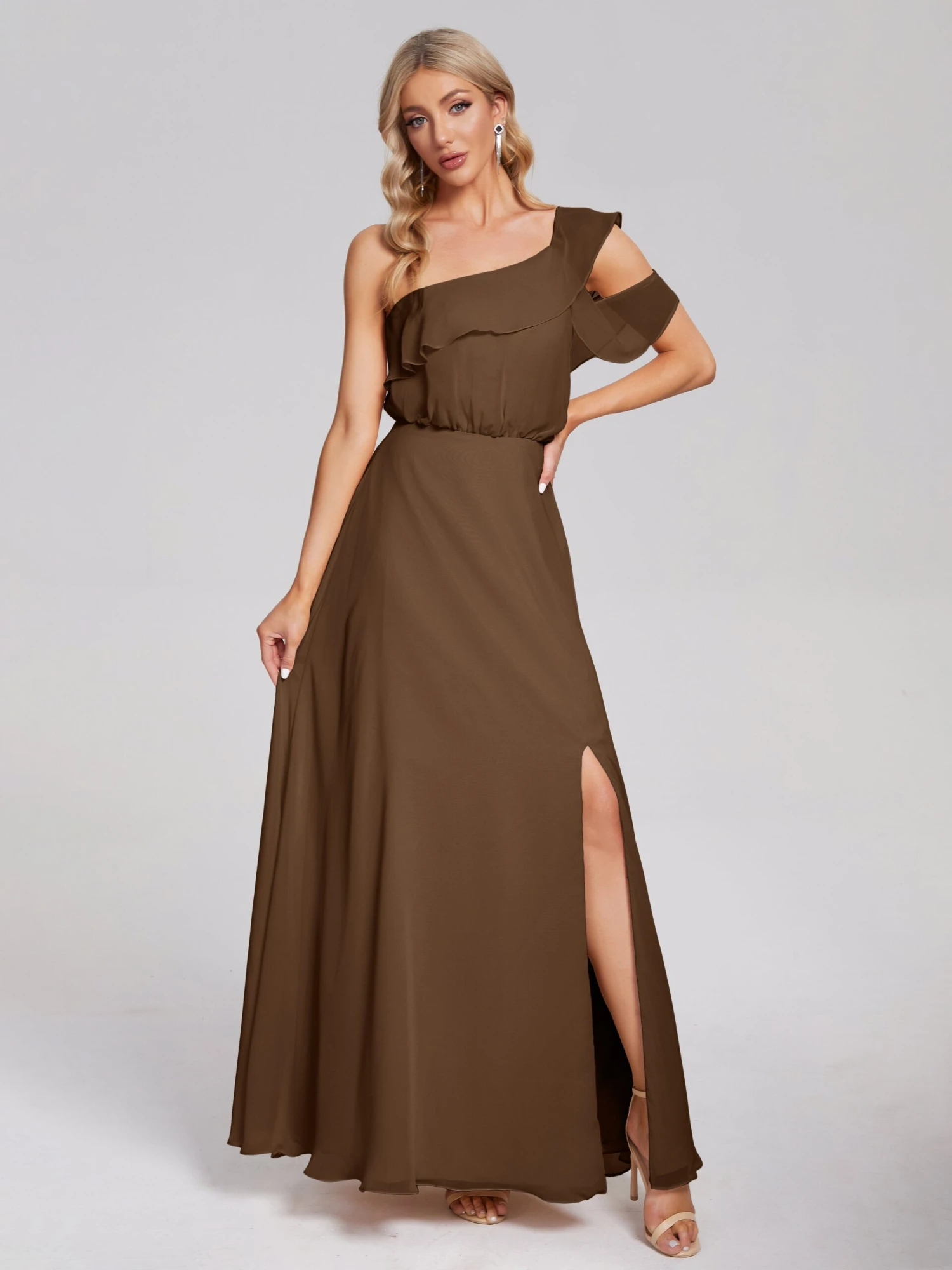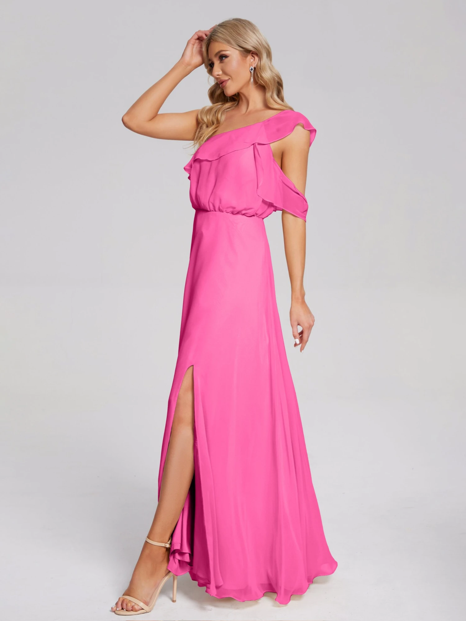Paislee One-Shoulder Split Chiffon Bridesmaid Dresses