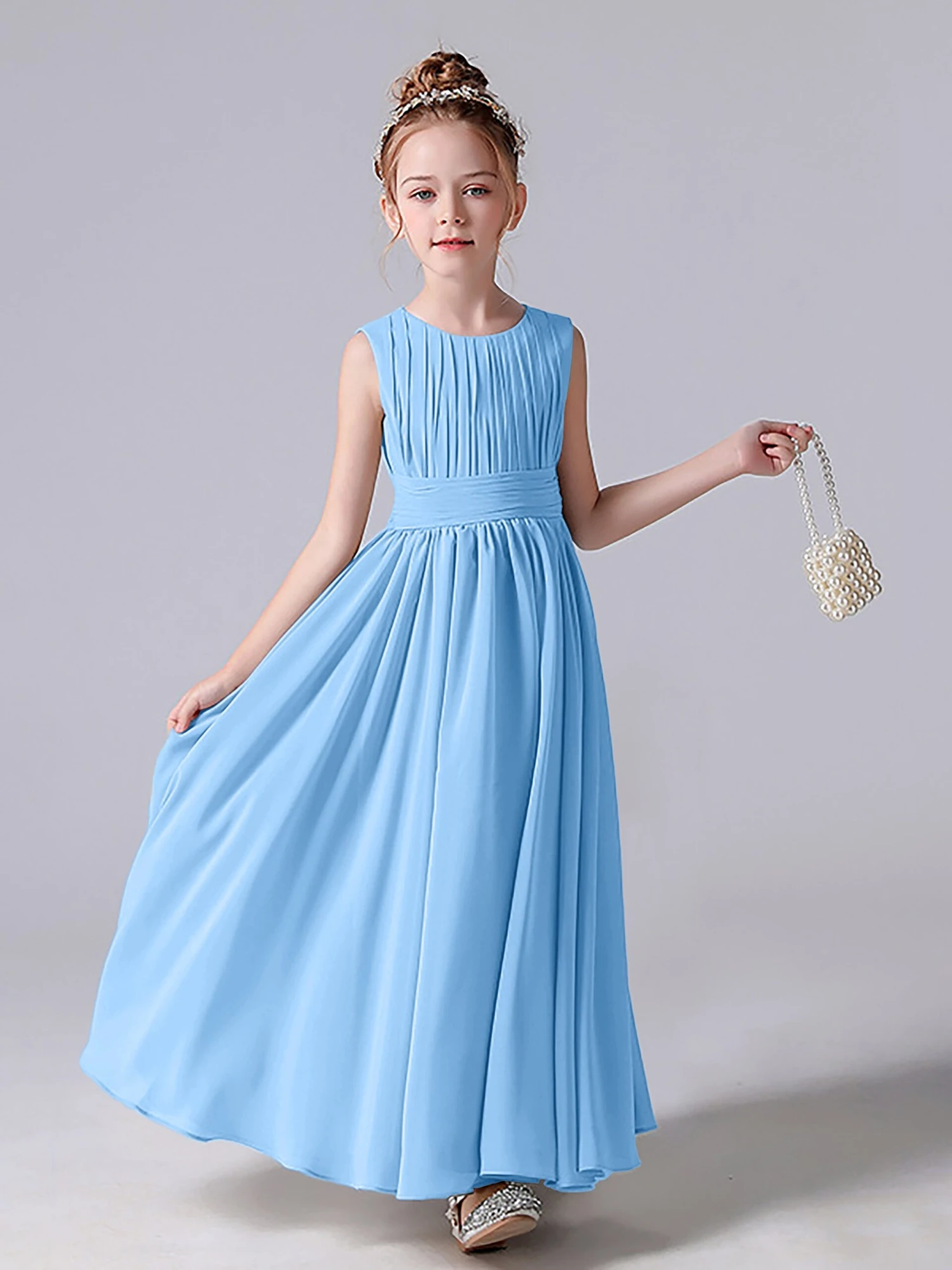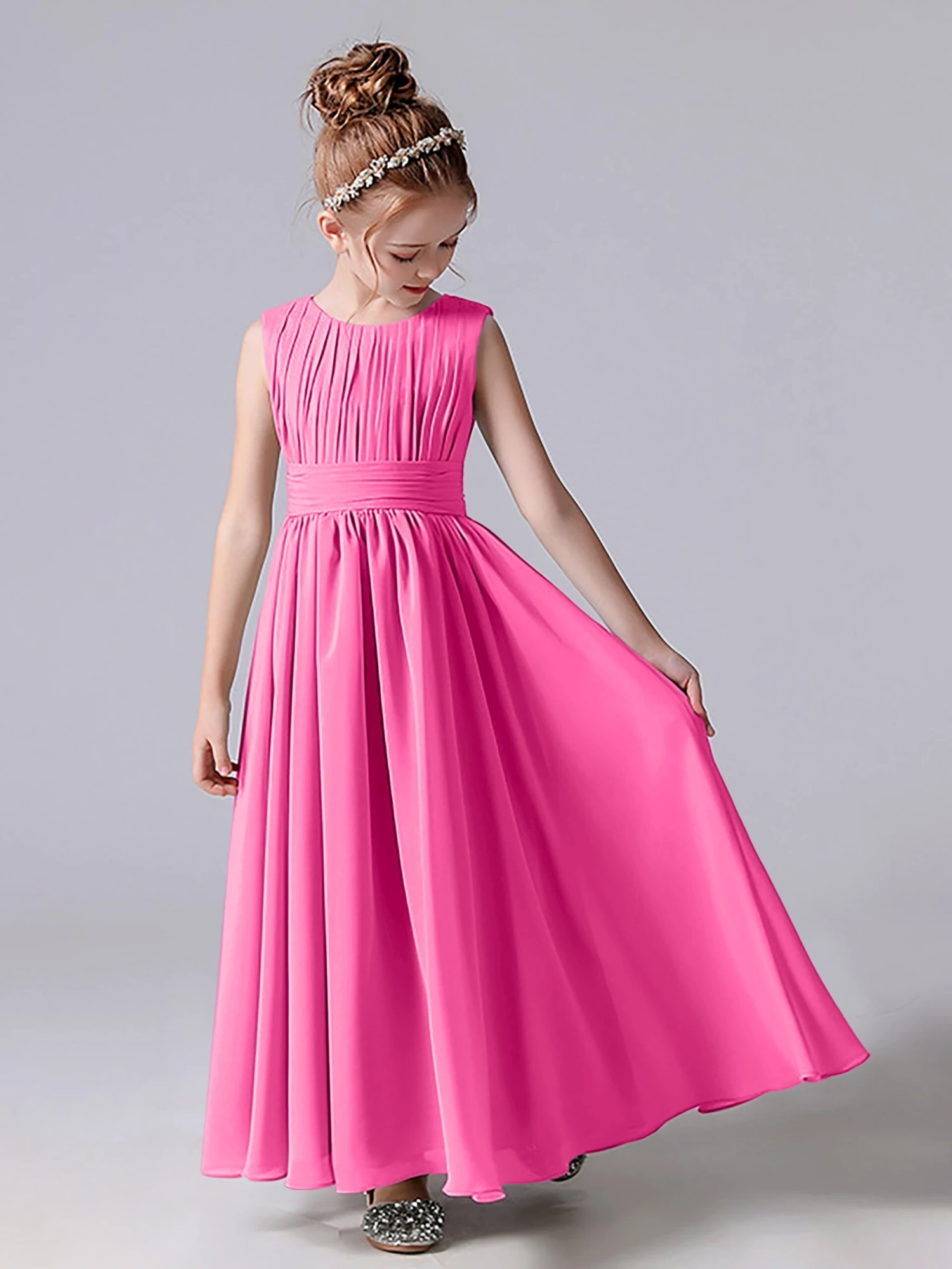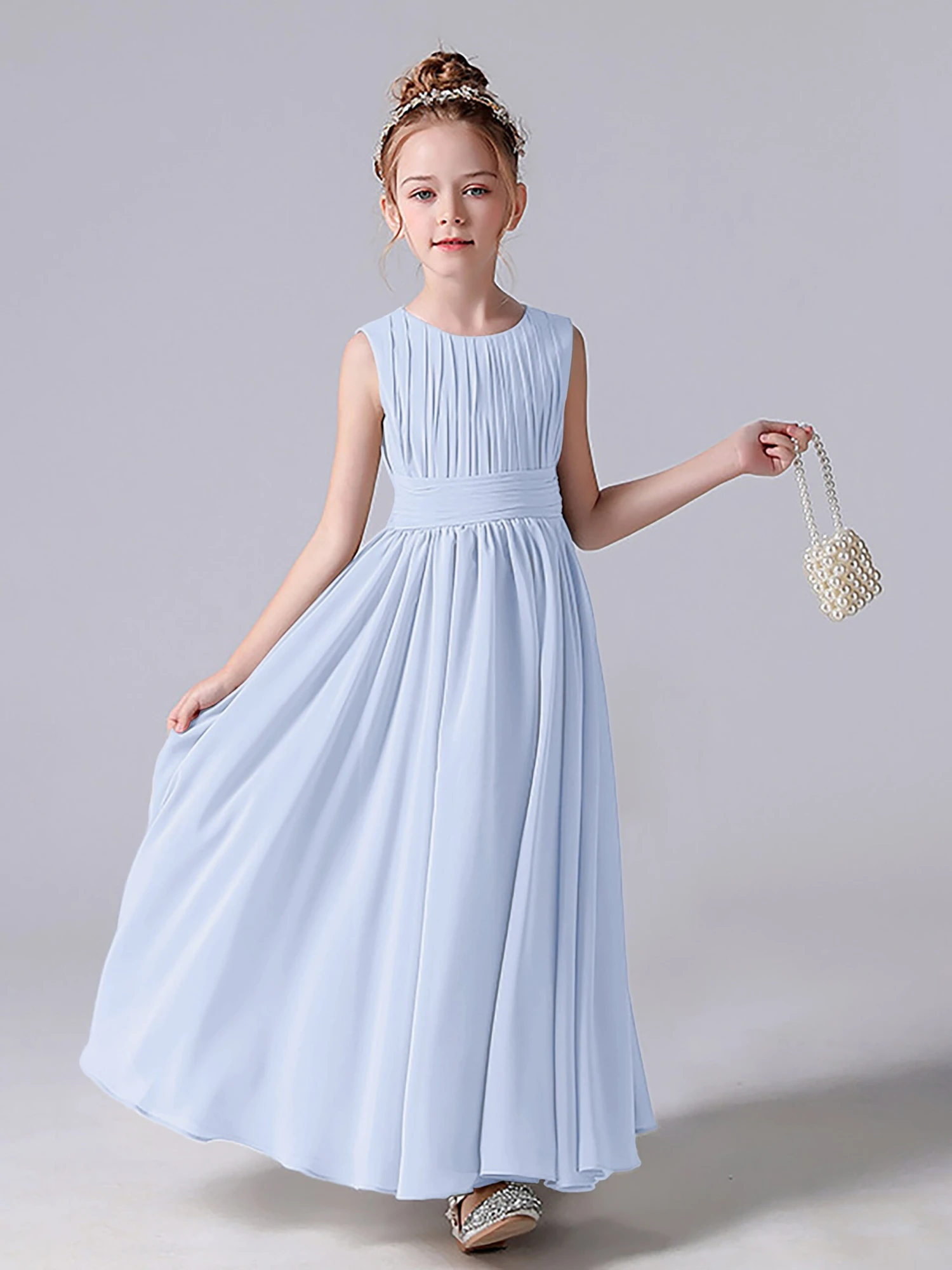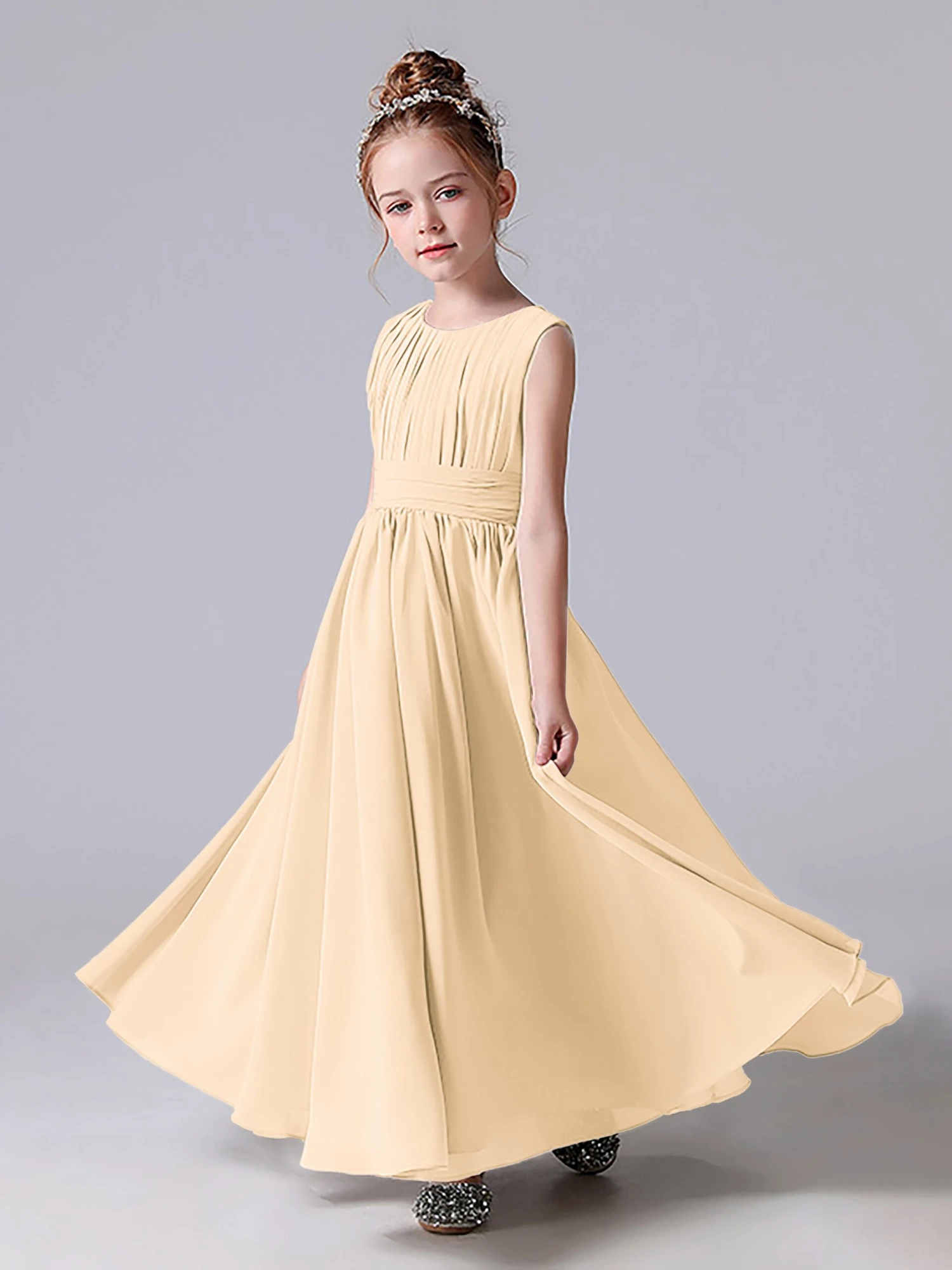 Pleats Scoop Sleeveless Junior Bridesmaid Dress